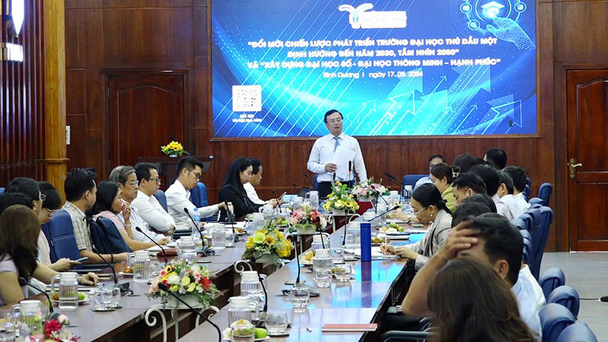 Tọa đàm định hướng chiến lược phát triển Trường Đại học Thủ Dầu Một đến năm 2030, tầm nhìn 2050. Đây là dấu mốc quan trọng để nhà trường cụ thể hóa các chính sách về giáo dục mở và tối ưu hóa nguồn lực tri thức số phục vụ cộng đồng. (Nguồn ảnh: website TDMU)