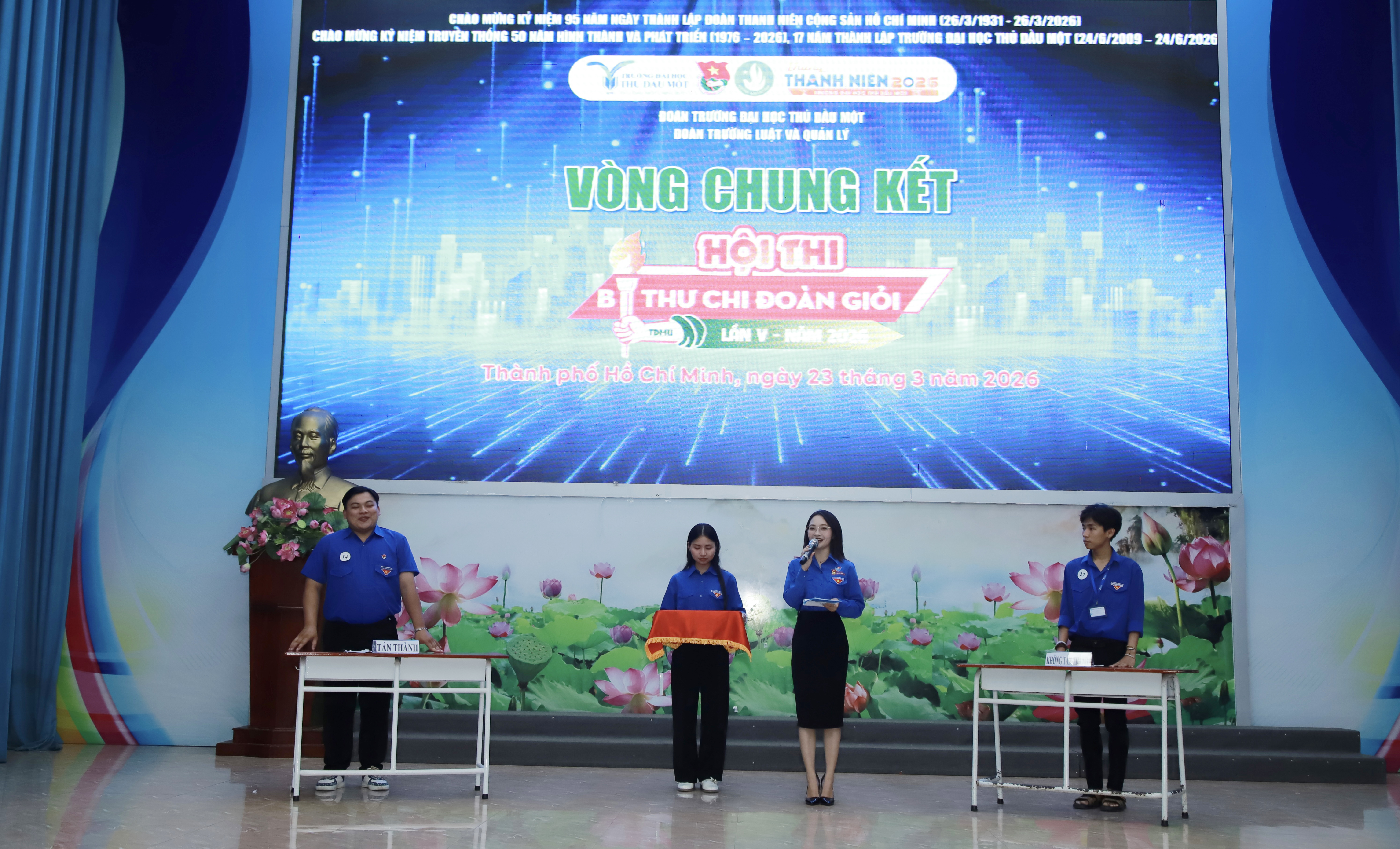Nhằm từng bước chuẩn hóa, nâng cao chất lượng đội ngũ cán bộ Đoàn trong toàn trường, đồng thời góp phần nâng cao hiệu quả hoạt động, đáp ứng yêu cầu phát triển của công tác Đoàn và phong trào thanh niên trong giai đoạn mới, Đoàn Thanh niên Trường Đại học Thủ Dầu Một đã tổ chức Hội thi “Bí thư Chi đoàn giỏi” lần V năm 2026. Hội thi được phát động từ đầu tháng 3/2026, do Trường Luật và Quản lý đăng cai tổ chức, hướng tới chào mừng kỷ niệm 95 năm Ngày thành lập Đoàn TNCS Hồ Chí Minh (26/3/1931 - 26/3/2026), thu hút hơn 40 sinh viên đăng ký tham gia. Qua các vòng tuyển chọn, Ban Tổ chức đã lựa chọn 15 thí sinh bước vào vòng sơ khảo với hai nội dung thi “Kiến thức Bí thư” và “Tài năng Bí thư Chi đoàn”. Kết thúc vòng này, 10 thí sinh xuất sắc nhất đã được lựa chọn vào vòng Chung kết.
