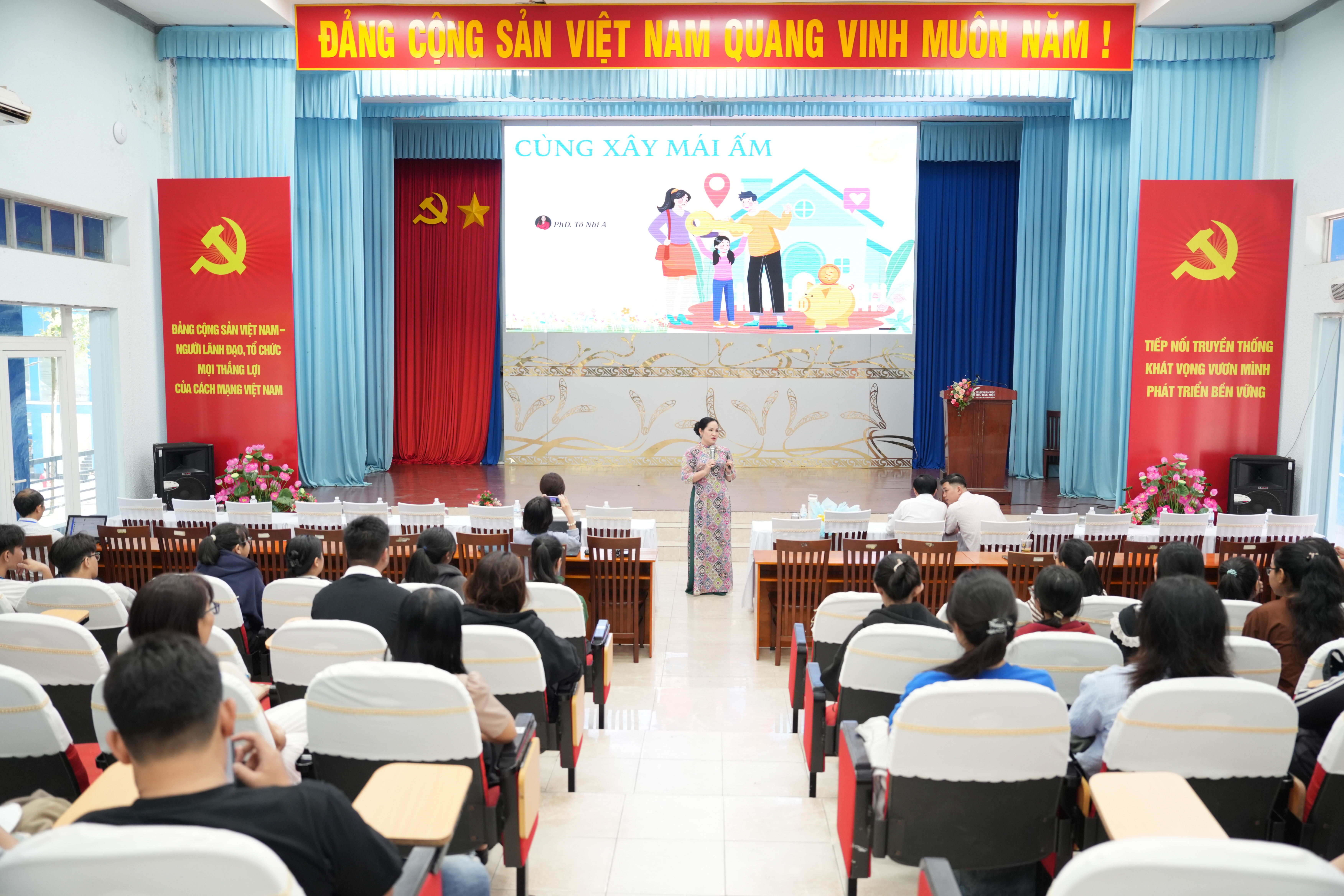 Tại chương trình, TS. Tô Nhi A – Giảng viên Khoa Khoa học cơ bản, Trường Đại học Luật TP.HCM, chuyên gia tâm lý học gia đình đã chia sẻ chuyên đề “Cùng xây mái ấm”. Dựa trên các lý thuyết của tâm lý học phát triển và tâm lý học gia đình, diễn giả phân tích những yếu tố cốt lõi giúp hình thành một môi trường gia đình tích cực, an toàn và giàu sự gắn kết. TS. Tô Nhi A nhấn mạnh rằng thấu hiểu – sẻ chia – đồng hành là ba trụ cột tạo nên hạnh phúc gia đình. Những giá trị này được thể hiện qua sự lắng nghe giữa cha mẹ và con cái, sự tôn trọng của con cháu đối với ông bà, và sự hỗ trợ lẫn nhau trong các sinh hoạt đời sống. Đây cũng là nét đẹp truyền thống của văn hóa gia đình Việt Nam, đặc biệt ở mô hình tam đại đồng đường, tứ đại đồng đường, nơi các thế hệ cùng chung sống, tạo nên nền tảng dưỡng nuôi nhân cách và sự ổn định tinh thần. Trong phần trình bày, diễn giả giải thích rằng kết nối gia đình không chỉ được thể hiện qua việc ăn chung hay sinh hoạt chung, mà còn bao gồm kết nối cảm xúc, khả năng nhận biết nhằm đáp ứng cảm xúc của nhau, và kết nối liên thế hệ thông qua giao tiếp, tôn trọng và chia sẻ giữa các thành viên. Khi những kết nối này được duy trì bền vững, các nguy cơ xung đột, hiểu lầm hay bạo lực gia đình sẽ giảm đáng kể.
