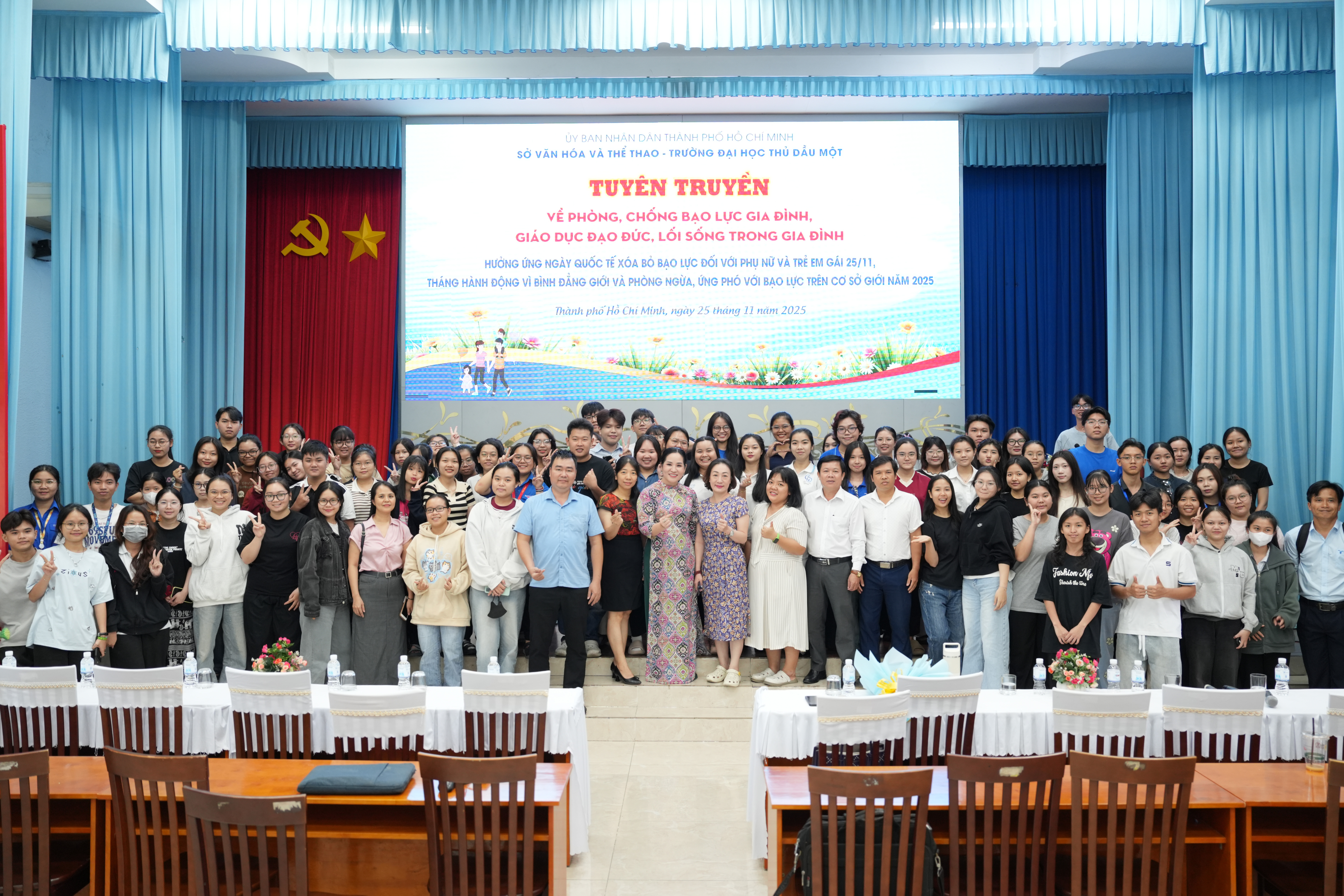 Sở Văn hóa và Thể thao TP. Hồ Chí Minh phối hợp với Trường Đại học Thủ Dầu Một tổ chức chuyên đề tuyên truyền phòng, chống bạo lực gia đình; giáo dục đạo đức, lối sống trong gia đình, hưởng ứng Ngày Quốc tế xóa bỏ bạo lực đối với phụ nữ và trẻ em gái (25/11) và Tháng hành động vì bình đẳng giới năm 2025
