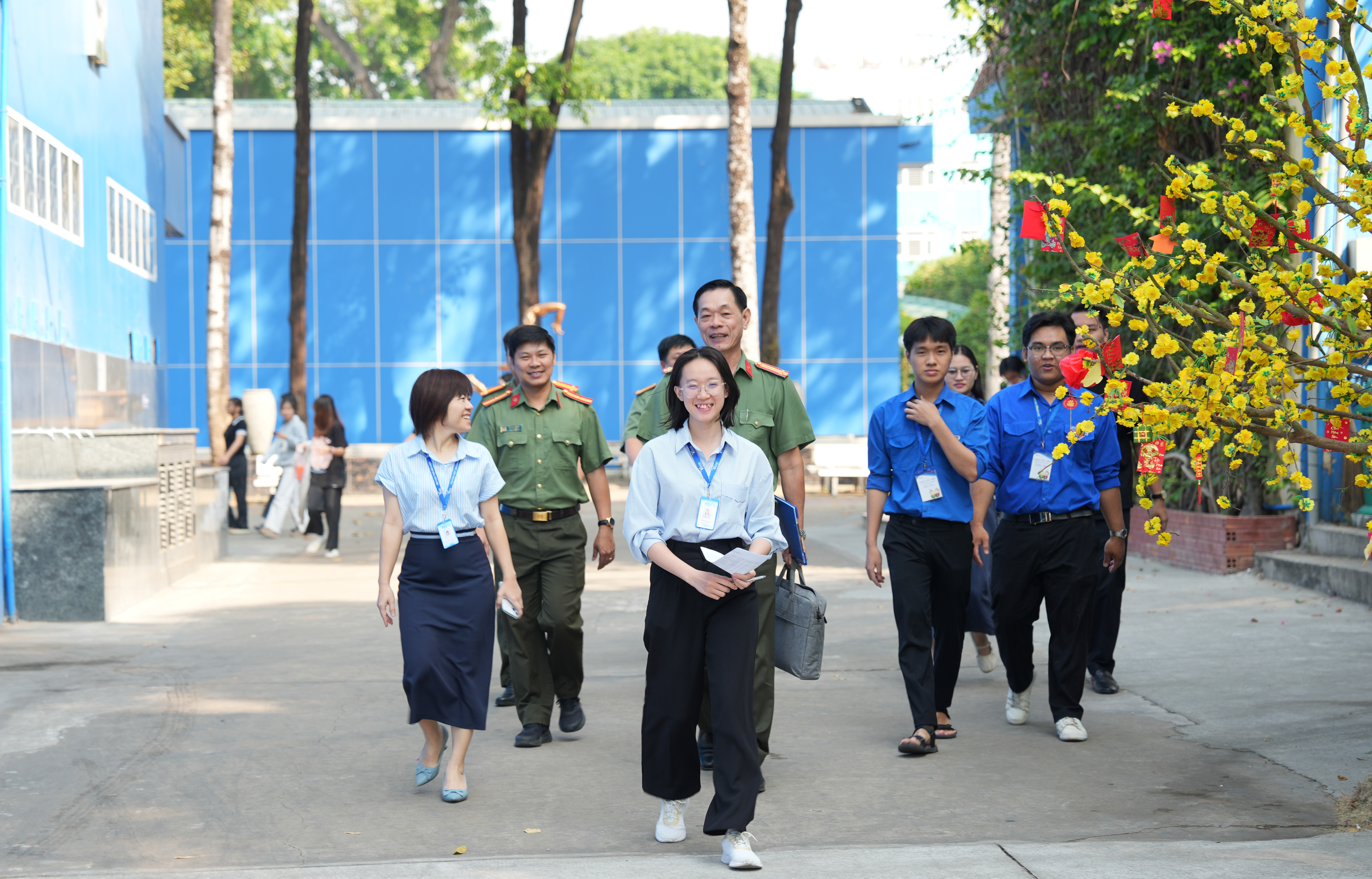 Tổ công tác gồm 05 thành viên, do Thiếu tá Lê Minh Nhật – Phó Đội trưởng Phòng Tham mưu làm Tổ trưởng, cùng các đồng chí: Trung tá Nguyễn Văn Nhạo, Trung tá Phan Thanh Hòa, Trung tá Trần Châu Quang Phong và Thiếu tá Nguyễn Thị Huyền Trang. Tại chương trình, các cán bộ Công an đã trực tiếp giới thiệu, hướng dẫn sinh viên thao tác cài đặt, đăng ký tài khoản và sử dụng các tính năng cơ bản của ứng dụng SOS ngay trên điện thoại thông minh.