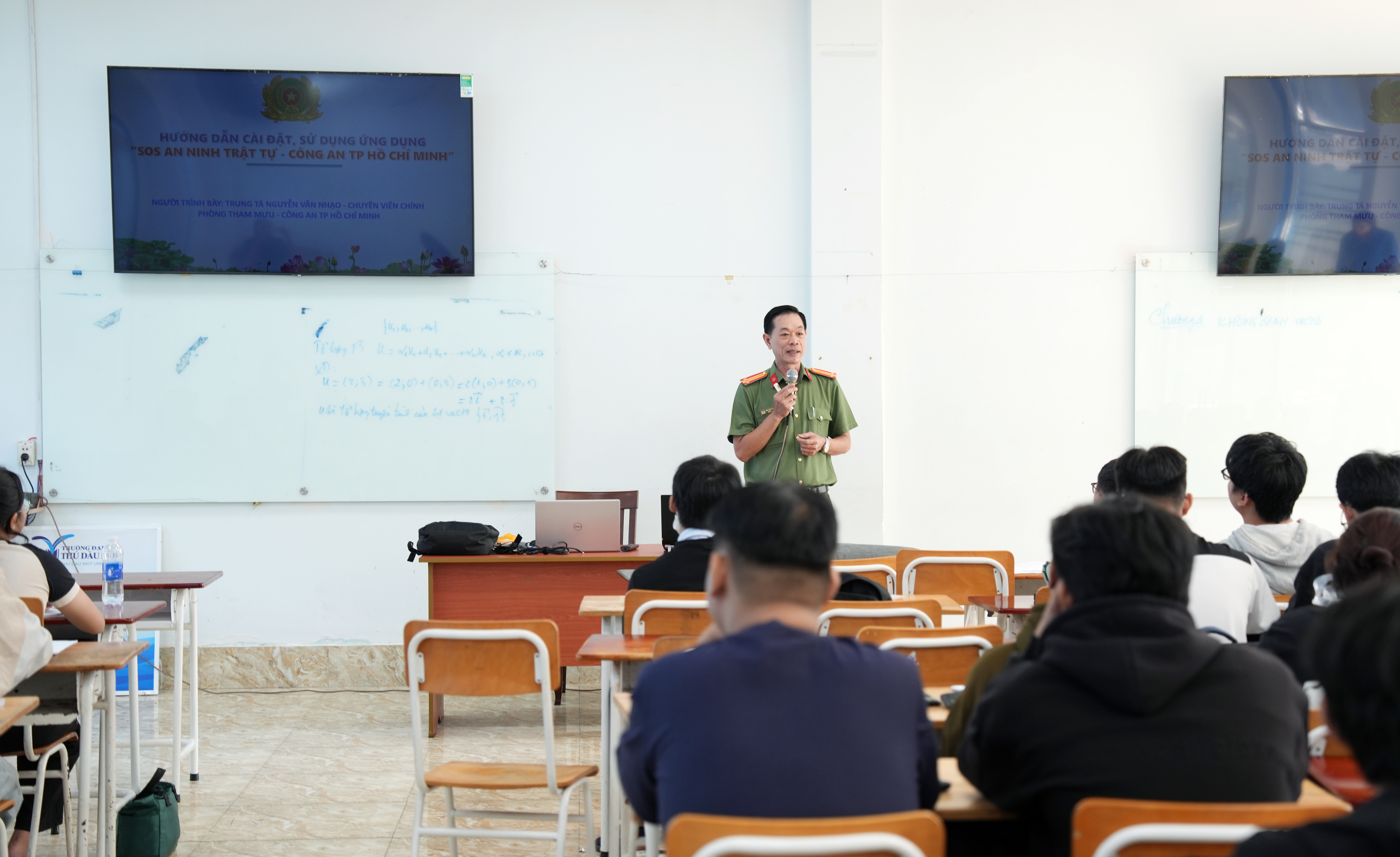 Nhằm giúp sinh viên nâng cao nhận thức, chủ động bảo vệ bản thân và kịp thời xử lý, phản ánh các tình huống liên quan đến an ninh trật tự trong học tập và sinh hoạt, ngày 27/01/2026, Tổ công tác Phòng Tham mưu – Công an Thành phố Hồ Chí Minh đã đến Trường Đại học Thủ Dầu Một tổ chức tuyên truyền, hướng dẫn sinh viên cài đặt và sử dụng ứng dụng cảnh báo khẩn cấp SOS – ANTT CA TP.HCM.