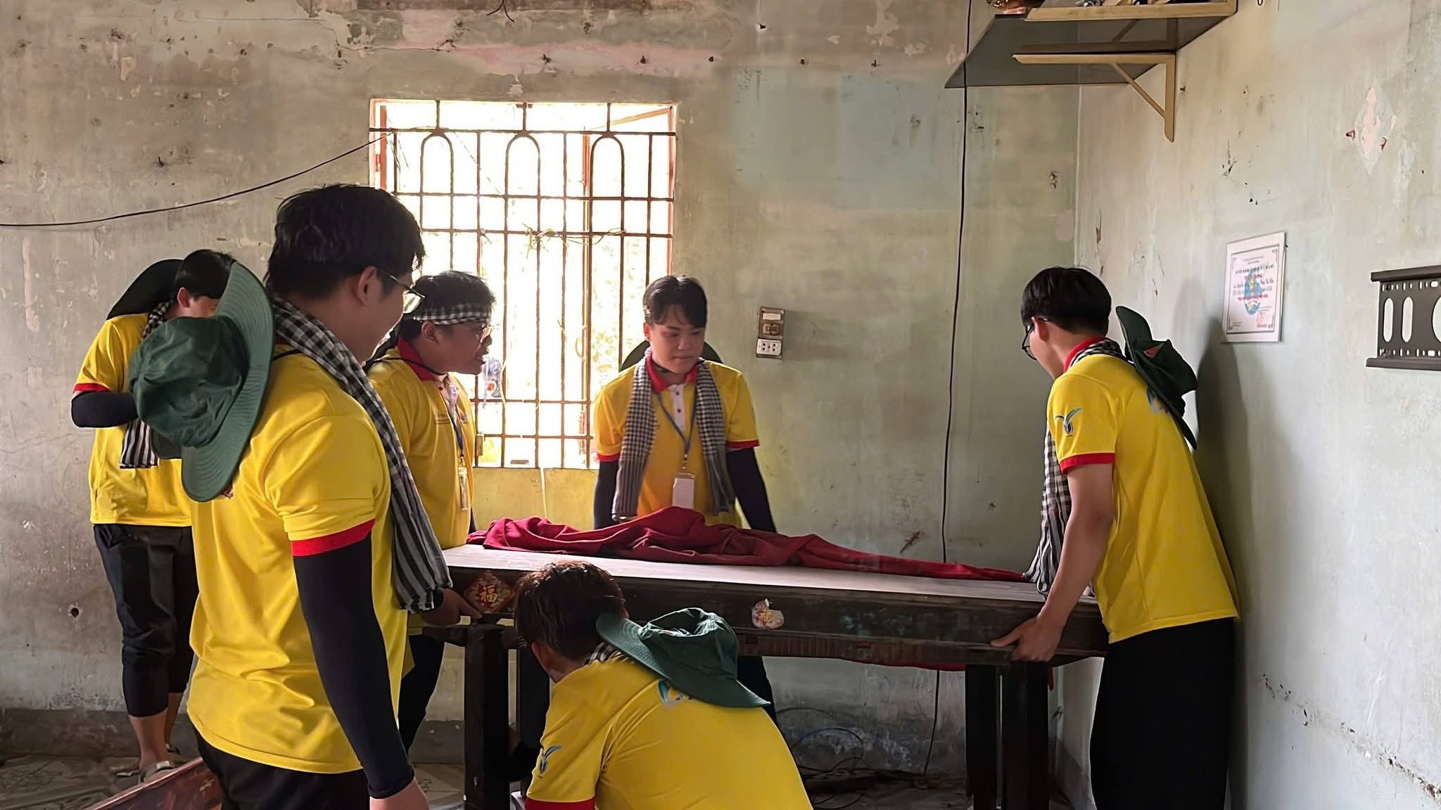 Đoàn viên, sinh viên Trường Đại học Thủ Dầu Một tham gia dọn dẹp, vệ sinh nhà cửa cho gia đình chính sách trong khuôn khổ Chiến dịch Xuân tình nguyện