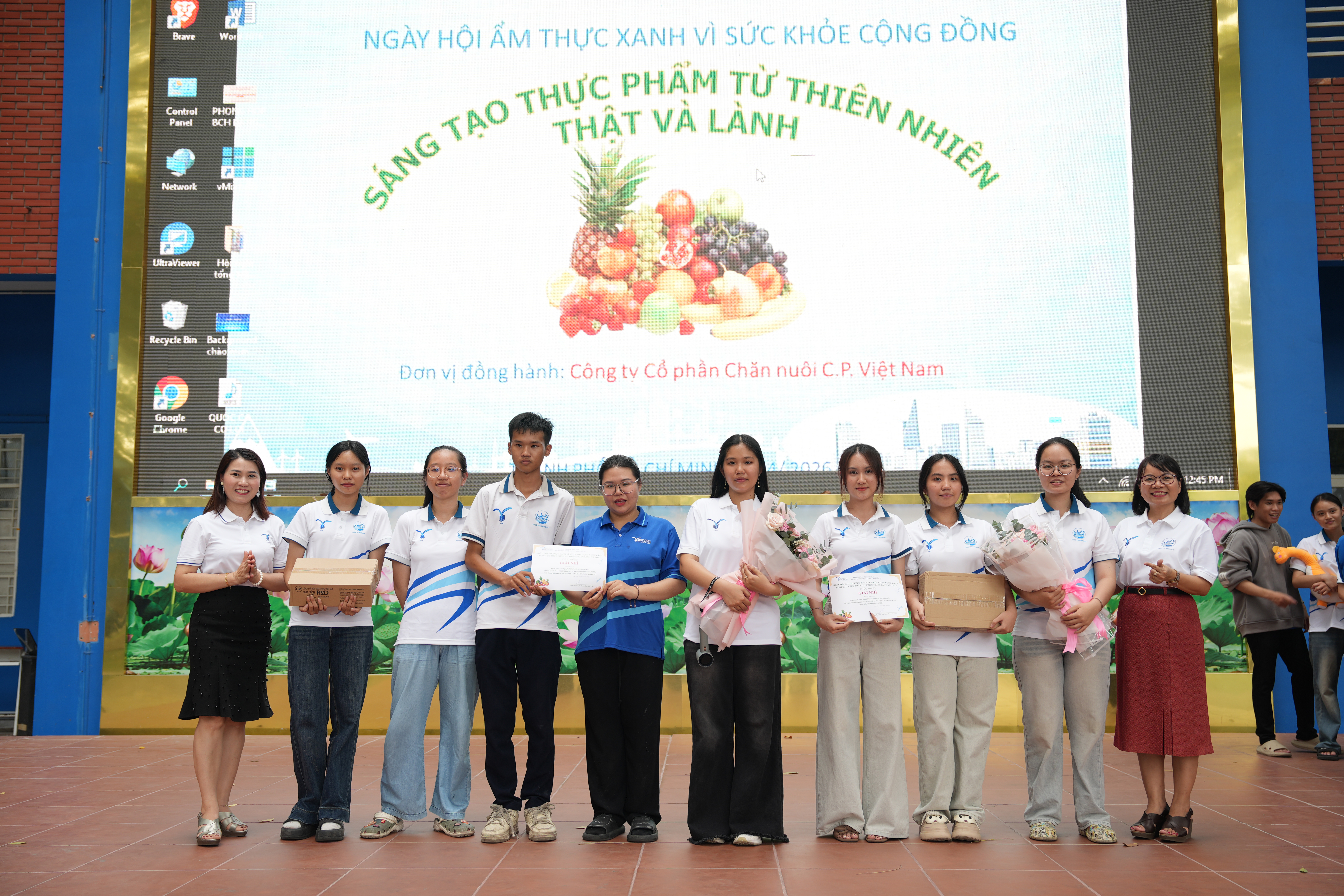 Phát biểu tại Ngày hội, TS. Bùi Thanh Khiết – Phó Hiệu trưởng cho biết, trong bối cảnh chất lượng cuộc sống ngày càng được quan tâm, xu hướng lựa chọn thực phẩm “xanh” và “lành” đang trở thành một tiêu chí quan trọng trong tiêu dùng hiện đại. Người tiêu dùng không chỉ chú trọng đến hương vị mà còn đặt yêu cầu cao về nguồn gốc nguyên liệu, quy trình chế biến, giá trị dinh dưỡng và mức độ an toàn đối với sức khỏe. Việc ưu tiên sử dụng thực phẩm có nguồn gốc tự nhiên, hạn chế phụ gia và can thiệp công nghiệp đang dần định hình lại thói quen ăn uống của cộng đồng. Từ thực tiễn đó, TS. Bùi Thanh Khiết nhấn mạnh, đối với sinh viên theo học lĩnh vực công nghệ thực phẩm, đây không chỉ là xu hướng mà còn là yêu cầu nghề nghiệp. Người học cần chủ động cập nhật kiến thức, phát triển tư duy sáng tạo và khả năng nghiên cứu, hướng đến việc tạo ra các sản phẩm vừa đảm bảo giá trị dinh dưỡng, vừa đáp ứng tiêu chí an toàn và thân thiện với môi trường. TS. Bùi Thanh Khiết cũng kỳ vọng thông qua các hoạt động như Ngày hội, sinh viên có thêm cơ hội trải nghiệm, kết nối giữa lý thuyết và thực hành, từ đó hình thành năng lực chuyên môn gắn với nhu cầu thực tiễn của xã hội. Nhân dịp này, lãnh đạo nhà trường trân trọng ghi nhận và cảm ơn Công ty Cổ phần Chăn nuôi C.P Việt Nam đã đồng hành, tài trợ cho chương trình, góp phần tạo điều kiện để sinh viên có môi trường học tập, sáng tạo và phát triển ý tưởng trong lĩnh vực ẩm thực xanh.