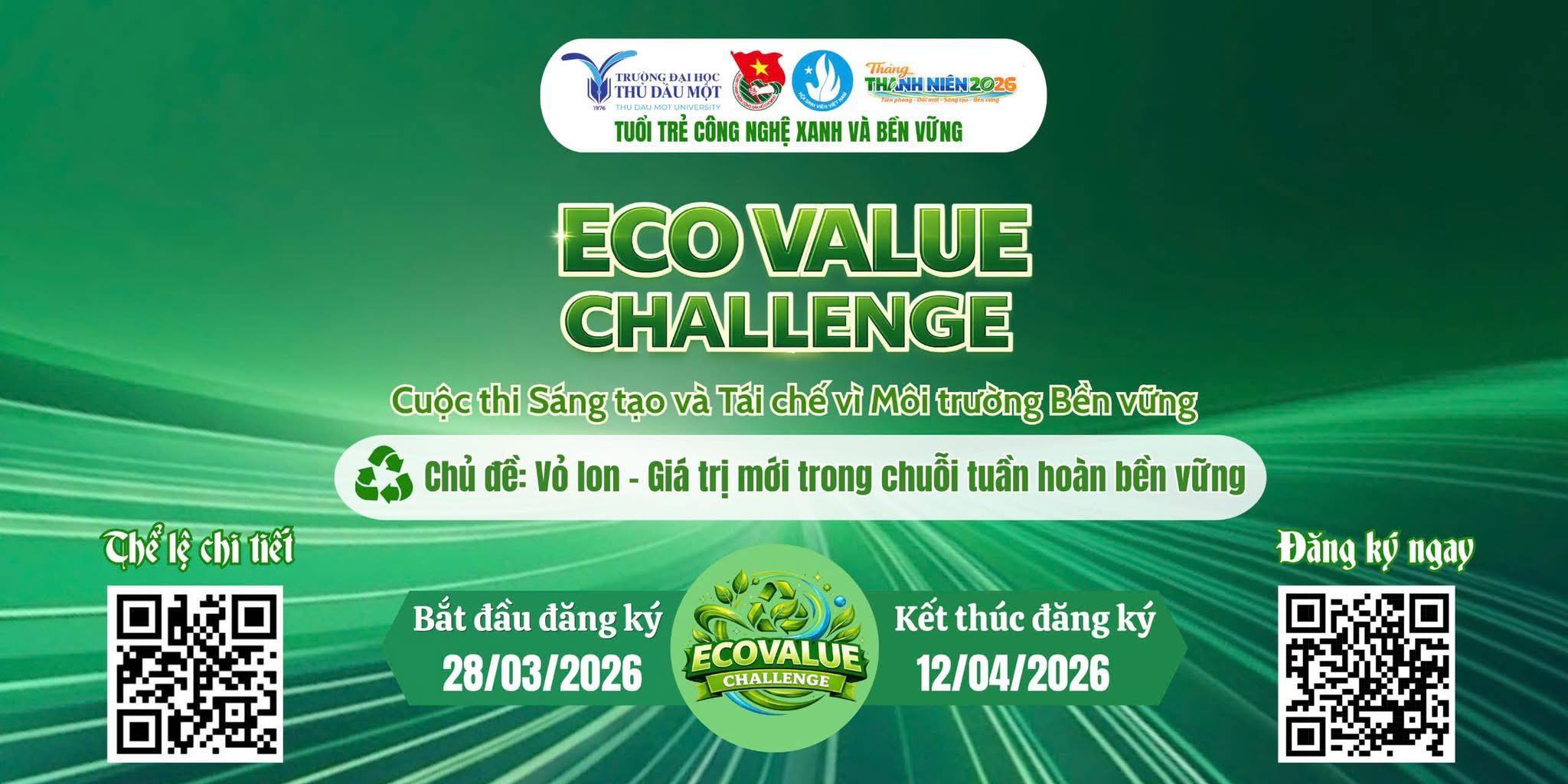 Nhằm thúc đẩy tinh thần sáng tạo, nâng cao nhận thức và hành động vì môi trường trong sinh viên, Đoàn Thanh niên Trường Đại học Thủ Dầu Một đã ban hành kế hoạch tổ chức cuộc thi “Sáng tạo và Tái chế vì Môi trường Bền vững – EcoValue Challenge 2026” với chủ đề “Vỏ lon – Giá trị mới trong chuỗi tuần hoàn bền vững”.