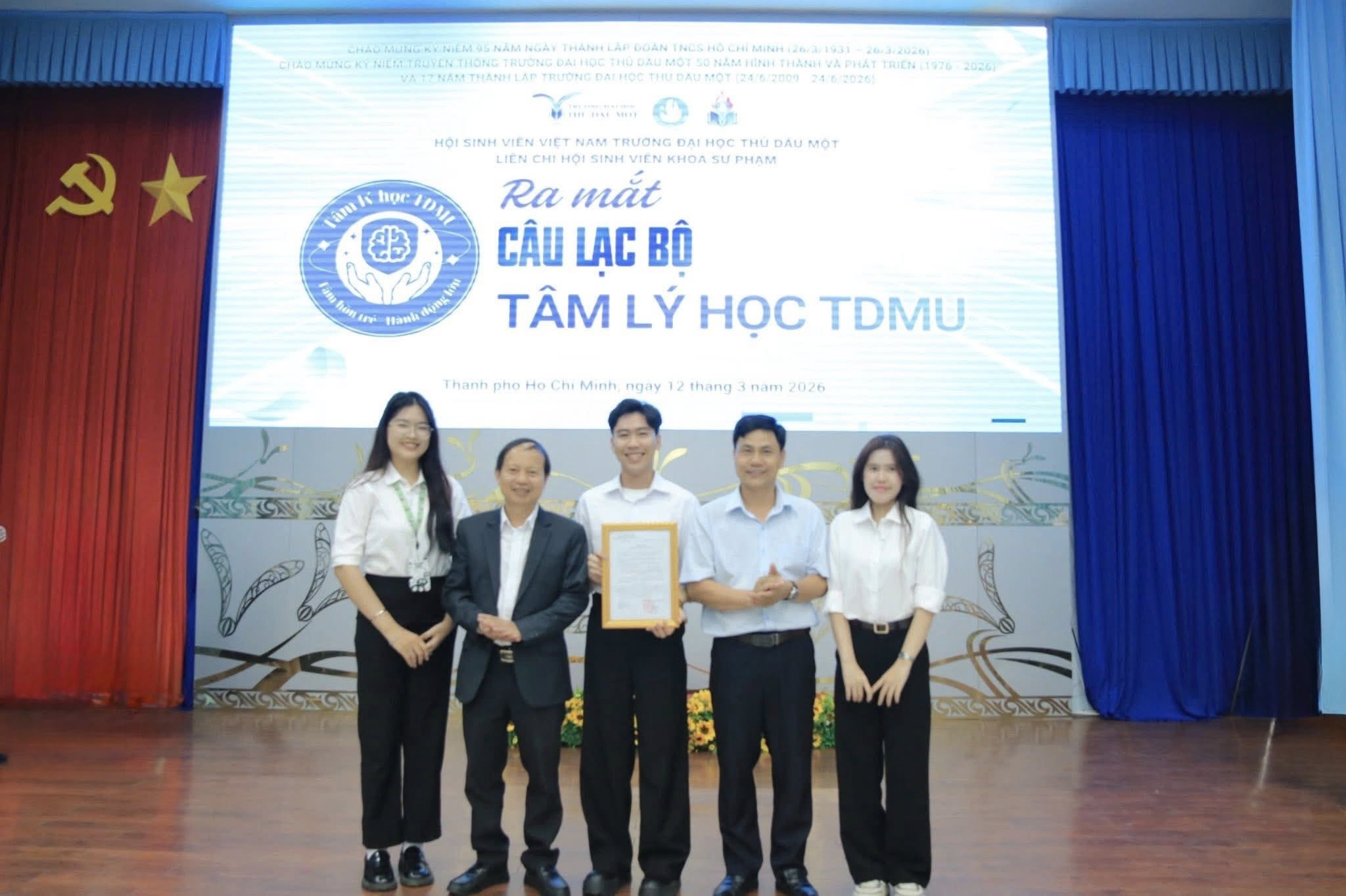 Ngày 12/3/2026, Khoa Sư phạm đã tổ chức chương trình ra mắt Câu lạc bộ Tâm lý học TDMU, chính thức đưa câu lạc bộ đi vào hoạt động tại Trường Đại học Thủ Dầu Một. Sự kiện đánh dấu thêm một môi trường sinh hoạt học thuật – kỹ năng dành cho sinh viên quan tâm đến lĩnh vực tâm lý học và sức khỏe tinh thần.
