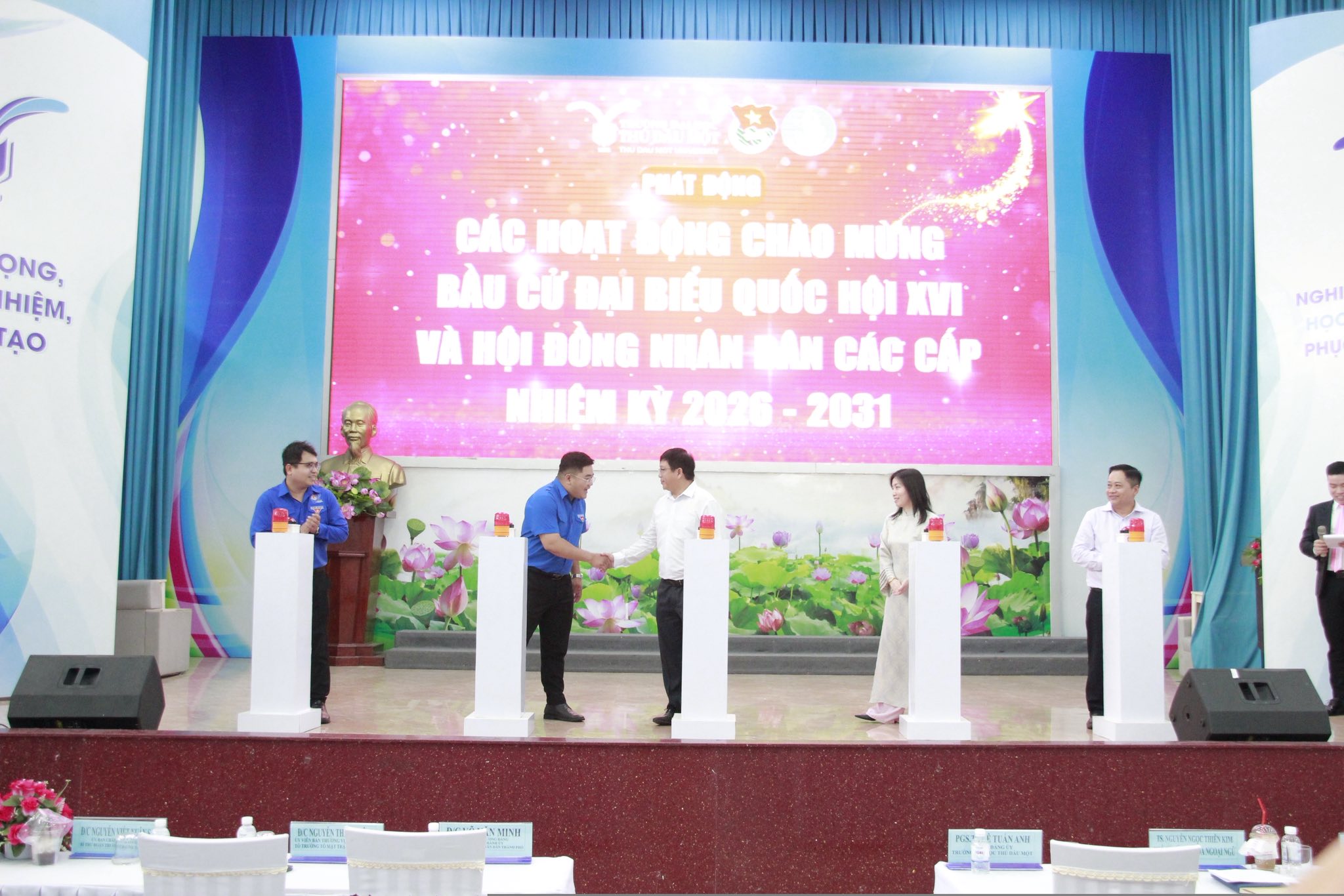 Trong khuôn khổ chương trình, nghi thức phát động các hoạt động chào mừng bầu cử Đại biểu Quốc hội khóa XVI và Đại biểu Hội đồng nhân dân các cấp nhiệm kỳ 2026 – 2031 đã được triển khai trong toàn thể đoàn viên, sinh viên nhà trường. Đây là hoạt động nhằm lan tỏa tinh thần trách nhiệm công dân, nâng cao nhận thức chính trị và khơi dậy sự quan tâm của tuổi trẻ Trường Đại học Thủ Dầu Một đối với sự kiện chính trị quan trọng của đất nước.