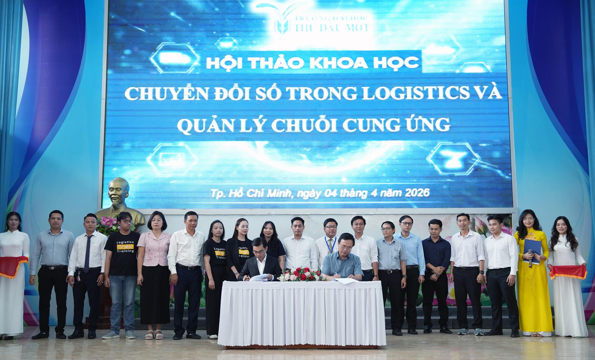 Nằm trong khuôn khổ Hội thảo khoa học “Chuyển đổi số trong Logistics và Quản lý chuỗi cung ứng”, ngày 04/4/2026, Trường Đại học Thủ Dầu Một đã tổ chức lễ ký kết bản ghi nhớ hợp tác (MOU) với Công ty Cổ phần Onex Training, mở ra nhiều cơ hội hợp tác trong đào tạo, nghiên cứu và chuyển giao công nghệ, góp phần phát triển nguồn nhân lực chất lượng cao, nâng cao năng lực nghiên cứu và thúc đẩy ứng dụng công nghệ trong lĩnh vực logistics và quản lý chuỗi cung ứng.