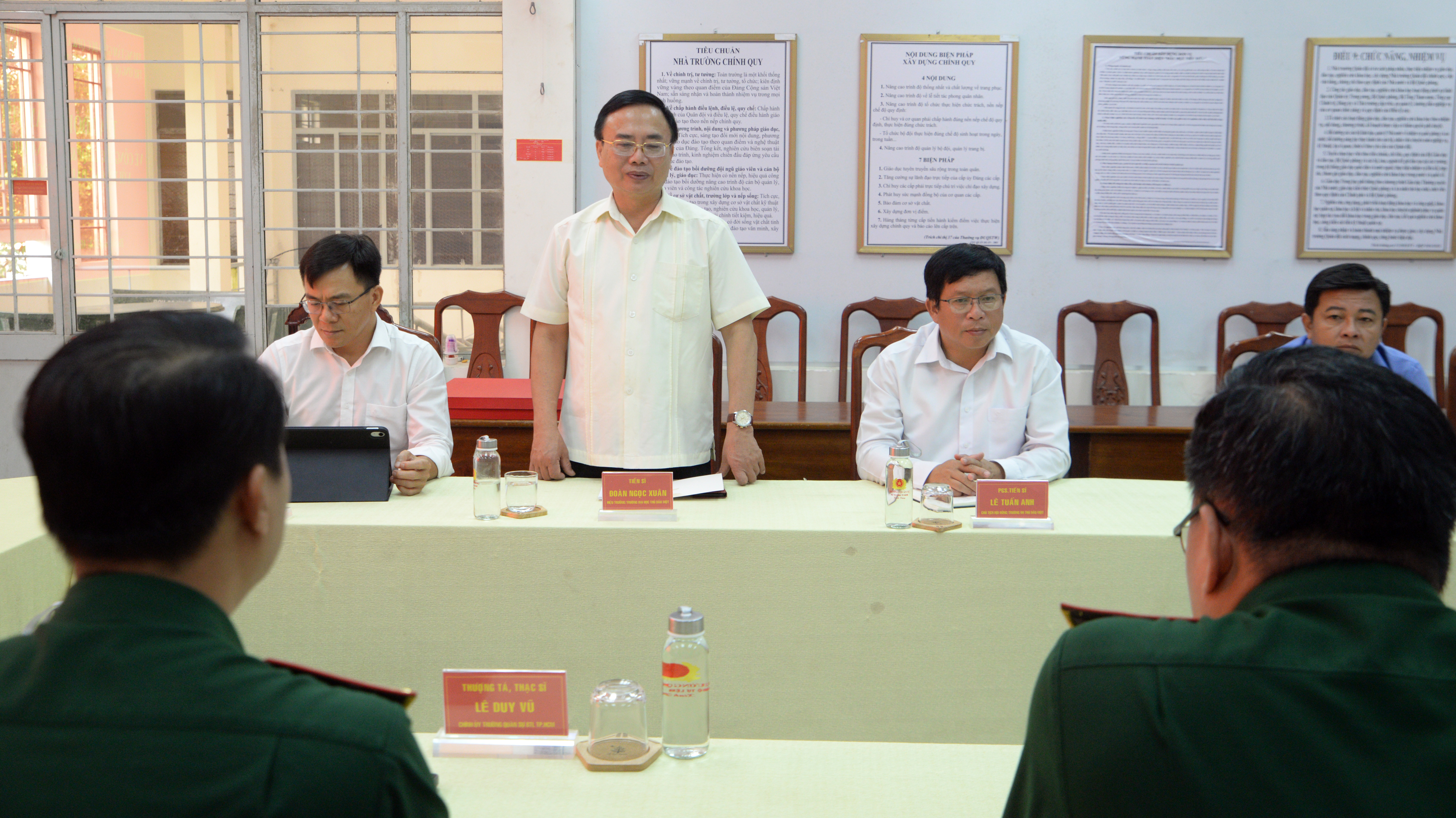 Phát biểu tại buổi làm việc, Thượng tá Liêu Quốc Toản – Hiệu trưởng, Giám đốc Trung tâm bày tỏ niềm vui mừng được đón tiếp đoàn công tác của Trường Đại học Thủ Dầu Một. Thượng tá cho biết, sau khi Bình Dương và Bà Rịa – Vũng Tàu chính thức sáp nhập vào TP. Hồ Chí Minh, công tác phối hợp trong lĩnh vực giáo dục quốc phòng – an ninh giữa các cơ sở đào tạo trên địa bàn với Trung tâm càng trở nên cần thiết và mang ý nghĩa chiến lược trong giai đoạn mới. Đây không chỉ là yêu cầu về mặt quản lý hành chính, mà còn là nhiệm vụ góp phần xây dựng thế hệ sinh viên có bản lĩnh chính trị vững vàng, kỷ luật nghiêm, hiểu biết sâu sắc về trách nhiệm bảo vệ Tổ quốc. Thượng tá Liêu Quốc Toản khẳng định, Trung tâm luôn sẵn sàng phối hợp chặt chẽ với Trường Đại học Thủ Dầu Một trong việc xây dựng kế hoạch đào tạo, phân luồng sinh viên học tập phù hợp theo từng giai đoạn, bảo đảm tiến độ và chất lượng giảng dạy. Đồng thời, hai đơn vị có thể phối hợp triển khai giảng dạy song song, huy động đội ngũ giảng viên của cả hai trường cùng tham gia, nhằm chia sẻ kinh nghiệm, phát huy thế mạnh chuyên môn và nâng cao hiệu quả tổ chức các khóa học giáo dục quốc phòng – an ninh trong năm học 2025 – 2026.
