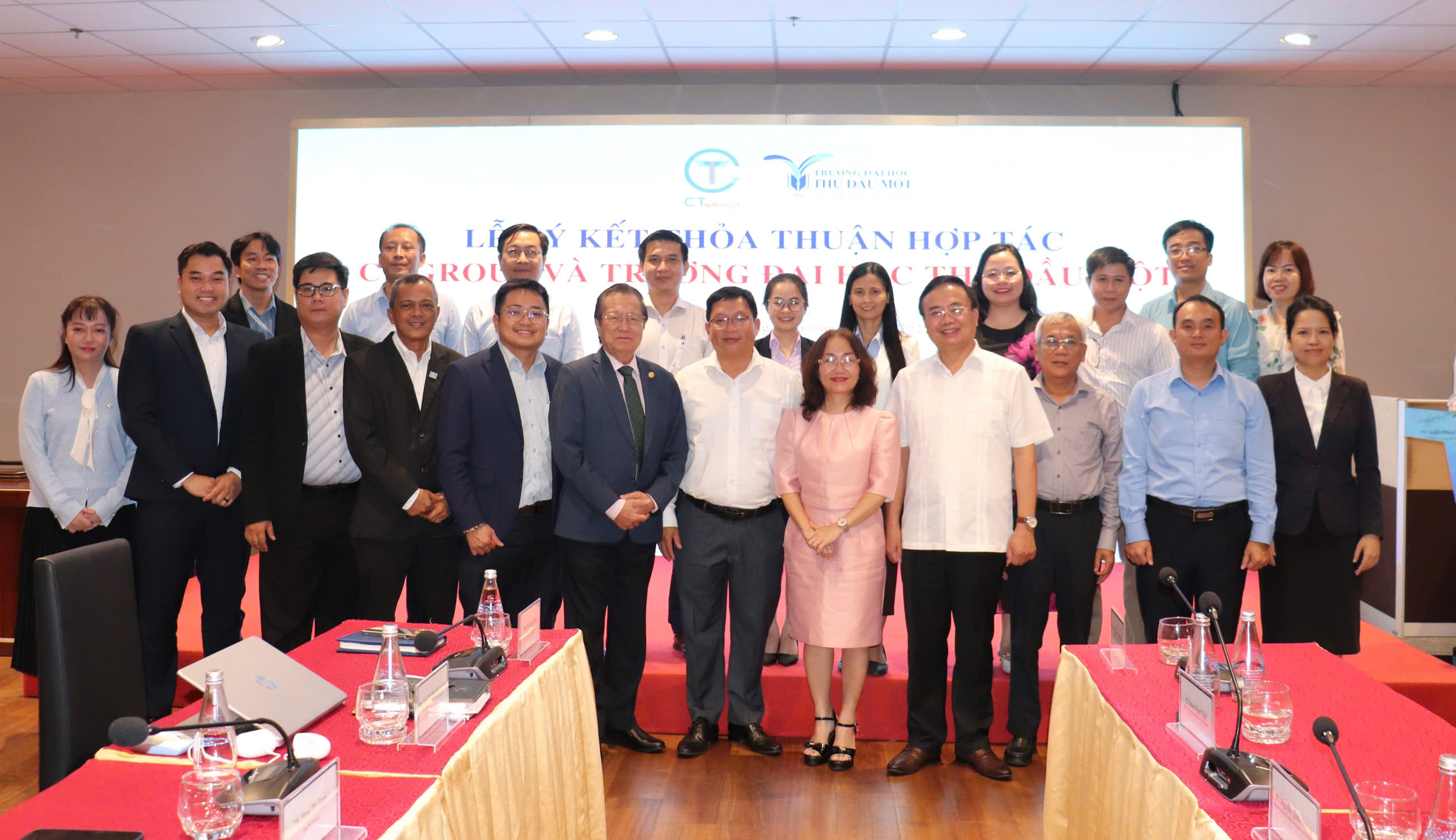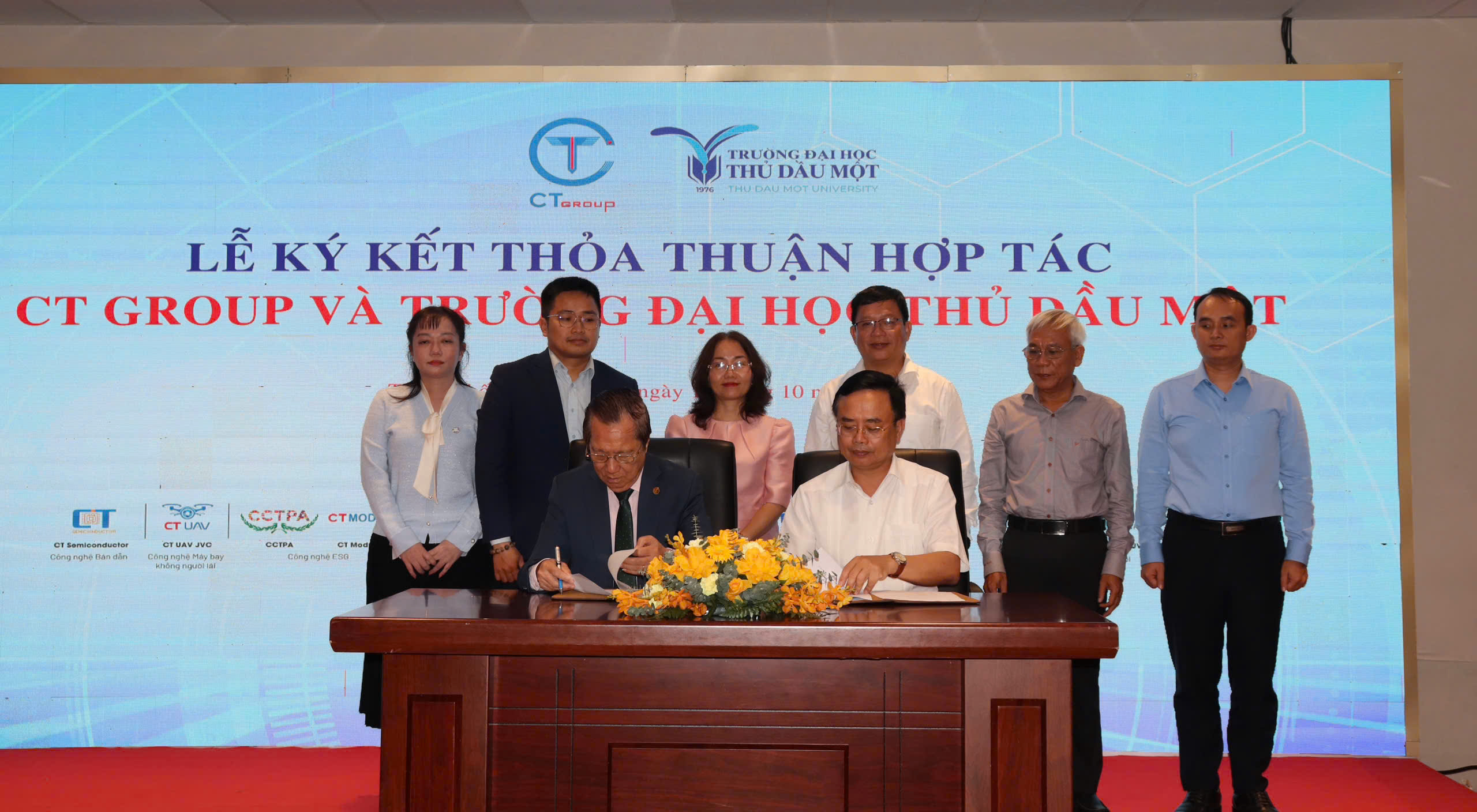 Chiều ngày 16/10/2025, Trường Đại học Thủ Dầu Một và Tập đoàn CT Group đã ký kết thỏa thuận hợp tác (MOU) trong lĩnh vực đào tạo nguồn nhân lực, hợp tác nghiên cứu khoa học và chuyển giao công nghệ, hỗ trợ hoạt động của sinh viên.