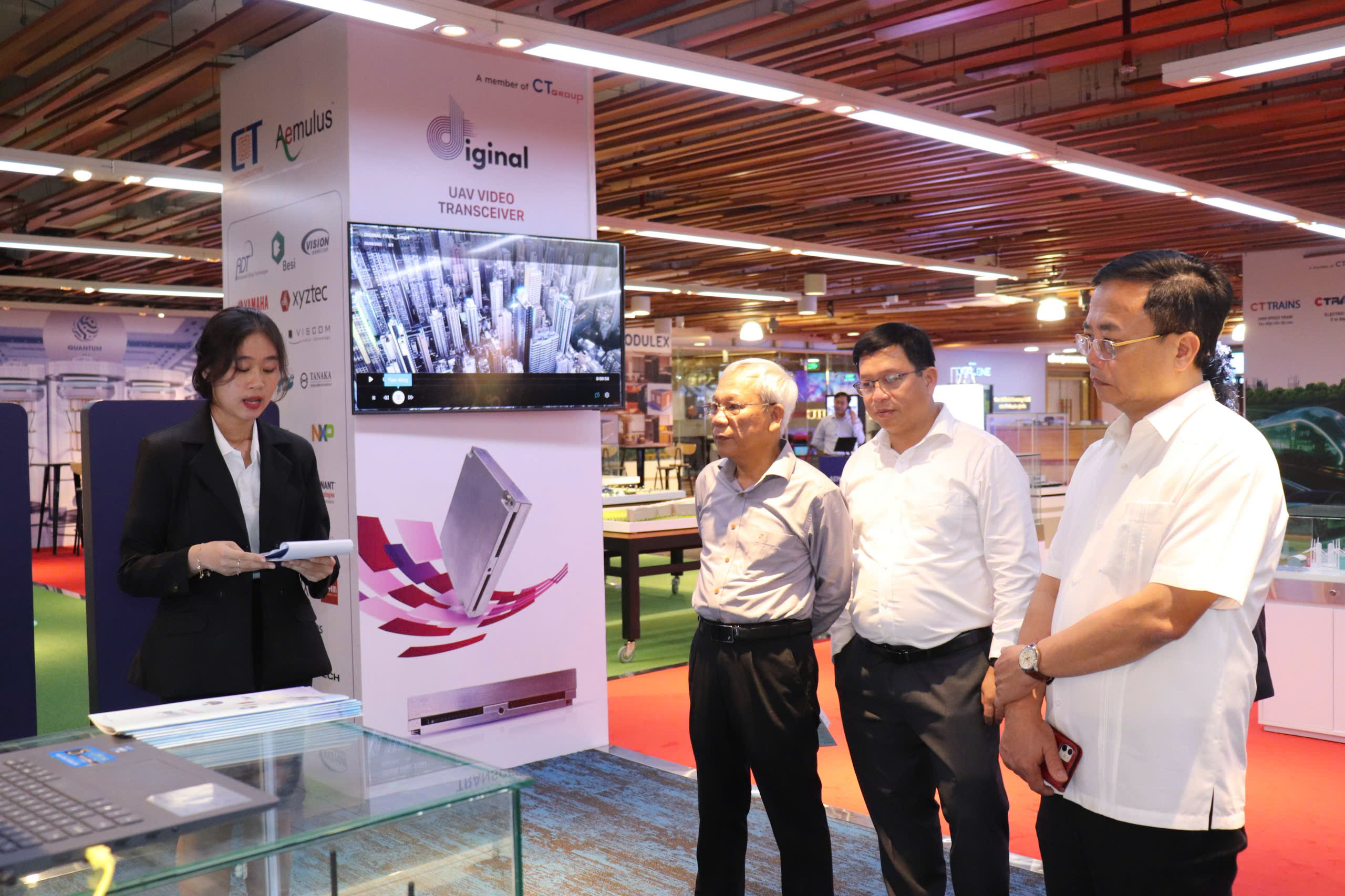 Lãnh đạo nhà trường tham quan không gian trưng bày các sản phẩm công nghệ của Tập đoàn CT Group