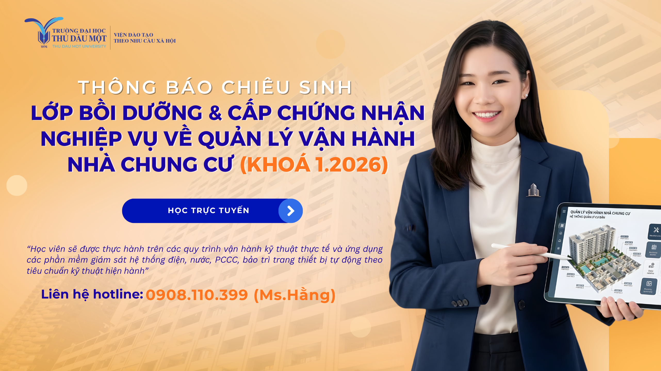 Thông báo chiêu sinh lớp bồi dưỡng và cấp chứng nhận nghiệp vụ quản lý vận hành nhà chung cư khóa 1.2026