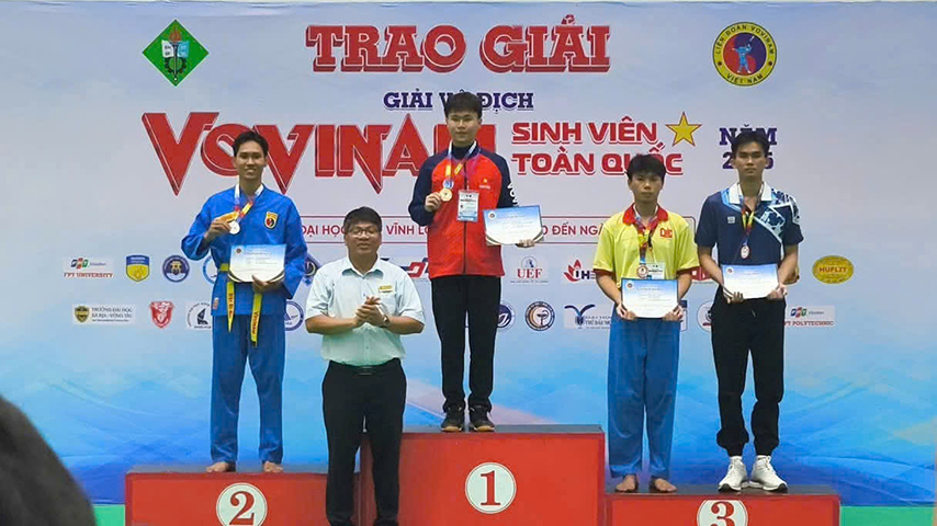 Sau 5 ngày thi đấu sôi nổi, Giải Vô địch Vovinam sinh viên toàn quốc năm 2025 đã chính thức khép lại vào chiều ngày 24/10 tại Nhà thi đấu đa năng Trường Đại học Sư phạm Kỹ thuật Vĩnh Long. Đội tuyển Trường Đại học Thủ Dầu Một đã ghi dấu ấn nổi bật khi giành được 01 Huy chương Bạc và 02 Huy chương Đồng.