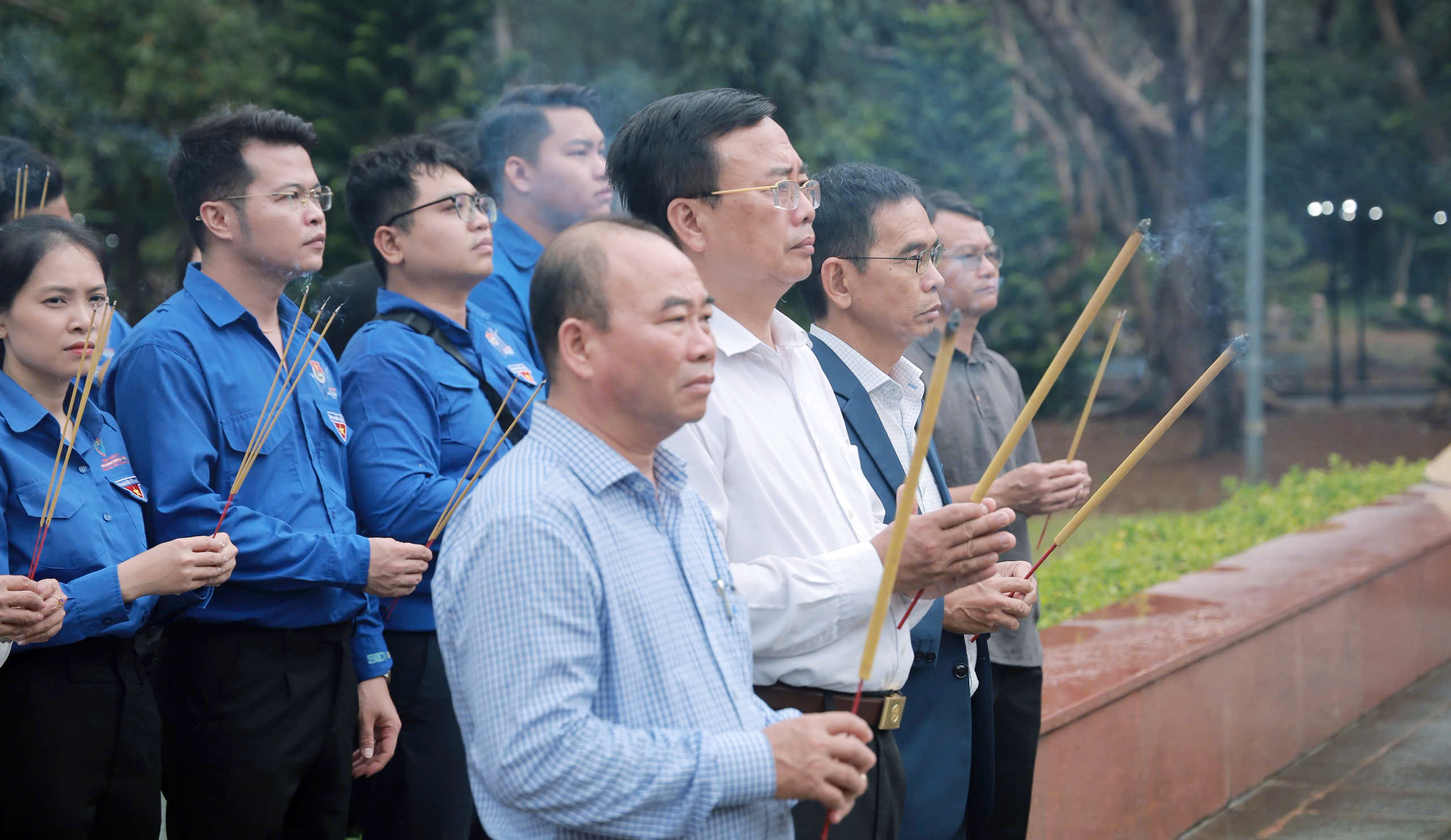 Trong không khí thiêng liêng, thành kính, các đại biểu và đoàn viên thanh niên đã dành phút mặc niệm, bày tỏ lòng biết ơn sâu sắc trước sự hy sinh cao cả của các thế hệ đi trước vì độc lập, tự do và toàn vẹn lãnh thổ của đất nước
