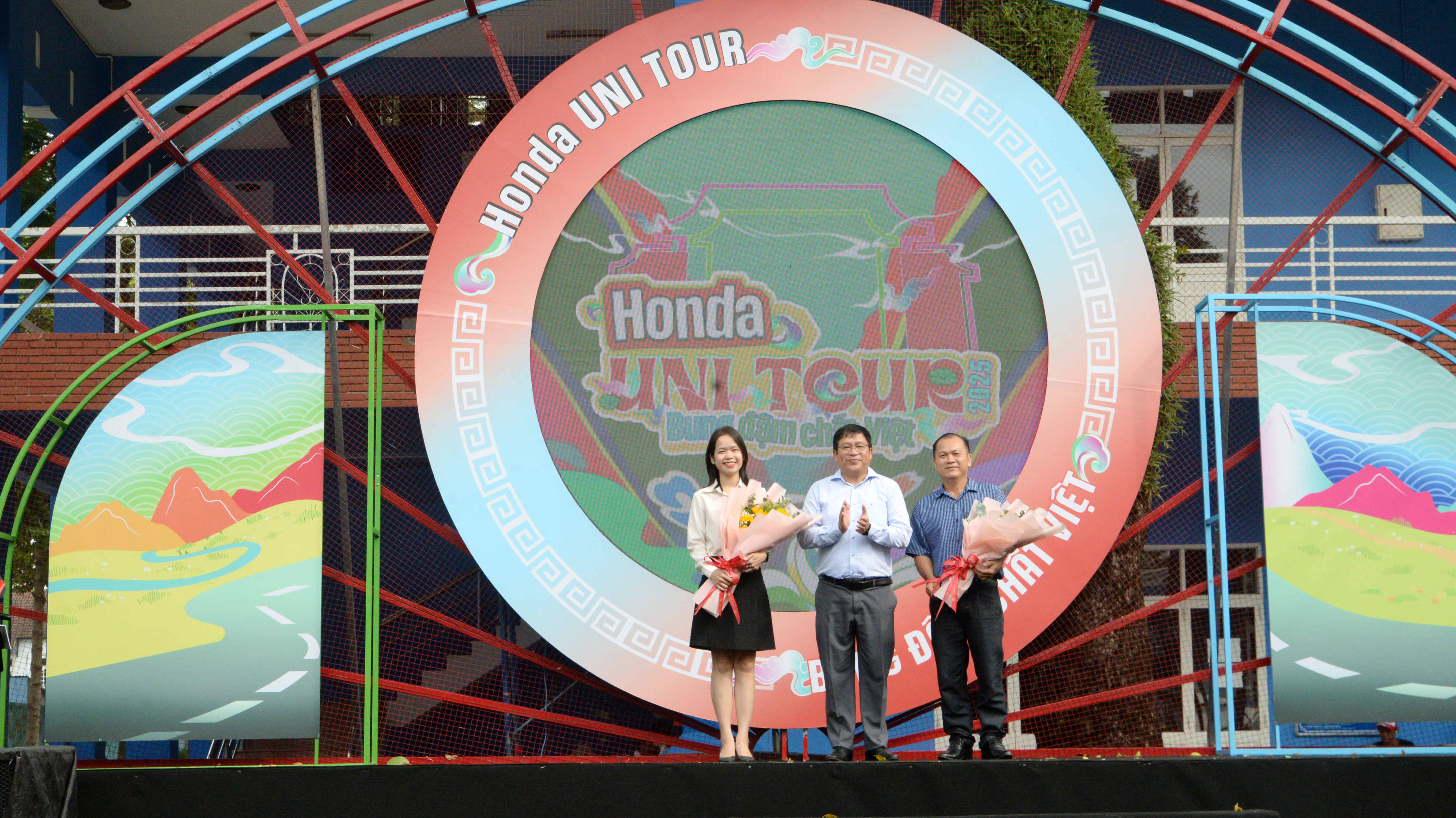 Thay mặt lãnh đạo nhà trường, PGS.TS Lê Tuấn Anh – Bí thư Đảng ủy, Chủ tịch Hội đồng trường bày tỏ lời cảm ơn trân trọng đến Trung tâm Hỗ trợ và Phát triển sinh viên Việt Nam, Ban Thường vụ Thành Đoàn, Ban Thư ký Hội Sinh viên TP.HCM và Công ty Honda Việt Nam đã phối hợp tổ chức chương trình ý nghĩa này tại Trường. PGS.TS Lê Tuấn Anh nhấn mạnh, Honda Uni Tour không chỉ là một sân chơi trải nghiệm bổ ích, mà còn là cơ hội để sinh viên rèn luyện kỹ năng thực hành, nâng cao nhận thức về an toàn giao thông, phát huy tinh thần sáng tạo, năng động, đồng thời gắn kết cộng đồng sinh viên với doanh nghiệp. “Thông qua các hoạt động vận động, thi đấu, workshop kỹ năng và tọa đàm khởi nghiệp, mỗi sinh viên sẽ được trang bị thêm kiến thức, kỹ năng mềm cần thiết, hình thành tinh thần chủ động, sáng tạo và trách nhiệm với bản thân và xã hội” - PGS.TS Lê Tuấn Anh bày tỏ.
