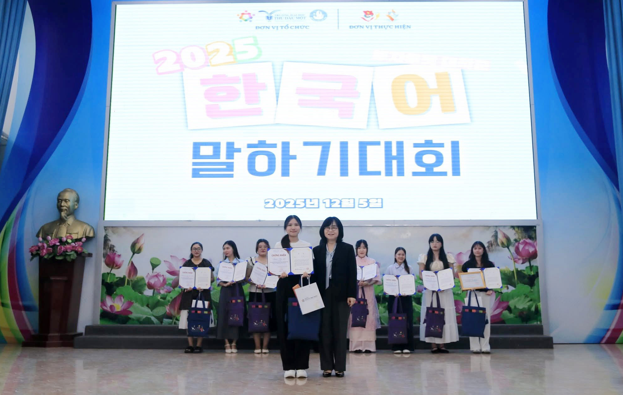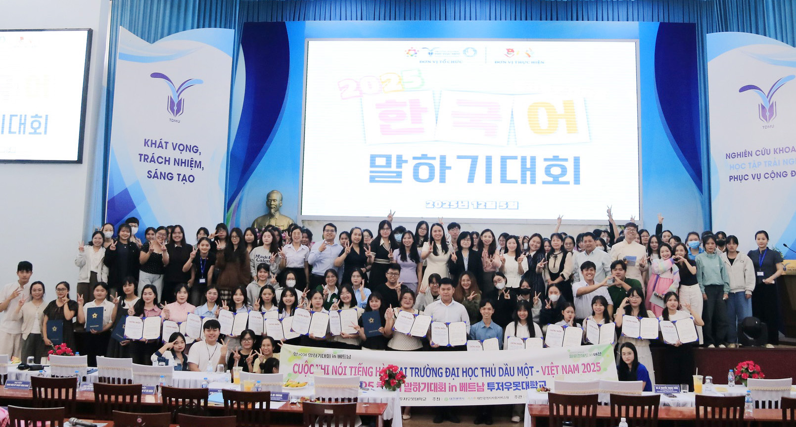 Trong tuần qua, trường Đại học Thủ Dầu Một đã phối hợp với Trung tâm Hỗ trợ Tổng hợp cư dân nước ngoài Thành phố Daejeon (Hàn Quốc) tổ chức thành công Cuộc thi Nói Tiếng Hàn năm 2025.