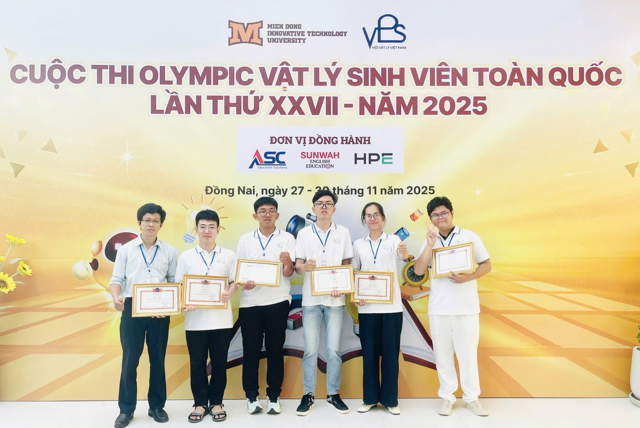 Tại Kỳ thi Olympic Vật lý Sinh viên toàn quốc lần thứ XXVII năm 2025 (SPhO 27) diễn ra từ ngày 27 – 30/11/2025 tại Trường Đại học Công nghệ Miền Đông (tỉnh Đồng Nai), đội tuyển Trường Đại học Thủ Dầu Một đạt thành tích ấn tượng với 2 giải Ba, 01 giải Khuyến khích và giải Ba toàn đoàn.
