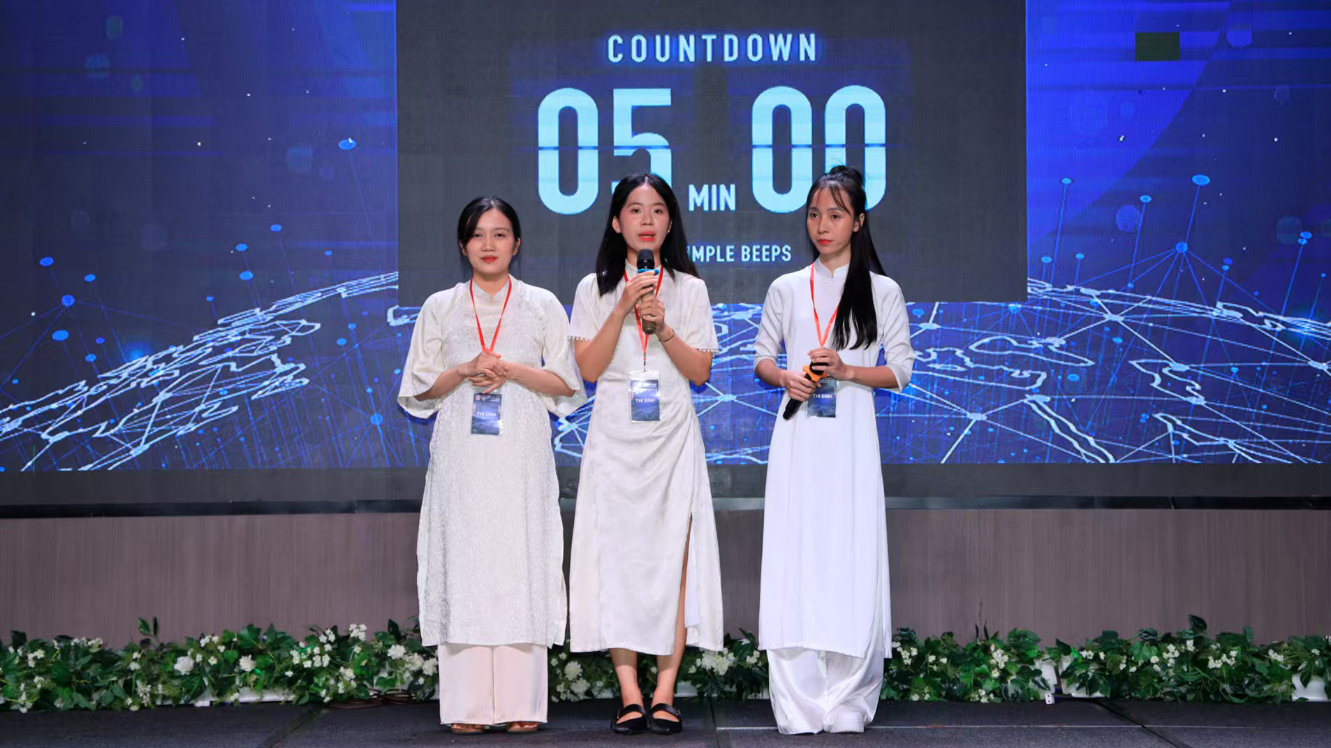Tranh tài tại vòng chung kết, đội tuyển Trường Đại học Thủ Dầu Một đã thể hiện năng lực ngôn ngữ nổi bật thông qua phong thái tự tin, phát âm chuẩn xác và khả năng lập luận logic, thuyết phục. Các thành viên của đội đã vận dụng linh hoạt vốn từ vựng, ngữ pháp và kỹ năng diễn đạt tiếng Trung một cách lưu loát, tự nhiên, phản ánh quá trình rèn luyện bài bản và năng lực sử dụng ngôn ngữ ở mức học thuật cao. Phần thể hiện của đội không chỉ cho thấy sự am hiểu về chủ đề “Giao lưu và hội nhập”, mà còn thể hiện rõ khả năng tư duy phản biện, kỹ năng trình bày và năng lực giao tiếp liên văn hóa vững vàng của sinh viên Trường Đại học Thủ Dầu Một.