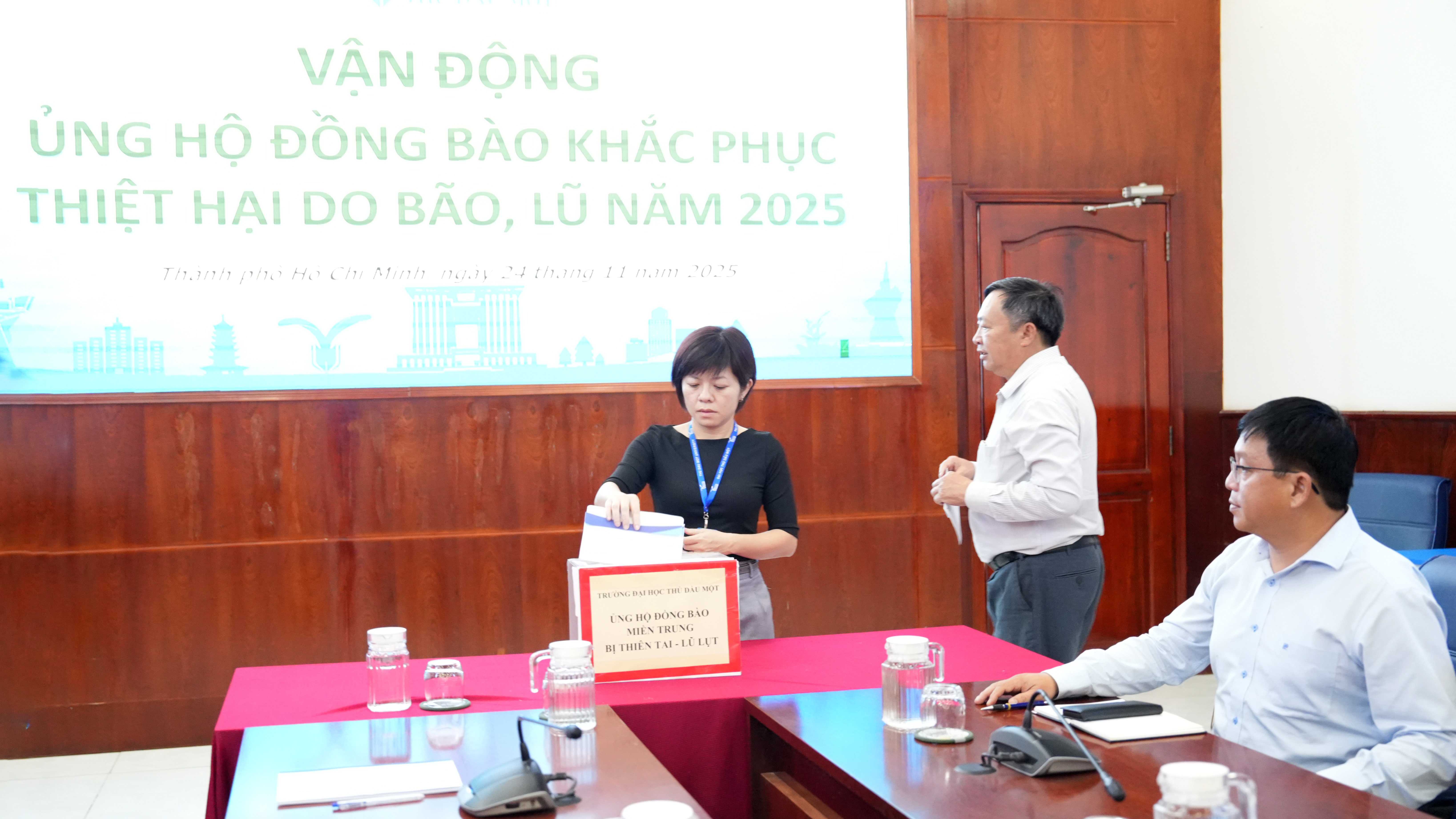 Ngày 24/11/2025, tại cuộc họp Ban Chấp hành Đảng bộ, Trường Đại học Thủ Dầu Một đã phát động ủng hộ đồng bào khắc phục thiệt hại do bão, lũ năm 2025