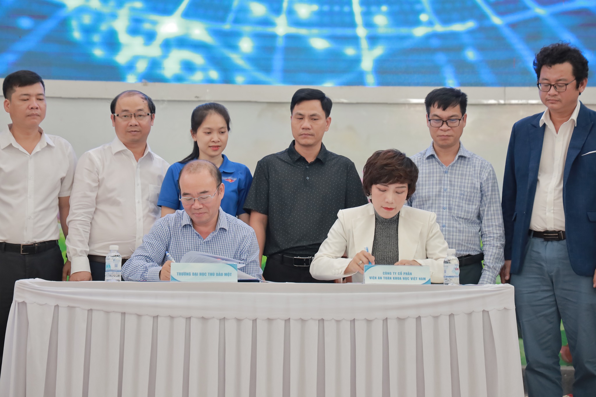 Tham dự buổi lễ, về phía Trường Đại học Thủ Dầu Một có PGS.TS. Ngô Hồng Điệp – Phó Hiệu trưởng, cùng đại diện lãnh đạo các đơn vị thuộc và trực thuộc nhà trường. Về phía Công ty Cổ phần Viện An toàn Khoa học Việt Nam có bà Lê Nguyễn Ly Na – Giám đốc điều hành, cùng đại diện các đơn vị chuyên môn.