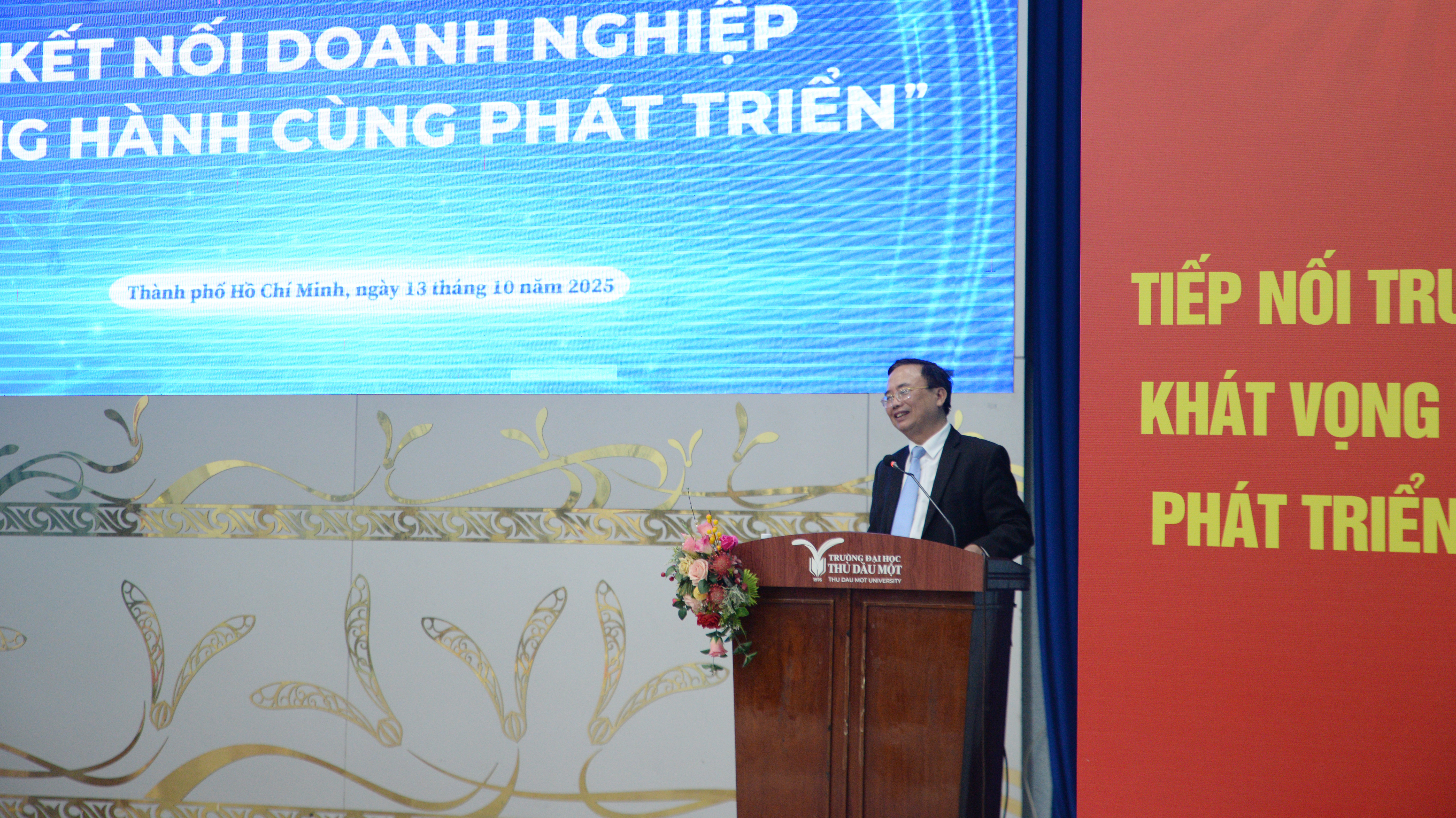 Nằm trong chuỗi hoạt động kỷ niệm, tri ân Ngày Doanh nhân Việt Nam, ngày 13/10/2025, Trường Đại học Thủ Dầu Một đã tổ chức chương trình “Kết nối Doanh nghiệp – Đồng hành cùng phát triển”