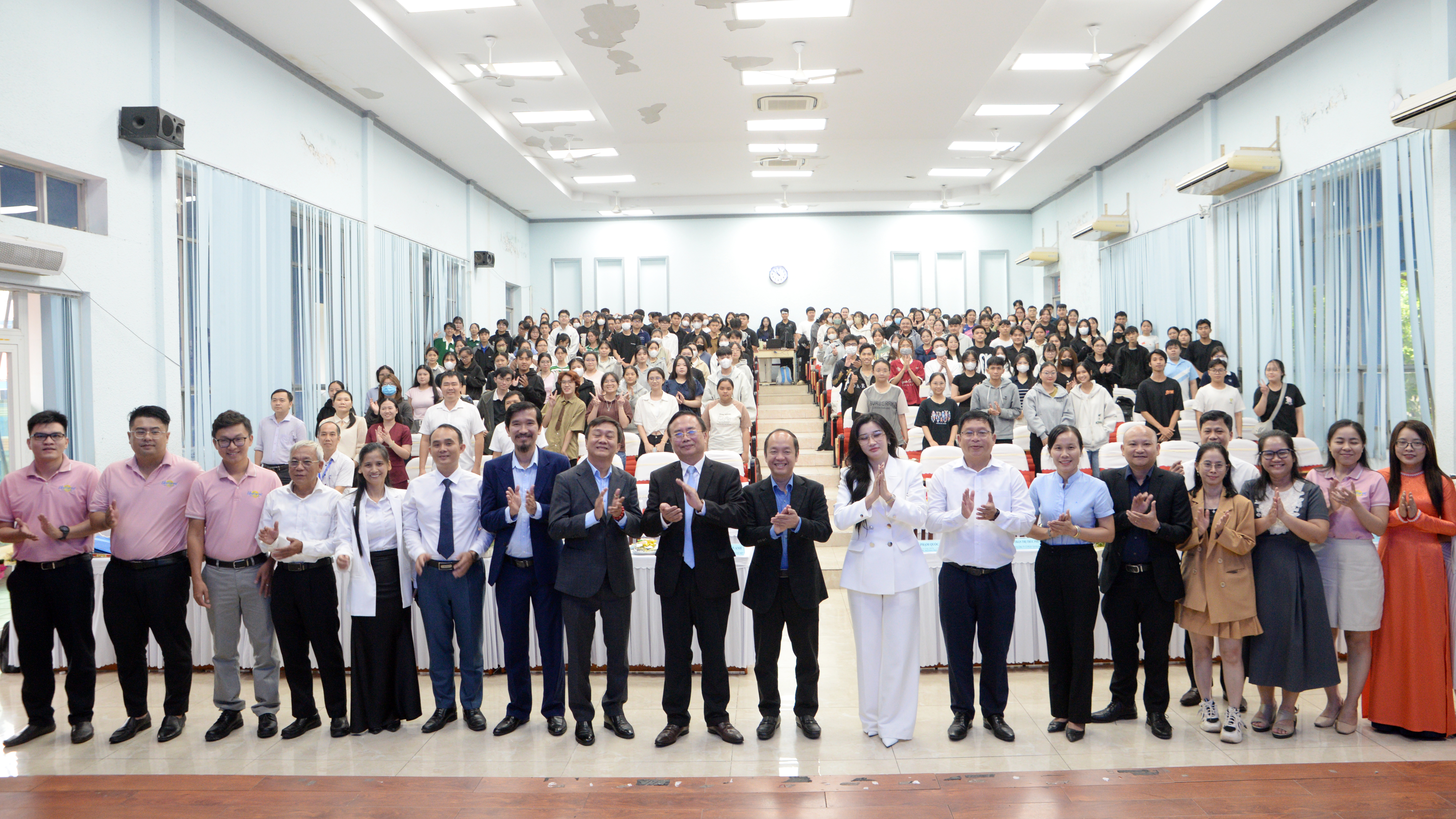 Trong bối cảnh đó, ông Phạm Quốc Liêm đặc biệt khuyên sinh viên luôn giữ tâm thế “học cách học”, liên tục cập nhật và làm chủ các kiến thức mới. Đồng thời, sinh viên cần nuôi dưỡng khát vọng, rèn luyện bản lĩnh và ý chí vững vàng để tự tin đương đầu với thách thức, nắm bắt cơ hội trong thời đại cuộc cách mạng công nghiệp 4.0 và sự bùng nổ của trí tuệ nhân tạo (AI). “Sự kết hợp giữa năng lực chuyên môn, kỹ năng thực tiễn và tinh thần chủ động, kiên định sẽ giúp sinh viên không chỉ đáp ứng yêu cầu công việc hiện tại mà còn mở rộng cơ hội phát triển nghề nghiệp lâu dài, đồng thời đóng góp tích cực vào sự đổi mới sáng tạo và tạo ra giá trị thực tiễn cho doanh nghiệp và xã hội” - Ông Phạm Quốc Liêm nhấn mạnh.