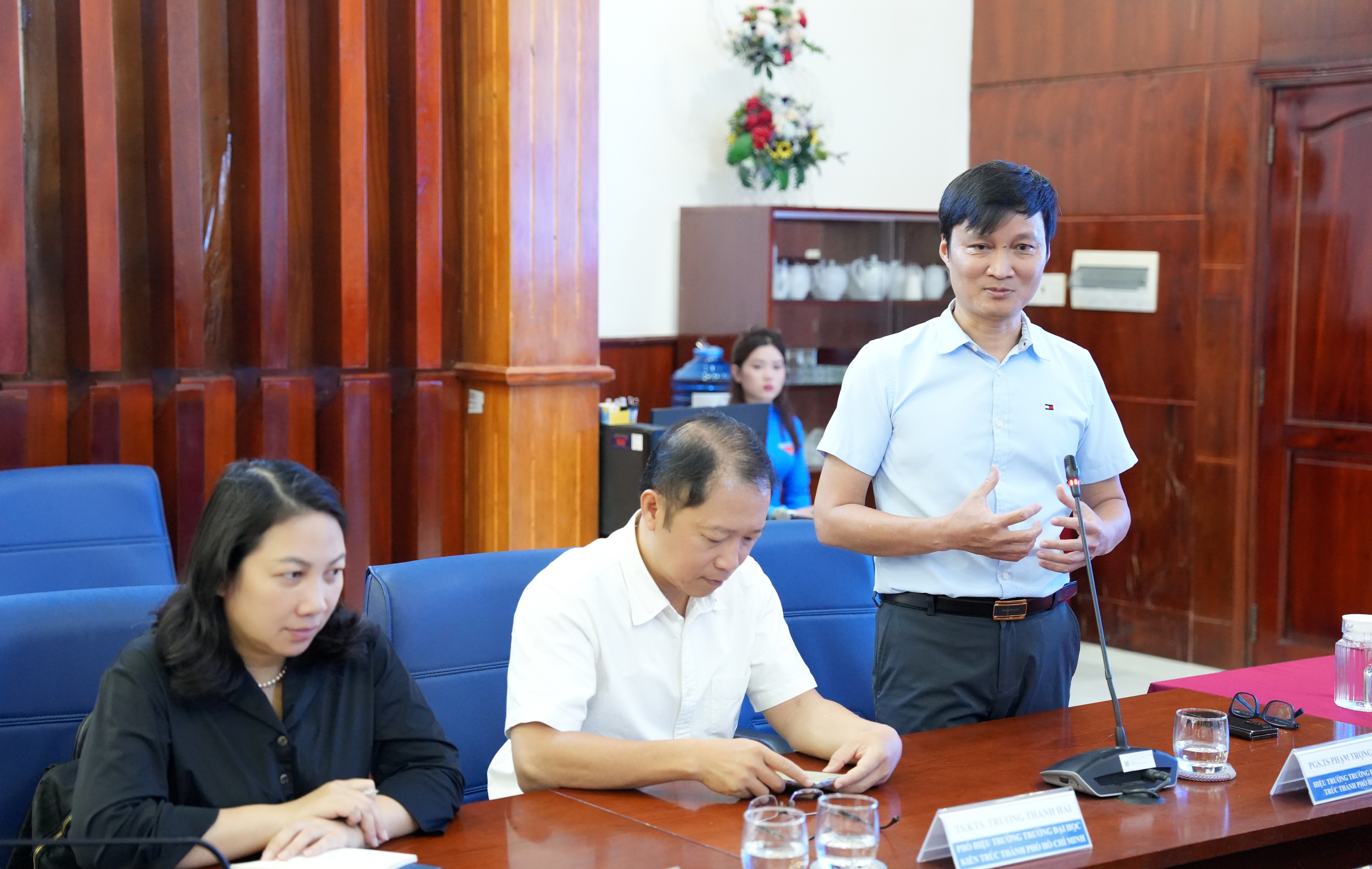 TS. Đoàn Ngọc Xuân - Hiệu trưởng phát biểu trao đổi kế hoạch triển khai nội dung các chương trình hợp tác giữa hai trường trong thời gian tới