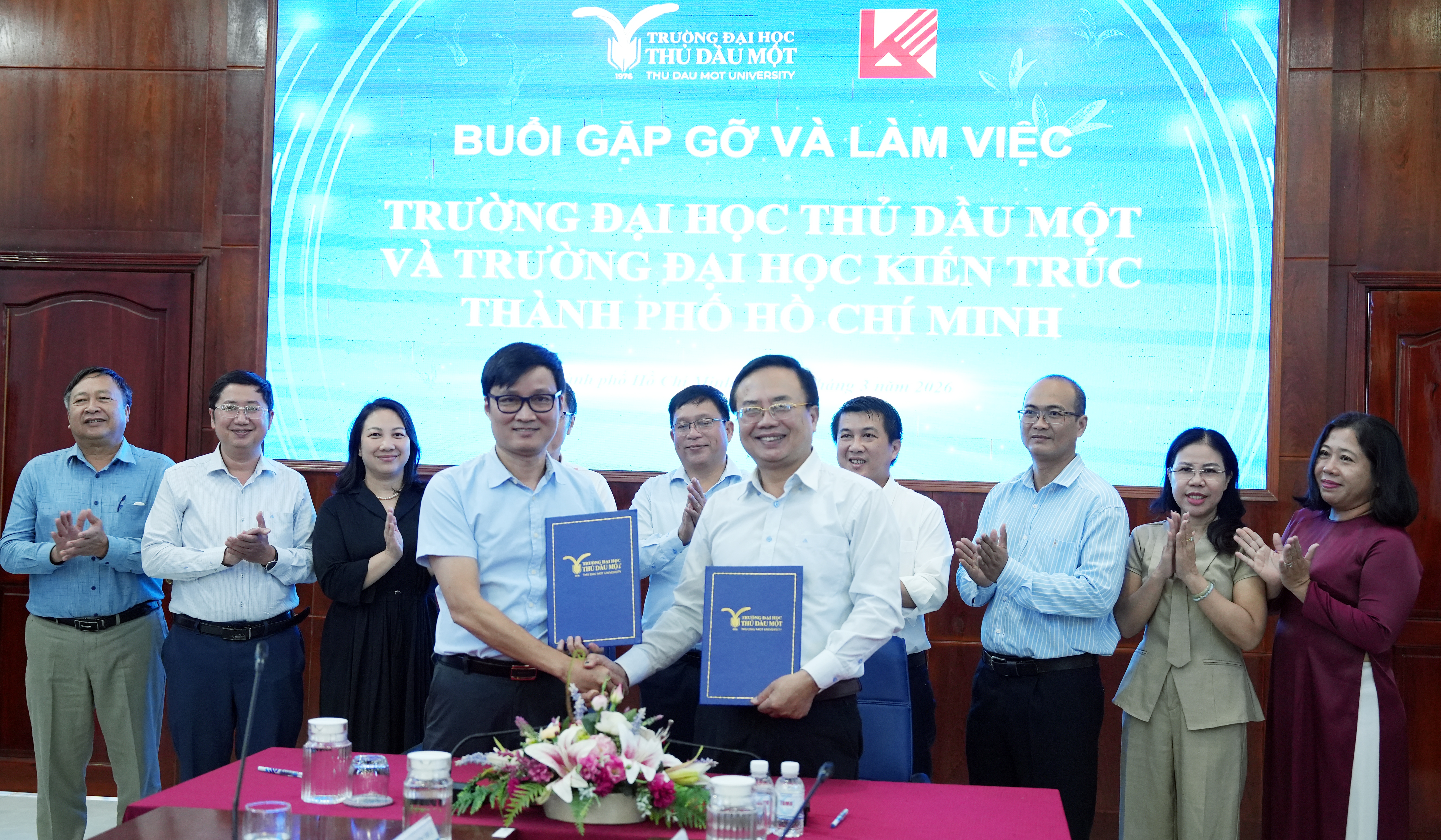 Ngày 31/3/2026, Trường Đại học Thủ Dầu Một đã tổ chức lễ ký kết bản ghi nhớ hợp tác (MOU) với Trường Đại học Kiến trúc Thành phố Hồ Chí Minh