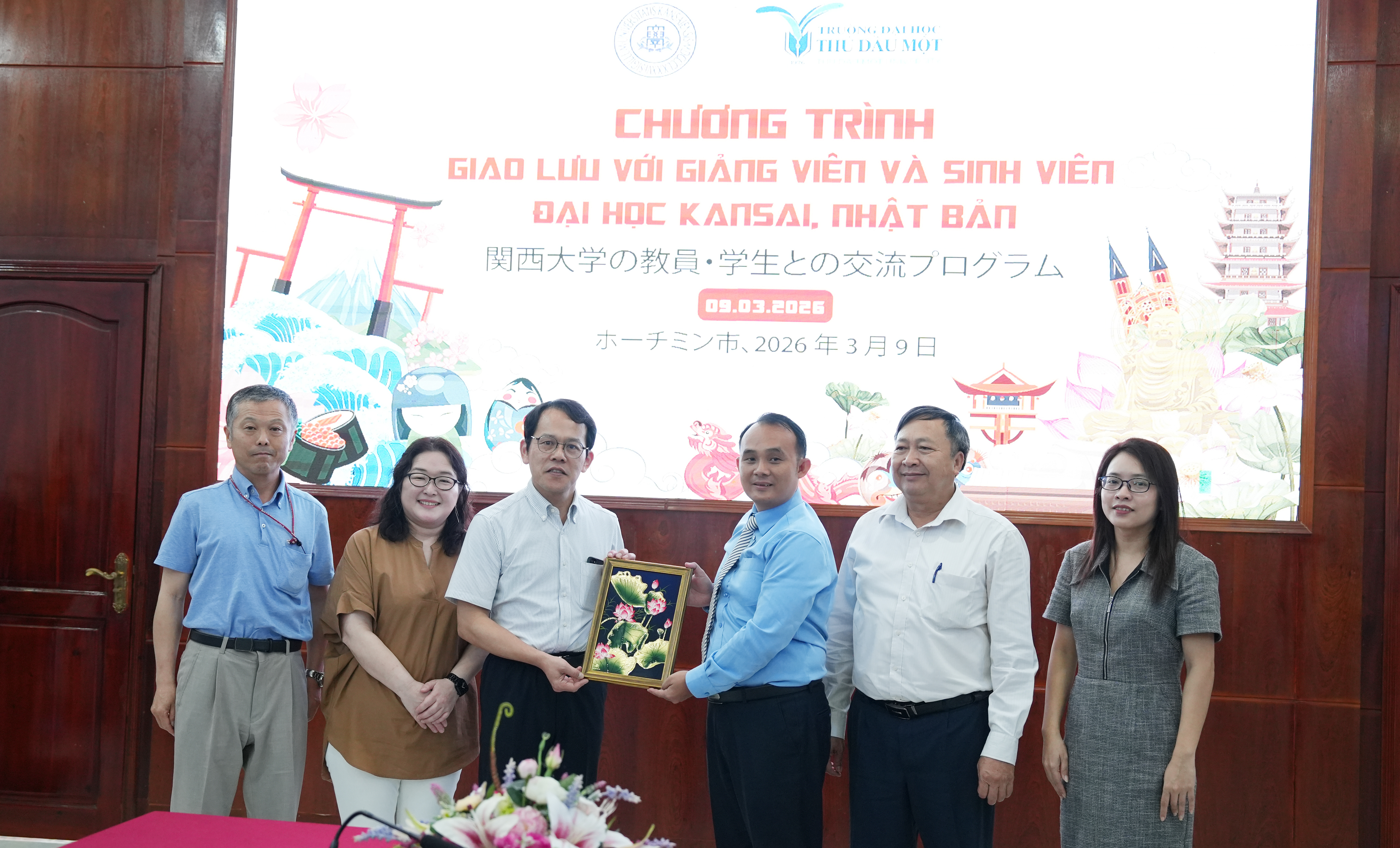 Trước đó, năm 2025, Trường Đại học Thủ Dầu Một đã tiếp đón đoàn đại biểu của Trường Đại học Kansai và cùng tổ chức chương trình tham quan, khảo sát thực tế tại Vinasoy nhằm tìm hiểu mô hình sản xuất và các vấn đề liên quan đến môi trường – phát triển bền vững trong doanh nghiệp. Những hoạt động giao lưu, trao đổi học thuật này đã góp phần tạo nền tảng cho việc mở rộng hợp tác giữa hai trường trong thời gian tới.