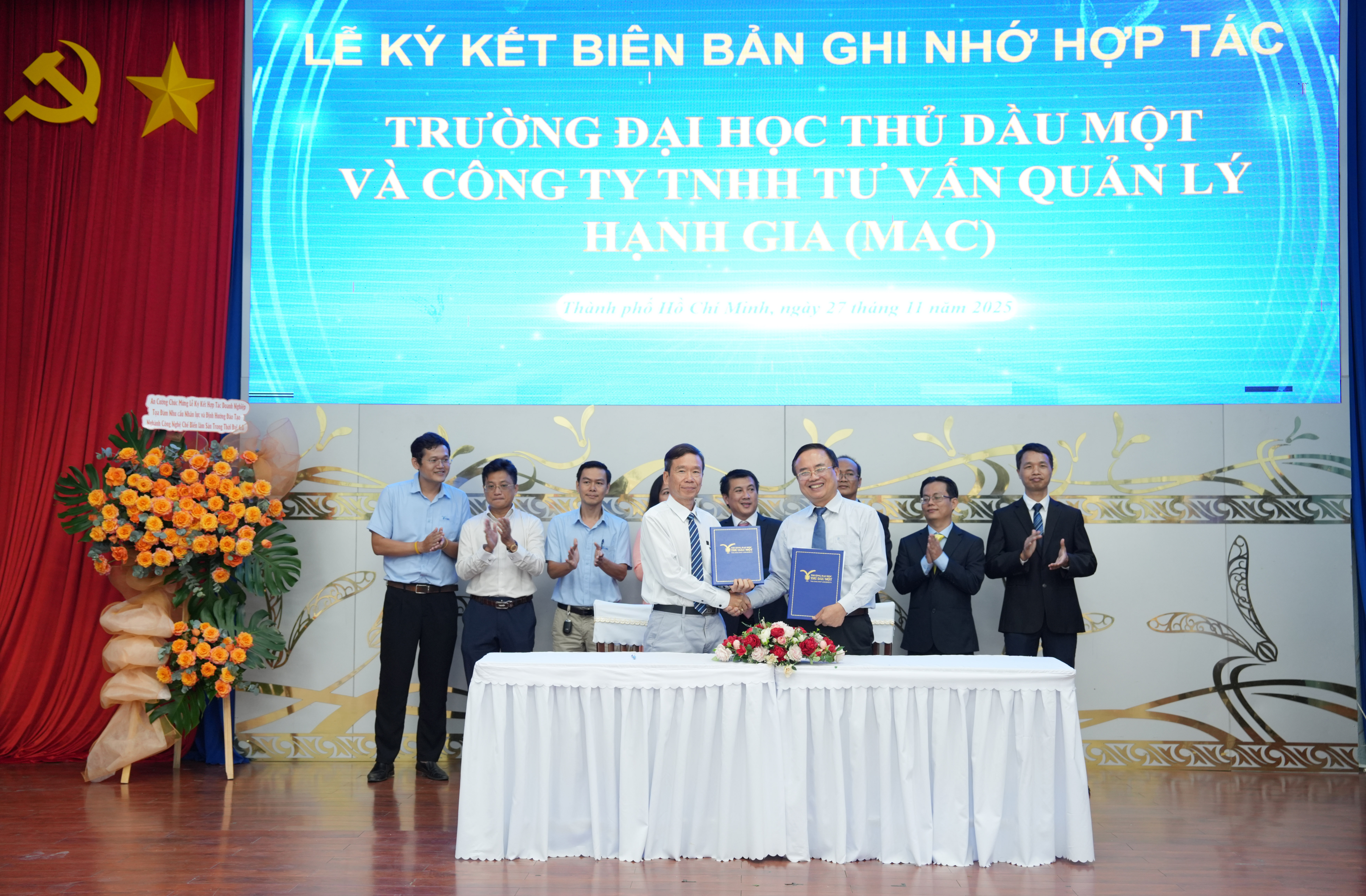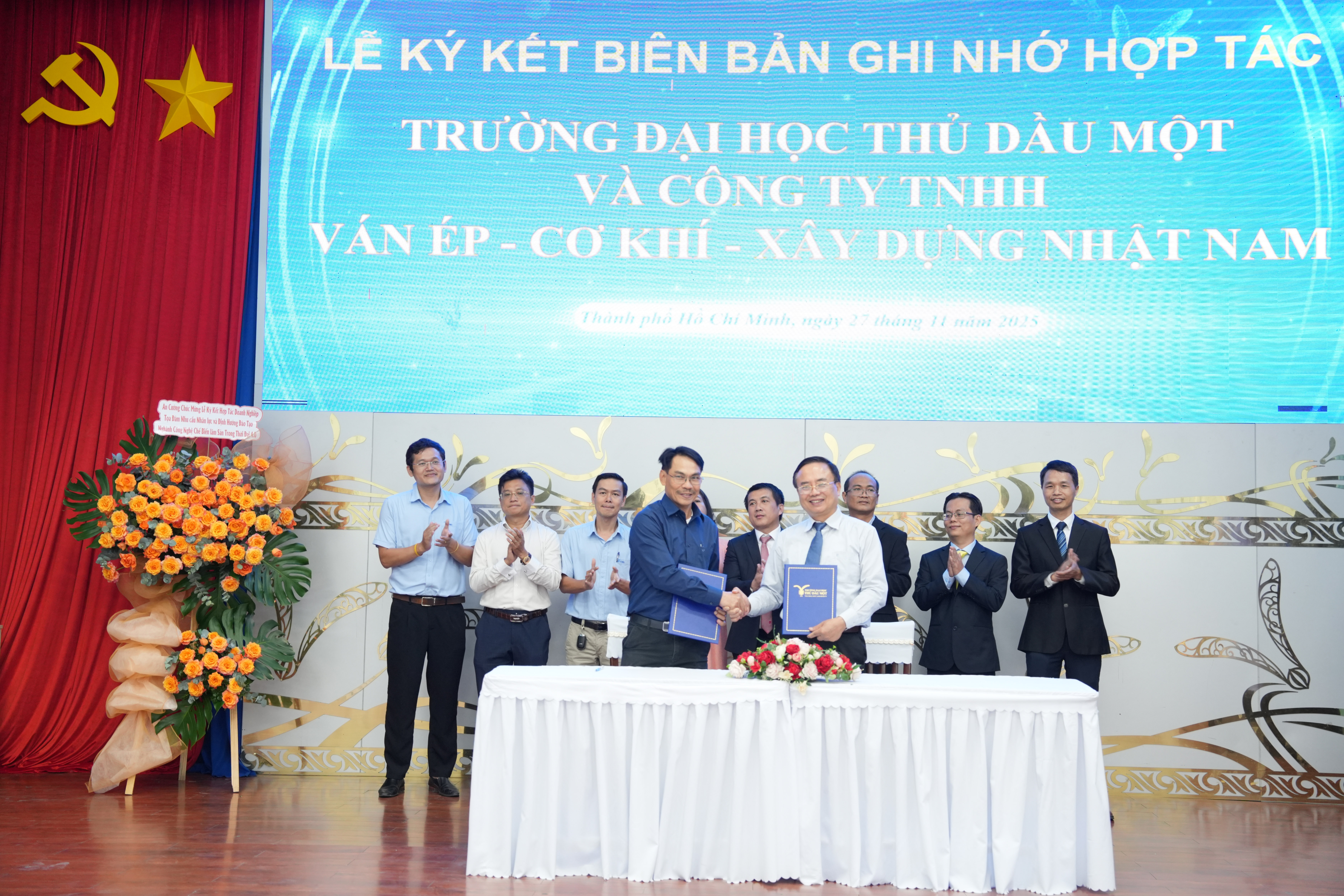 Sáng ngày 27/11/2025, Trường Đại học Thủ Dầu Một đã tổ chức lễ ký kết Biên bản ghi nhớ hợp tác với các doanh nghiệp trong lĩnh vực kiến trúc, xây dựng, chế biến lâm sản, nhằm tăng cường liên kết đào tạo, nghiên cứu khoa học và chuyển giao công nghệ.
