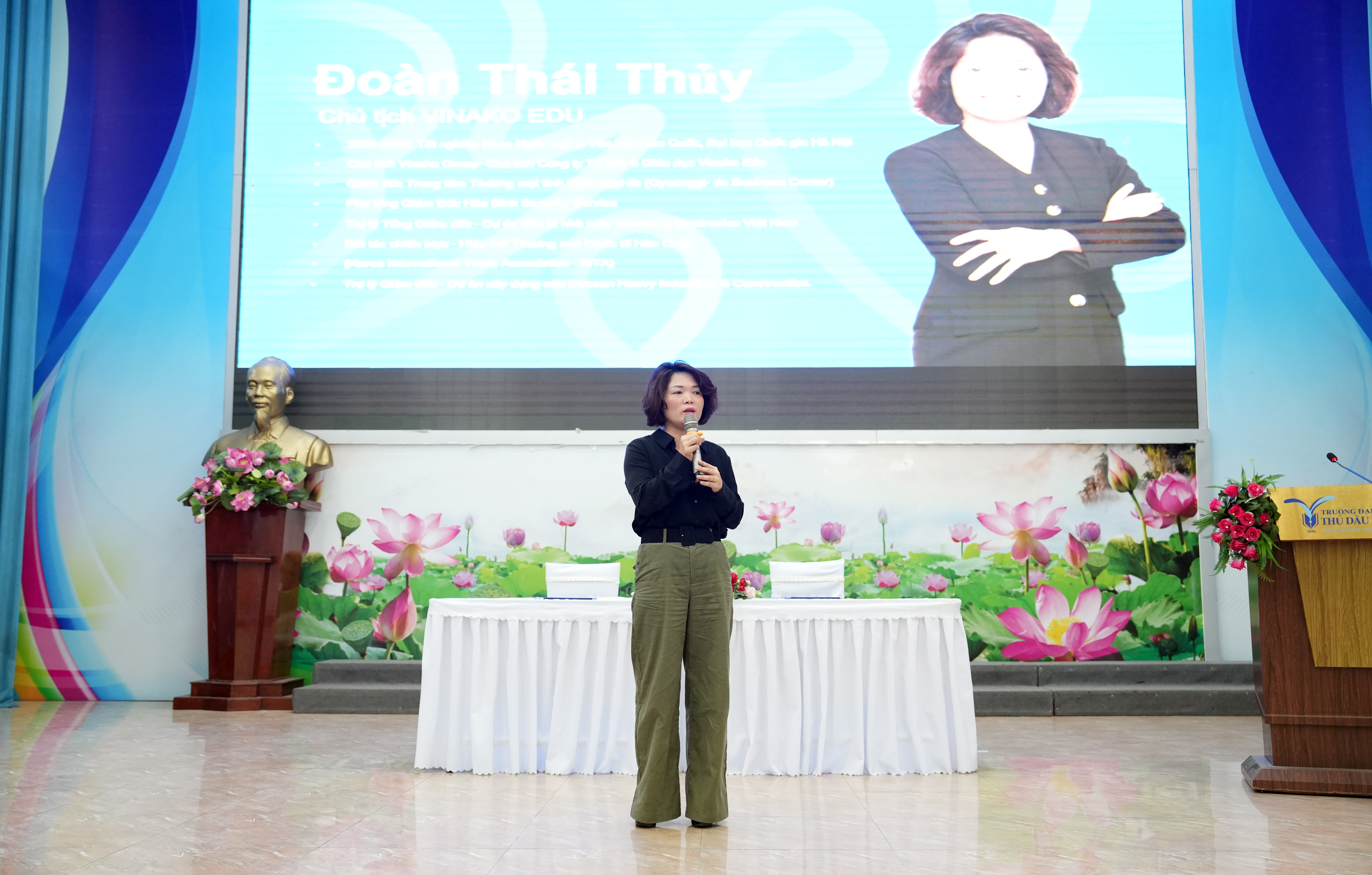 Bà Đoàn Thái Thủy – Chủ tịch Hội đồng Quản trị Vinako Edu giới thiệu các chương trình du học tại các trường đại học Hàn Quốc