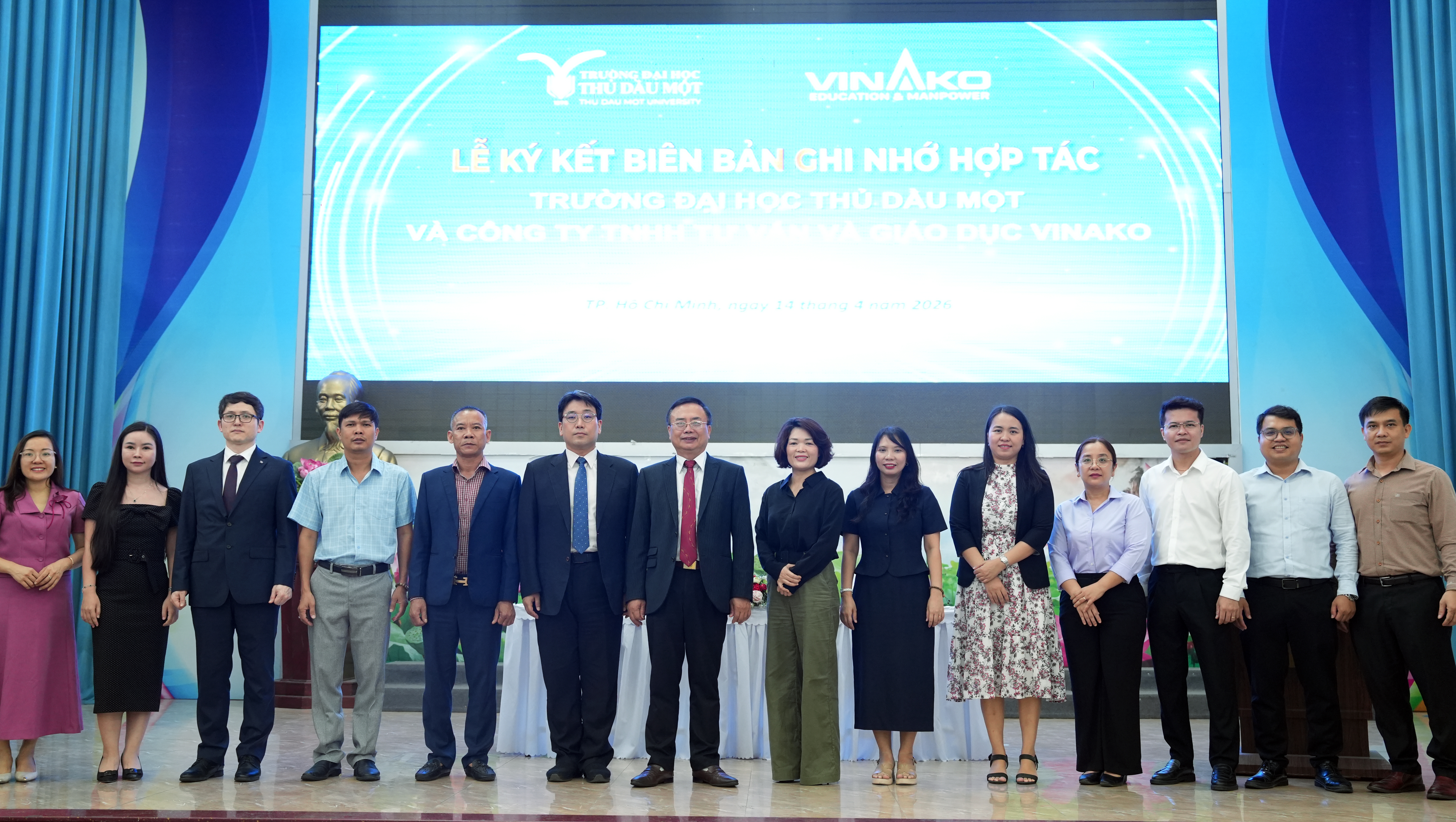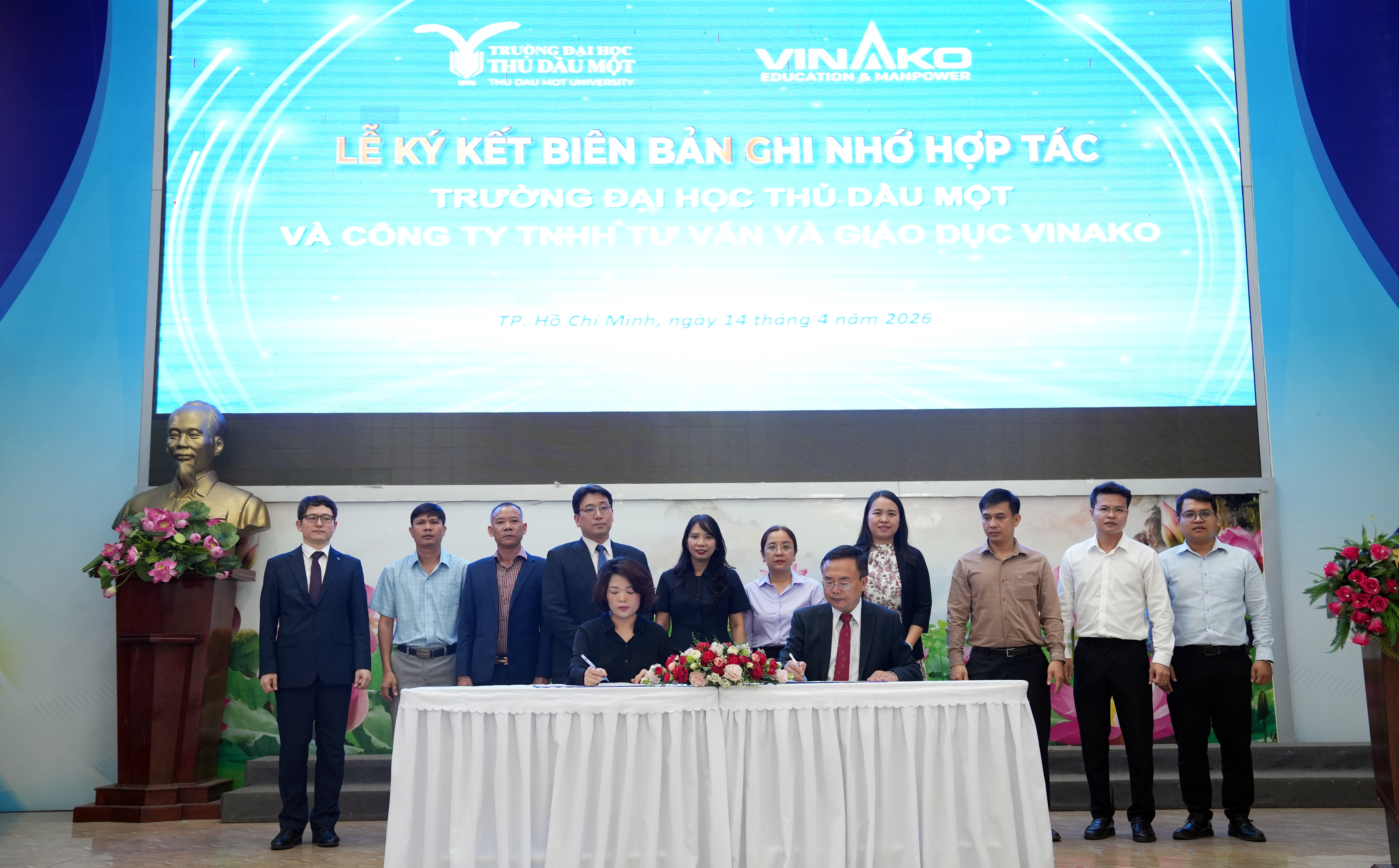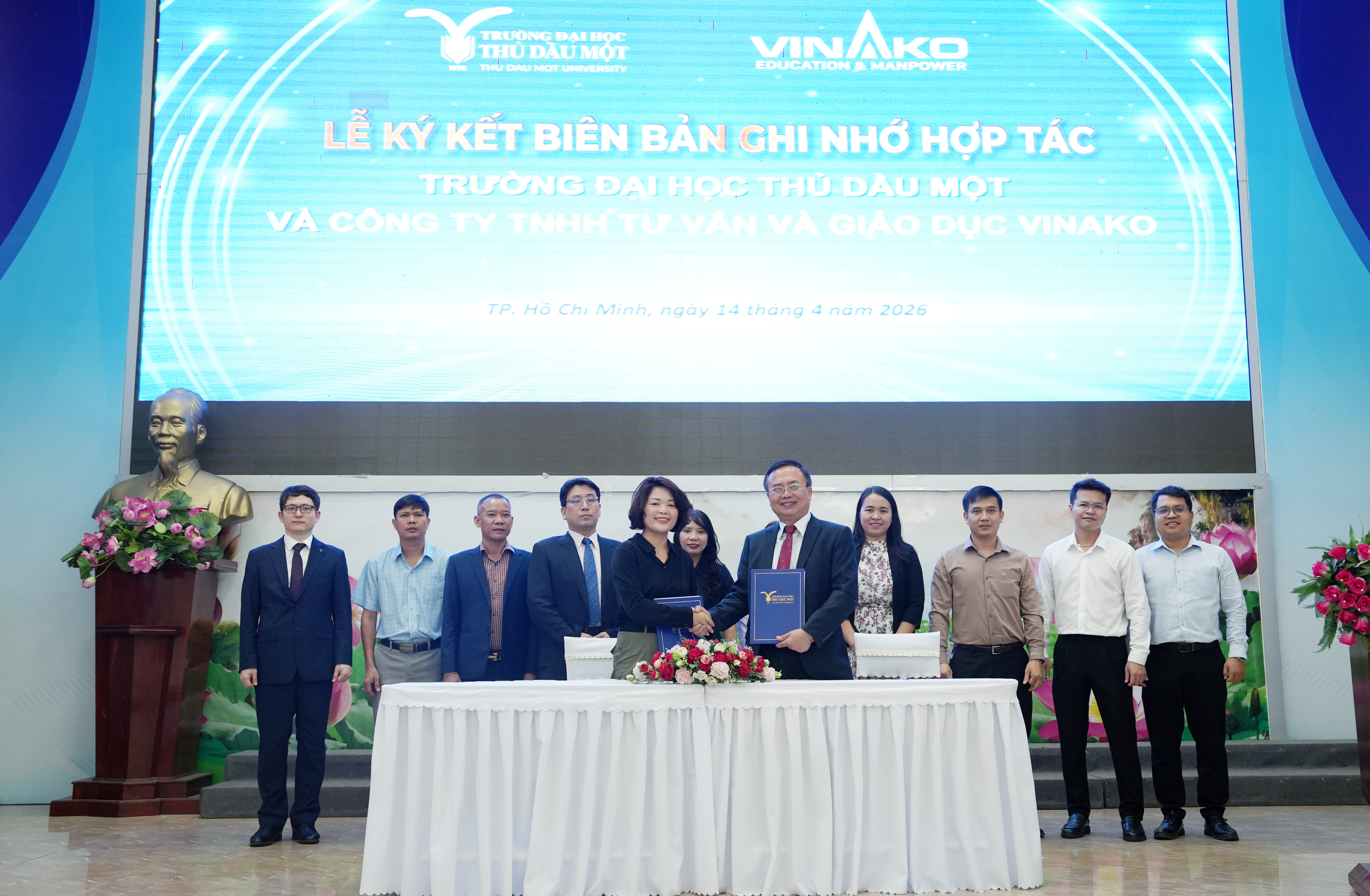 Trong chiến lược đẩy mạnh quốc tế hóa và nâng cao chất lượng đào tạo gắn với nhu cầu thị trường lao động, sáng ngày 14/4/2026, Trường Đại học Thủ Dầu Một đã tổ chức lễ ký kết hợp tác với Công ty TNHH Tư vấn và Giáo dục Vinako Edu, đồng thời kết nối với Trường Đại học Dong-eui (Hàn Quốc).