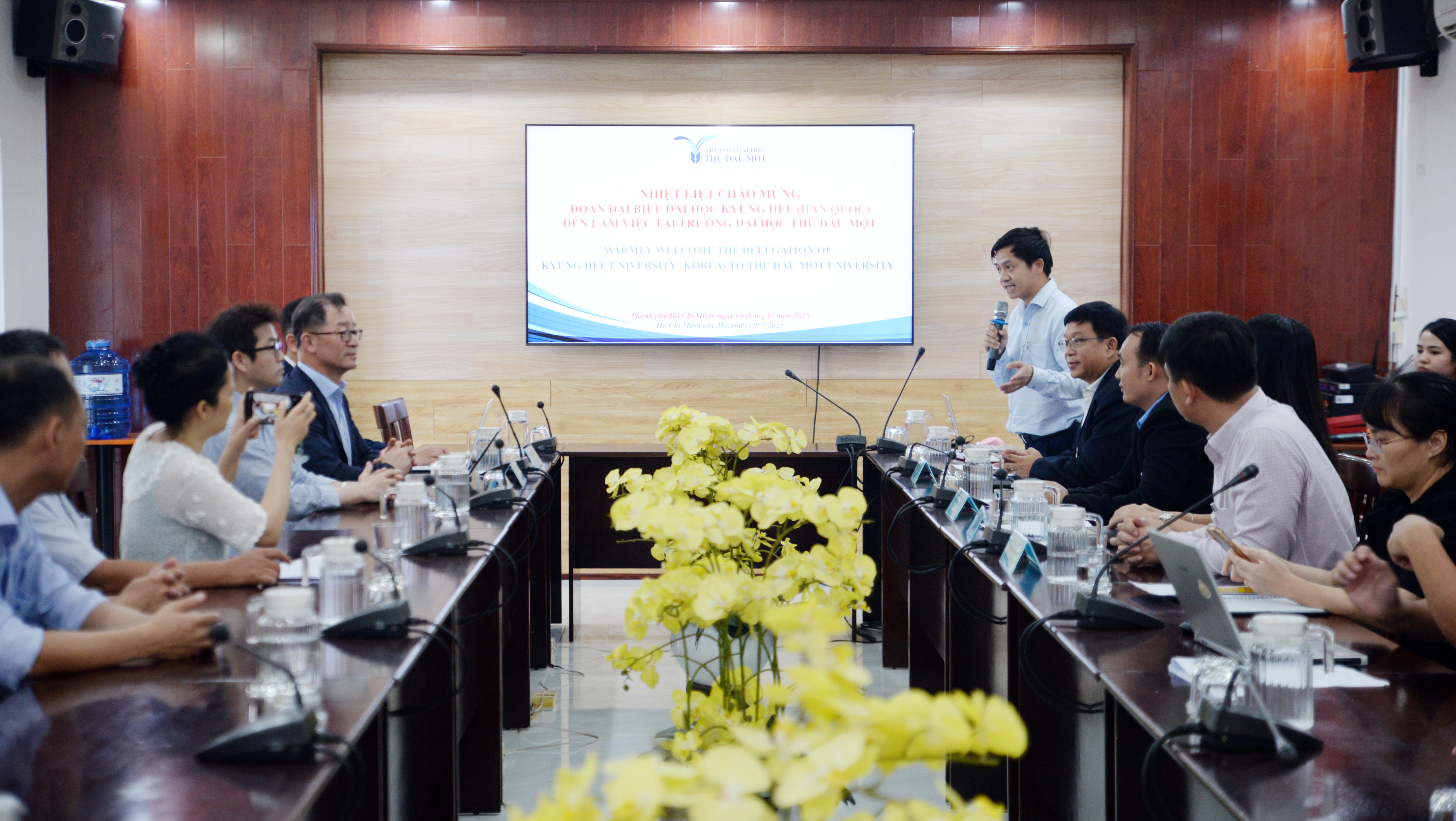 Ngày 05/12/2025, Đoàn Đại biểu Trường Đại học Kyung Hee đã đến thăm và làm việc với Trường Đại học Thủ Dầu Một nhằm trao đổi các chương trình hợp tác liên kết đào tạo, nghiên cứu khoa học và giao lưu văn hóa.
