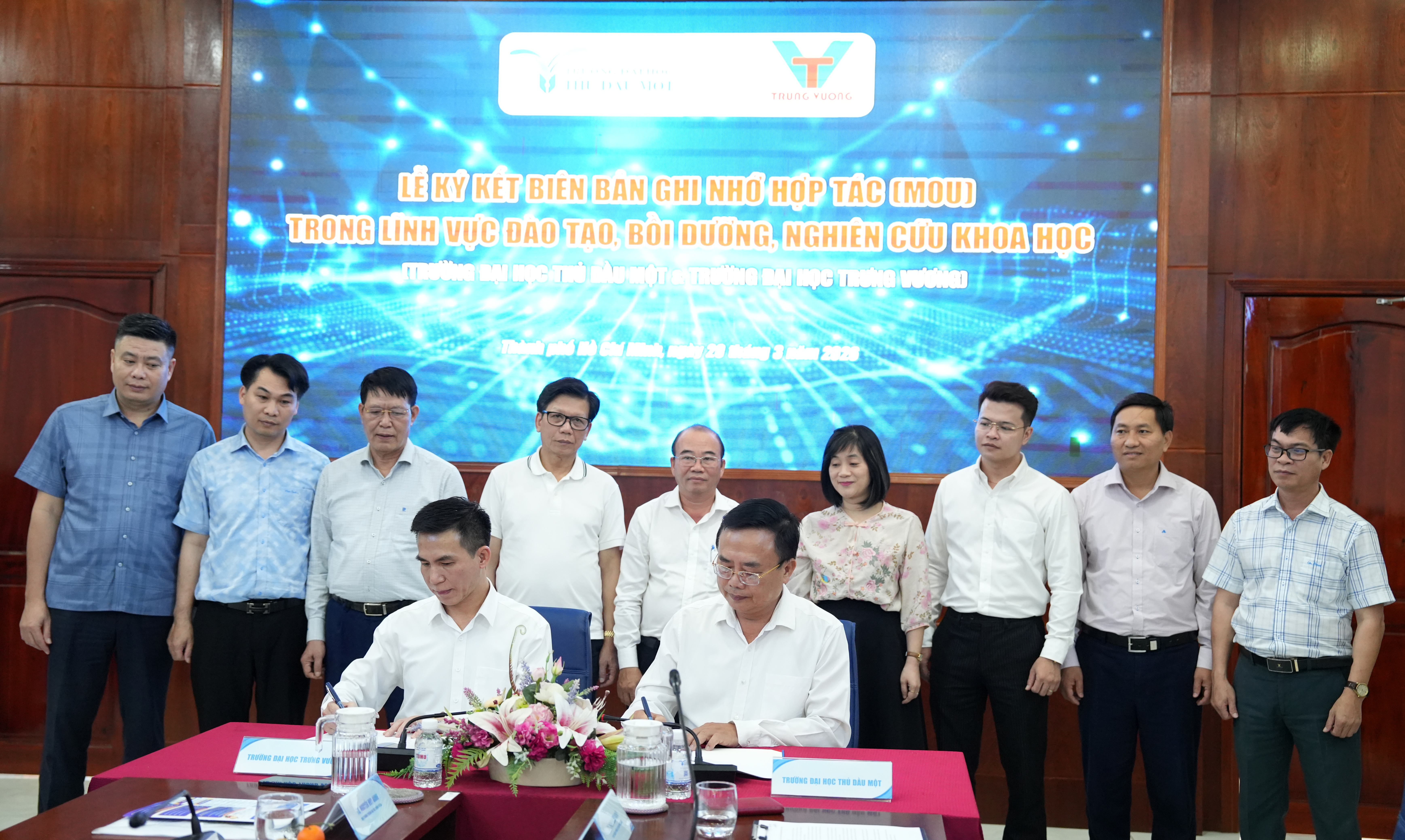 Chiều ngày 20/3/2026, Trường Đại học Thủ Dầu Một phối hợp cùng Trường Đại học Trưng Vương long trọng tổ chức Lễ ký kết Biên bản ghi nhớ hợp tác (MOU)