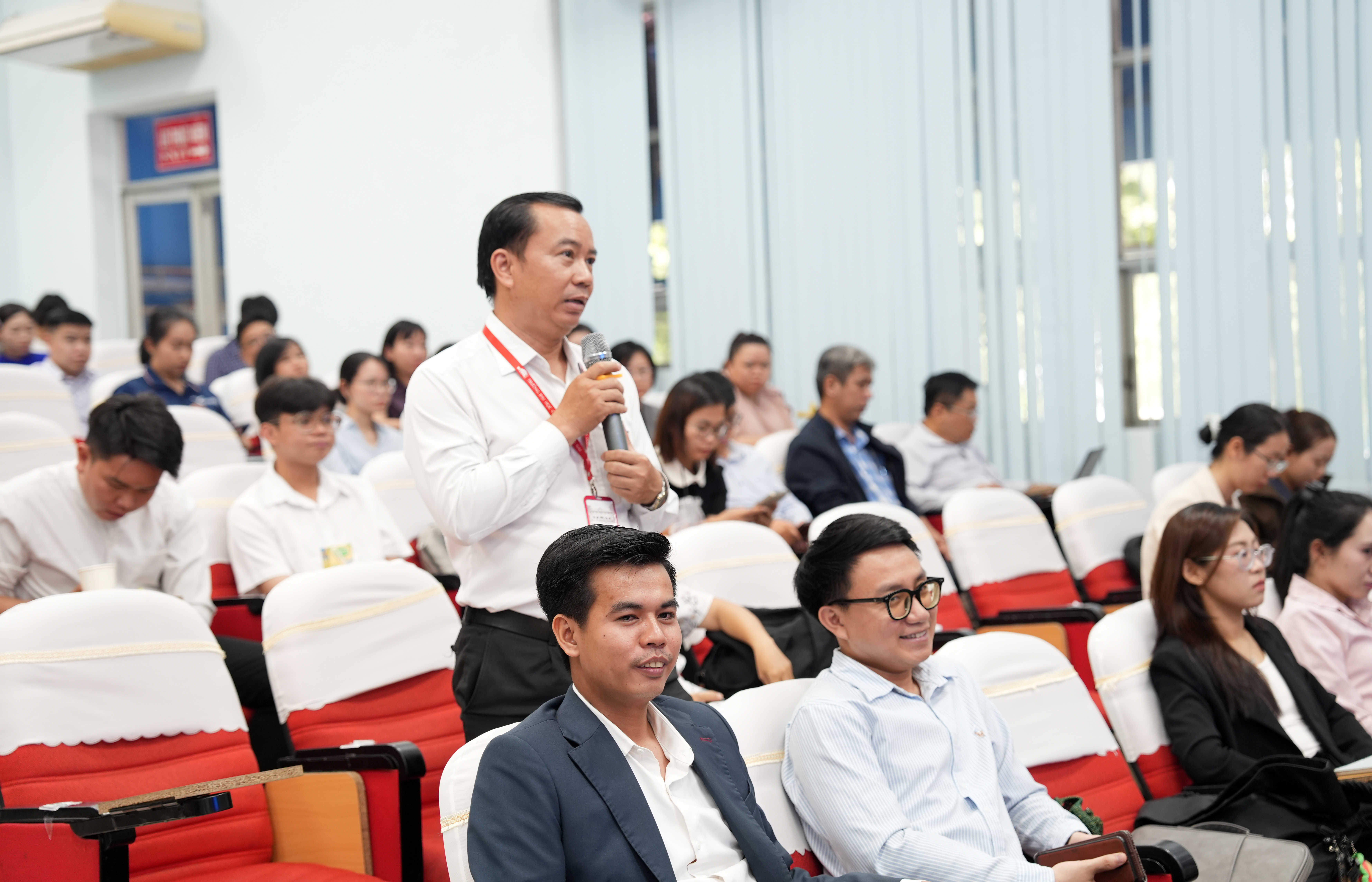 Triển khai nội dung hội thảo, các đại biểu đã lắng nghe và trao đổi nhiều tham luận xoay quanh đổi mới phương pháp dạy học, kiểm tra, đánh giá gắn với chuẩn đầu ra và chuyển đổi số trong giáo dục đại học. Trong đó, ThS. Nguyễn Thị Vinh – Trưởng Ban Quản lý đào tạo Trường Đại học Thủ Dầu Một trình bày đề xuất khung ứng dụng trí tuệ nhân tạo trong kiểm tra, đánh giá nhằm đo lường mức độ đạt chuẩn đầu ra chương trình đào tạo tại các trường đại học Việt Nam; ThS. Nguyễn Phương Hồng Phúc giới thiệu phương pháp lớp học đảo ngược qua trường hợp sinh viên ngành Du lịch; ThS. Huỳnh Văn Hiếu đề xuất đổi mới dạy học dựa trên phân tích phổ điểm kết thúc học phần; đồng thời, ThS. Nguyễn Thành Nhân – Trưởng Phòng Đảm bảo chất lượng, Trường Đại học Mở Thành phố Hồ Chí Minh phân tích mức độ tương thích giữa phương pháp dạy học, phương pháp đánh giá và chuẩn đầu ra, qua đó gợi mở các giải pháp cải thiện trong thực tiễn triển khai.