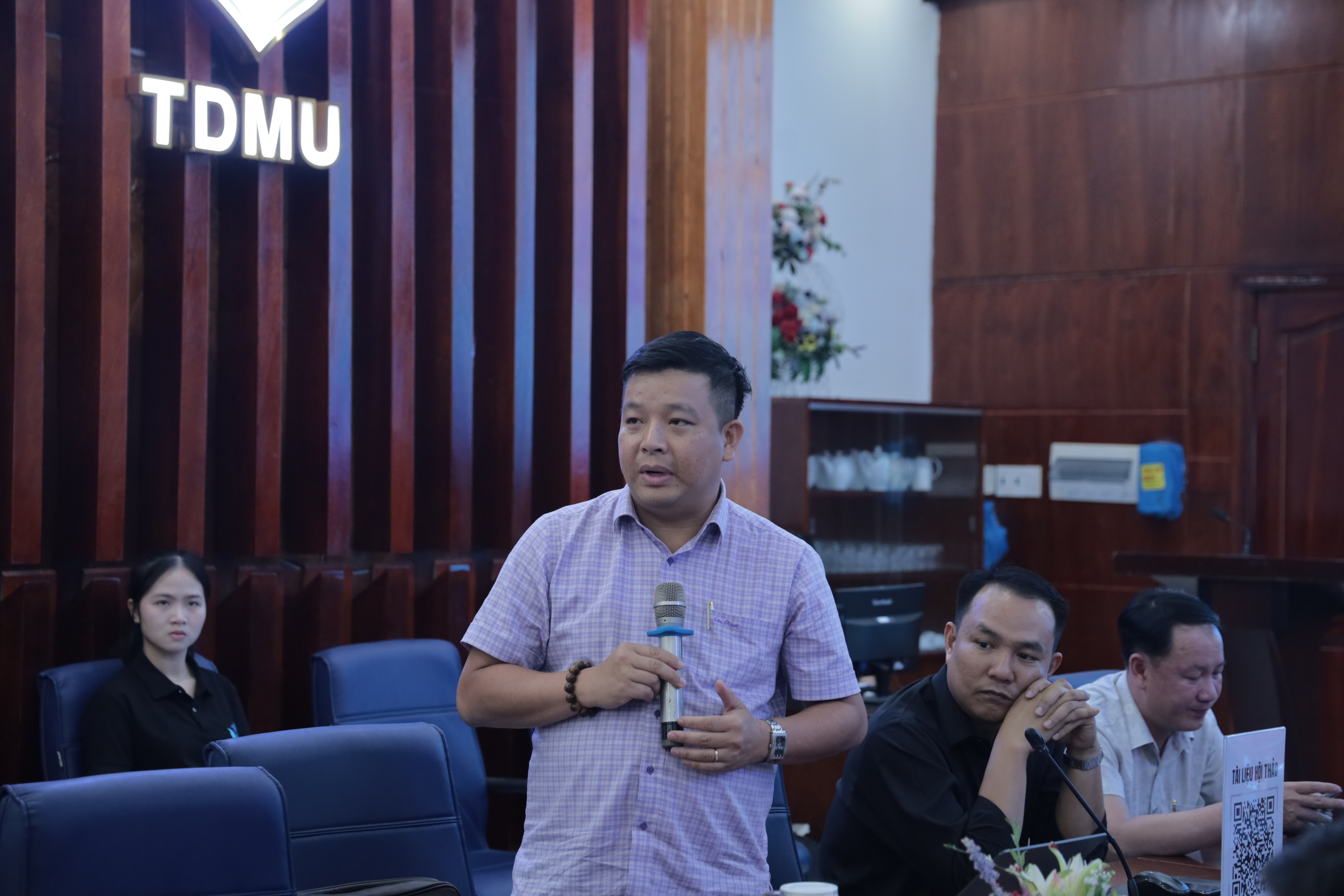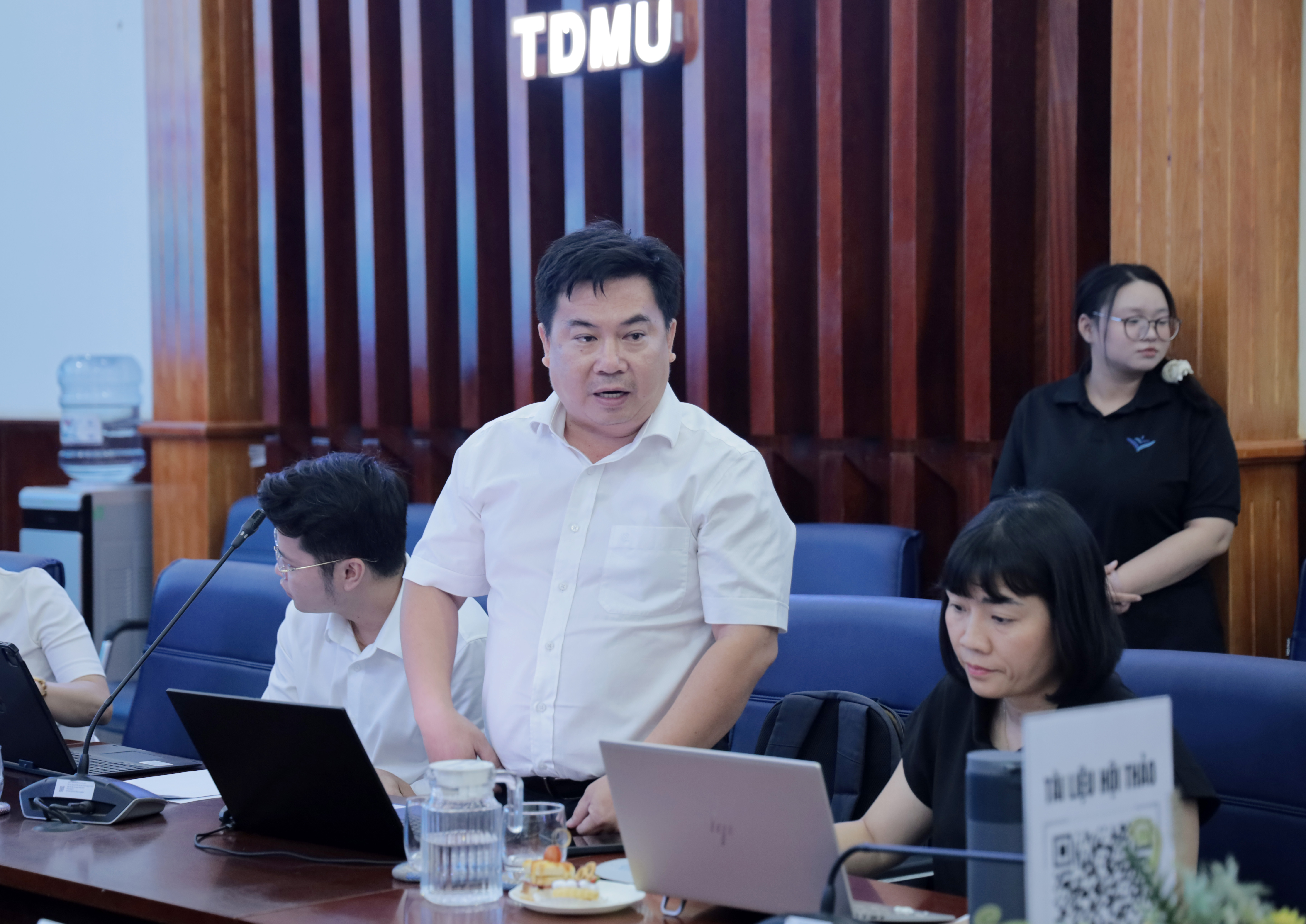 Trong phần thảo luận, ThS. Nguyễn Thị Vinh – Trưởng Ban Quản lý đào tạo Trường Đại học Thủ Dầu Một đã chia sẻ một số định hướng cải tiến hoạt động đào tạo kỹ năng xã hội. Theo đó, cần tăng cường kết nối giữa nội dung đào tạo kỹ năng với yêu cầu thực tiễn của thị trường lao động; đồng thời đổi mới phương pháp giảng dạy theo hướng tăng cường trải nghiệm và thực hành cho người học. Bên cạnh đó, việc thúc đẩy cơ chế phối hợp đồng bộ giữa các đơn vị trong toàn Trường được xem là yếu tố quan trọng nhằm xây dựng hệ thống đào tạo kỹ năng xã hội thống nhất, linh hoạt và phù hợp với đặc thù của từng nhóm ngành đào tạo.