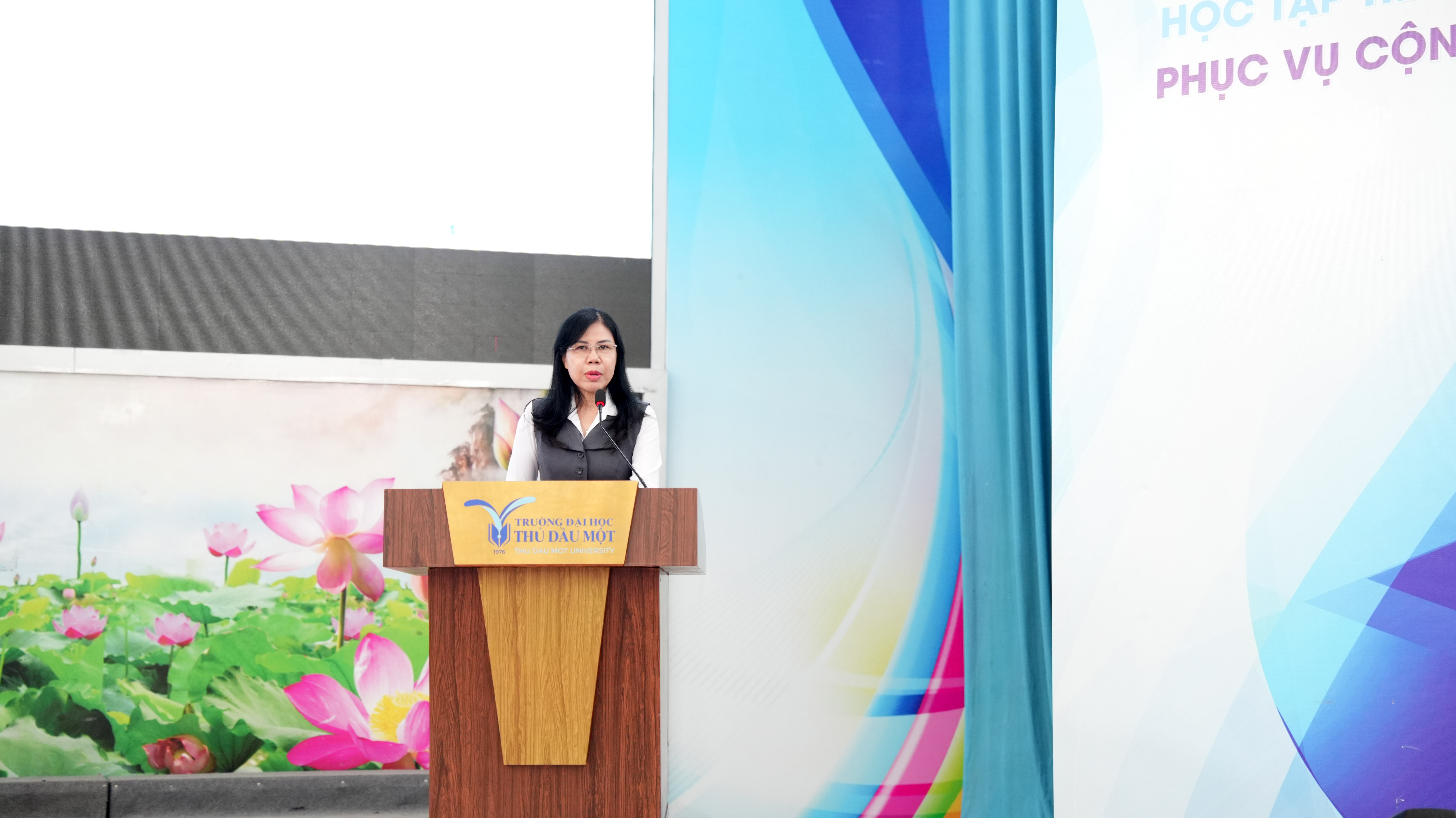 Với tham luận “Tư duy thiết kế trong công việc và đời sống”, TS. Lê Thị Kim Út – Chủ tịch Công đoàn, Trưởng Khoa Công nghiệp Văn hóa đã mở rộng phạm vi của tư duy thiết kế từ lĩnh vực sáng tạo – công nghệ sang chính những hoạt động thường nhật của đội ngũ giảng viên và sinh viên. TS. Lê Thị Kim Út nhấn mạnh, tư duy thiết kế không chỉ là công cụ để đổi mới quản trị hay tối ưu quy trình, mà là một phương pháp tiếp cận toàn diện, giúp mỗi cá nhân hiểu sâu vấn đề, định vị nhu cầu thực sự của người học – người đồng hành – người thụ hưởng, từ đó tạo ra các giải pháp tinh gọn, nhân văn và hiệu quả. Thông qua nhiều ví dụ thực tiễn tại Trường Đại học Thủ Dầu Một, tham luận cho thấy tư duy thiết kế có thể được vận dụng linh hoạt trong giảng dạy (thiết kế trải nghiệm học tập lấy người học làm trung tâm), trong nghiên cứu (xác định đúng câu hỏi nghiên cứu), trong quản lý (xây dựng quy trình hướng đến sự thuận tiện), và trong môi trường làm việc (khuyến khích lắng nghe – thấu hiểu – hợp tác). Đây cũng chính là triết lý mà Nhà trường đang thúc đẩy trên phạm vi toàn trường: mỗi cán bộ, giảng viên và sinh viên trở thành một “người kiến tạo tích cực”, chủ động đề xuất giải pháp, cải thiện trải nghiệm và đóng góp vào việc hình thành một đại học cởi mở, sáng tạo và giàu tính nhân văn.