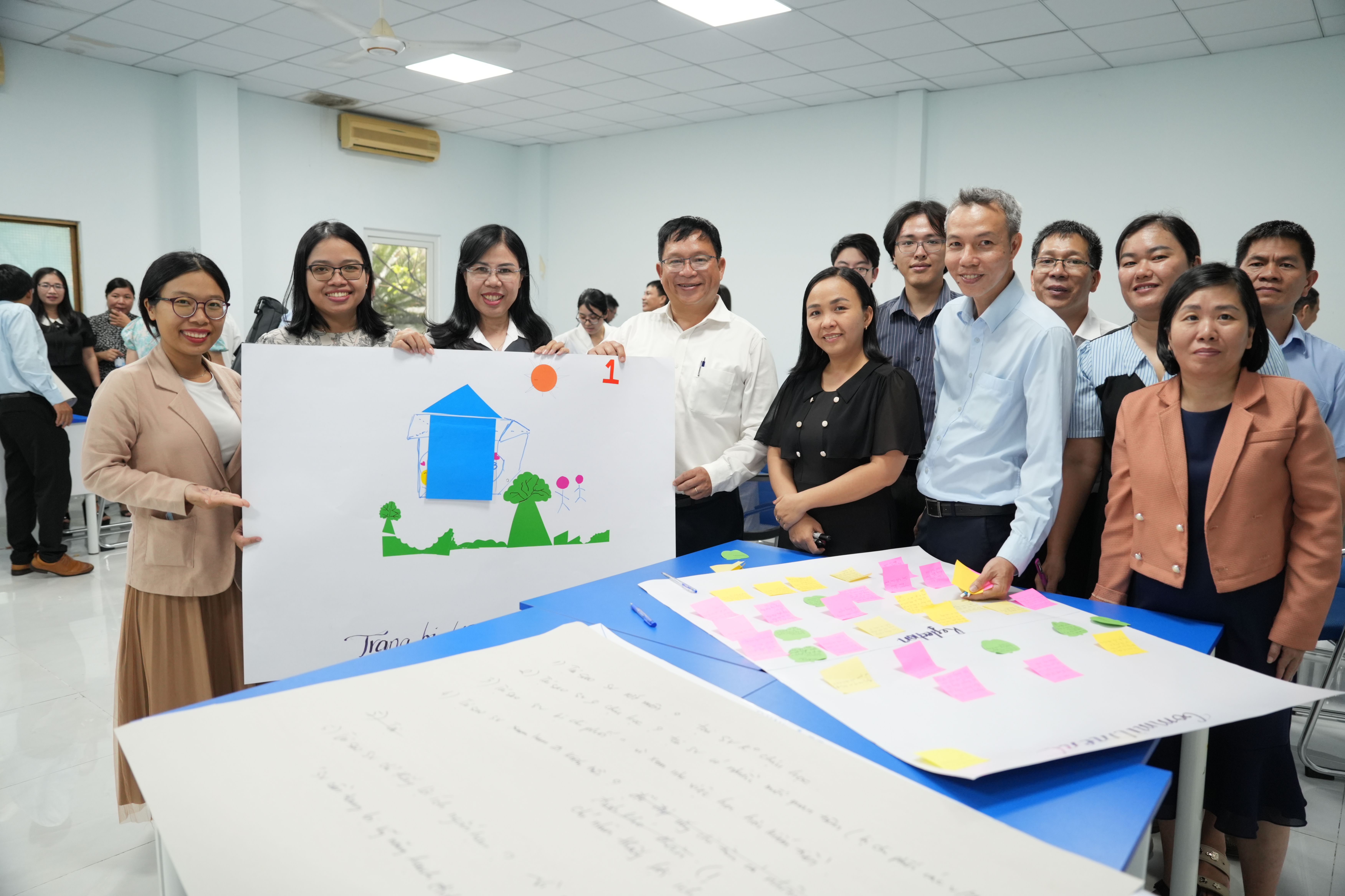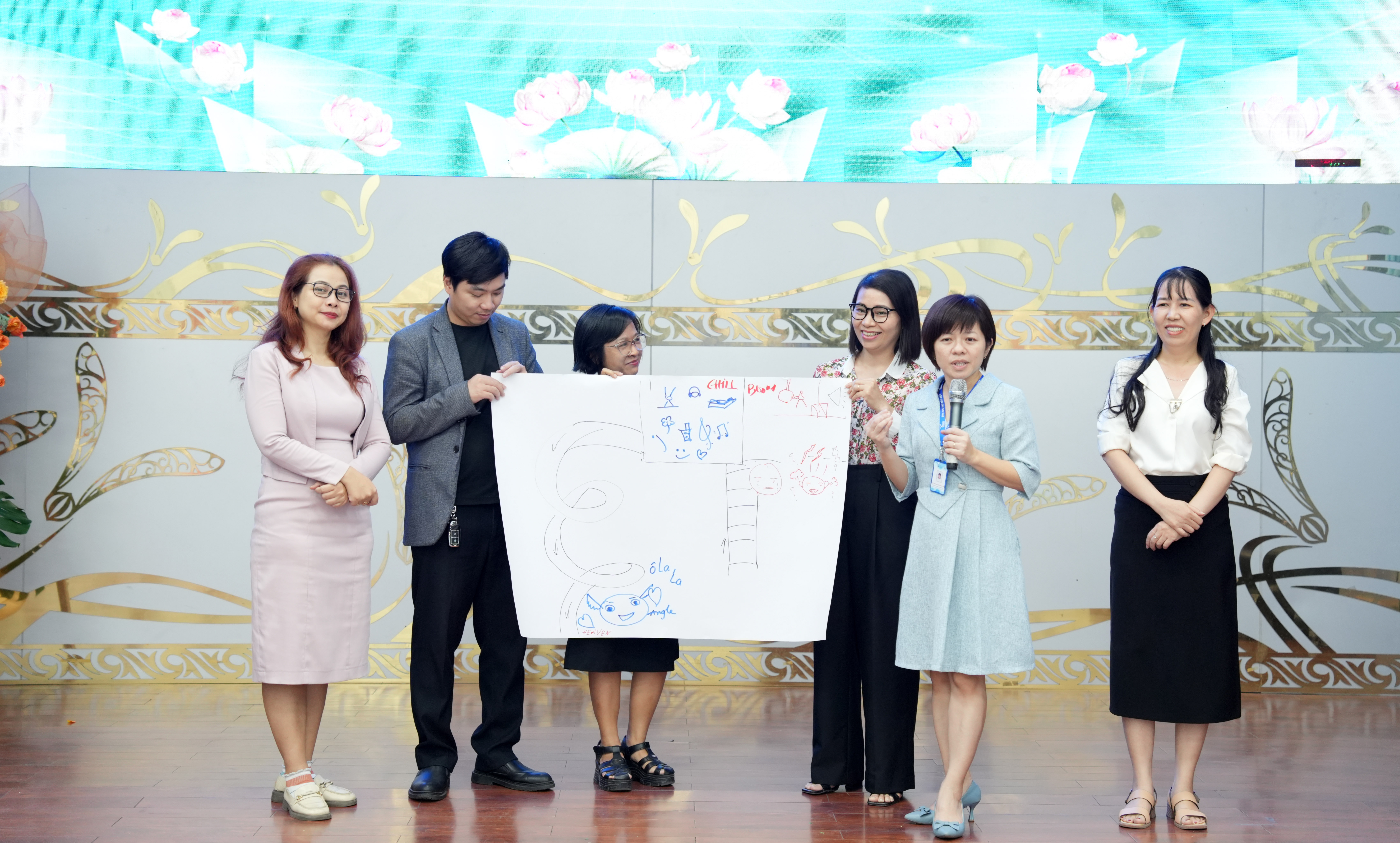 Dựa trên kết quả phân tích và tiến trình làm việc theo các bước “thấu hiểu – xác định vấn đề – đề xuất ý tưởng – hoàn thiện giải pháp”, các nhóm đã hình thành nhiều kiến nghị, giải pháp phát triển môi trường làm việc cởi mở – hạnh phúc, đồng thời thúc đẩy xây dựng không gian giáo dục sáng tạo và bền vững