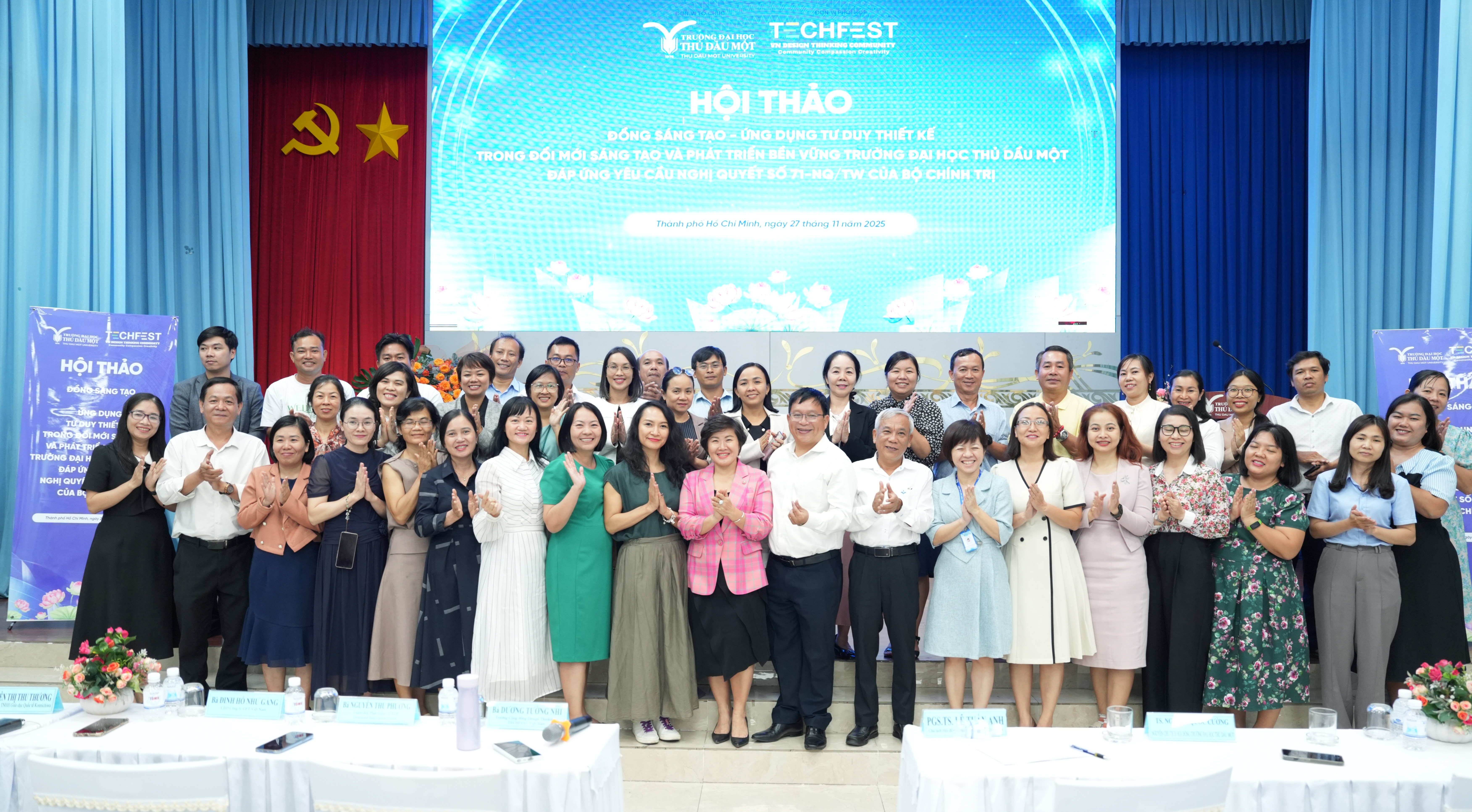 Ngày 27/11/2025, Trường Đại học Thủ Dầu Một tổ chức thành công Hội thảo “Đồng Sáng tạo - Ứng dụng tư duy thiết kế trong đổi mới sáng tạo và phát triển bền vững Trường Đại học Thủ Dầu Một đáp ứng yêu cầu Nghị quyết 71-NQ/TW của Bộ Chính trị”.