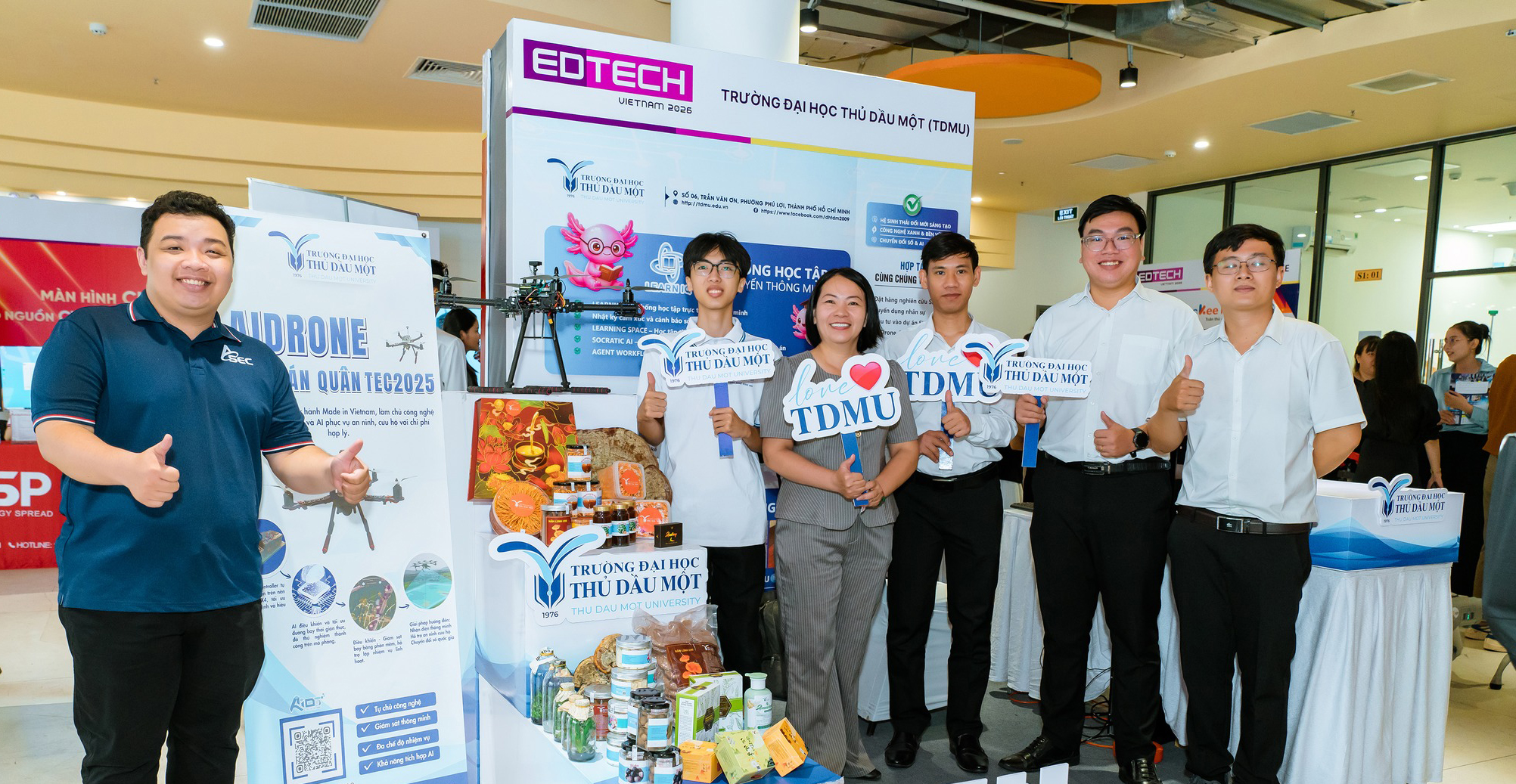 Sáng 26/11/2025, tại lễ khai mạc Tuần lễ Đổi mới sáng tạo, Khoa học công nghệ và Khởi nghiệp sáng tạo TP.HCM (WISE HCMC⁺ 2025), Trường Đại học Thủ Dầu Một đã giới thiệu nhóm sản phẩm tiêu biểu của giảng viên và sinh viên trong lĩnh vực nghiên cứu ứng dụng và khởi nghiệp đổi mới sáng tạo.