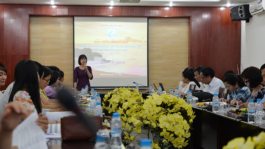 Chủ đề hội thảo có liên quan mật thiết đến công tác quản lý và đào tạo của các khoa nên đã thu hút đông đảo giảng viên và sinh viên tham dự. 4 tham luận tiêu biểu trong số 25 tham luận đăng kỷ yếu đã được chọn trình bày tại hội thảo: tham luận “Sự cần thiết của công tác chủ nhiệm – cố vấn học tập tại trường ĐH Thủ Dầu Một” do ThS Lê Thị Kim Út – khoa Ngữ văn trình bày; tham luận “Cố vấn học tập – Nhìn từ góc độ hướng dẫn sinh viên tham gia các hoạt động học thuật, nghiên cứu khoa học” của TS Nguyễn Đức Thành – khoa Sư phạm; tham luận “Công tác giáo viên chủ nhiệm nhìn từ khoa Tài nguyên Môi trường” của ThS Nguyễn Thị Xuân Hạnh và ThS Phạm Thị Thùy Trang – khoa Tài nguyên Môi trường; tham luận “Công tác chủ nhiệm theo học chế tín chỉ ở khoa Sư phạm, trường ĐH Thủ Dầu Một” của SV Nguyễn Thị Huyền Trang – lớp D13TH05.