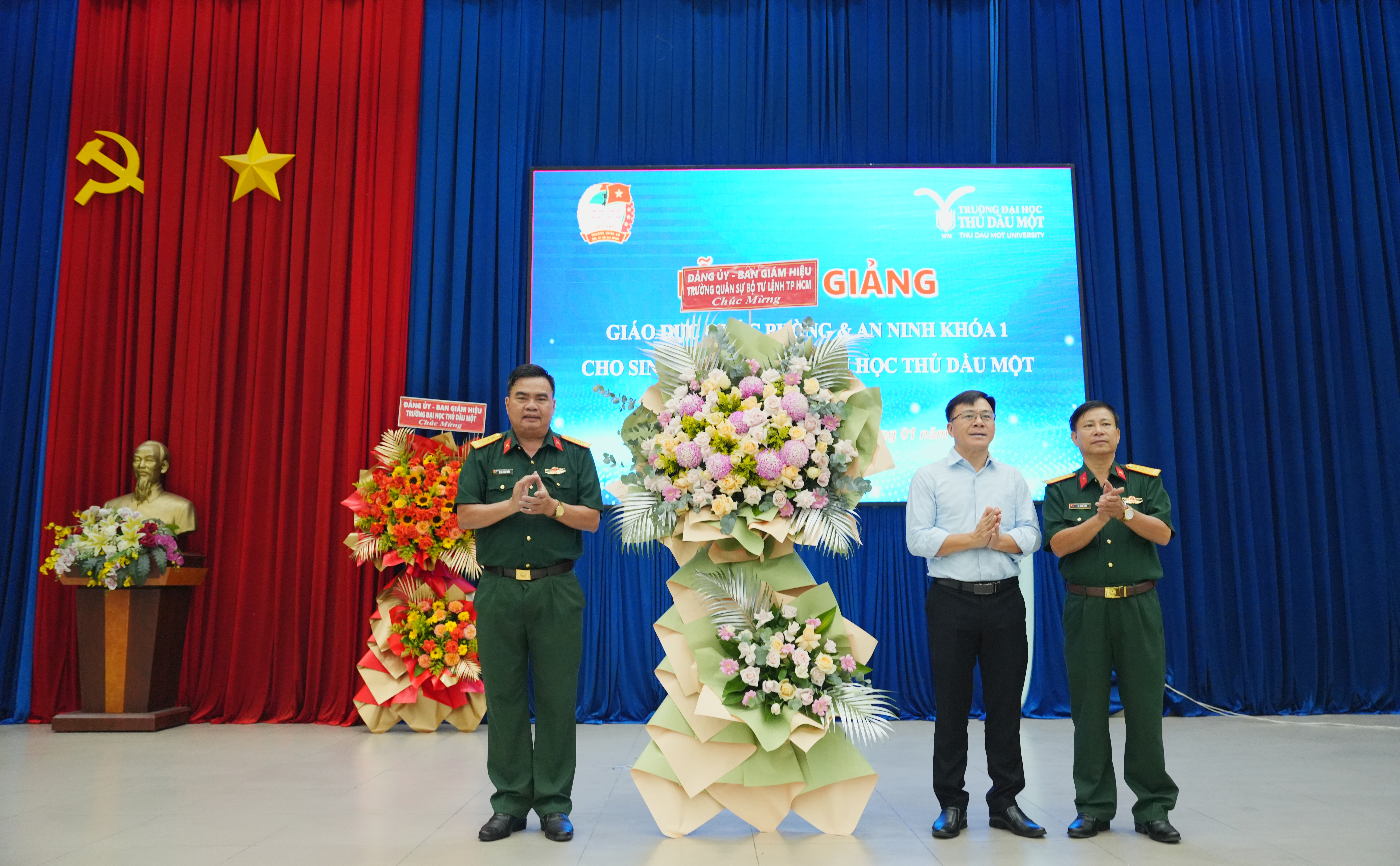 Tham dự lễ khai giảng có Thượng tá Liêu Quốc Toản – Giám đốc, Hiệu trưởng Trường Quân sự Bộ Tư lệnh Thành phố Hồ Chí Minh. Về phía Trường Đại học Thủ Dầu Một có PGS.TS. Lê Tuấn Anh – Bí thư Đảng ủy; TS. Đoàn Ngọc Xuân – Hiệu trưởng, cùng đại diện lãnh đạo các phòng, ban chức năng của hai đơn vị và đông đảo sinh viên tham gia khóa học.