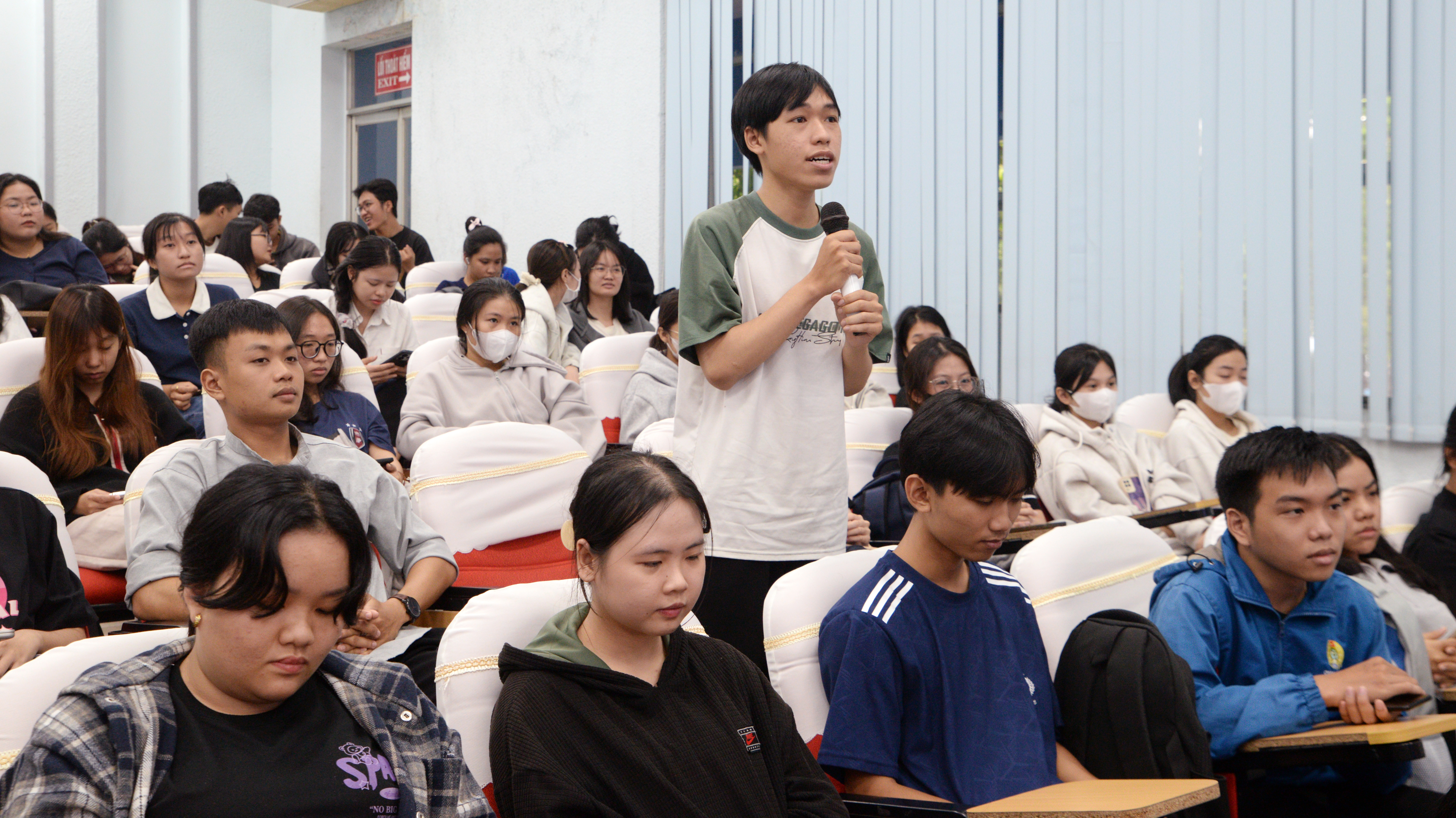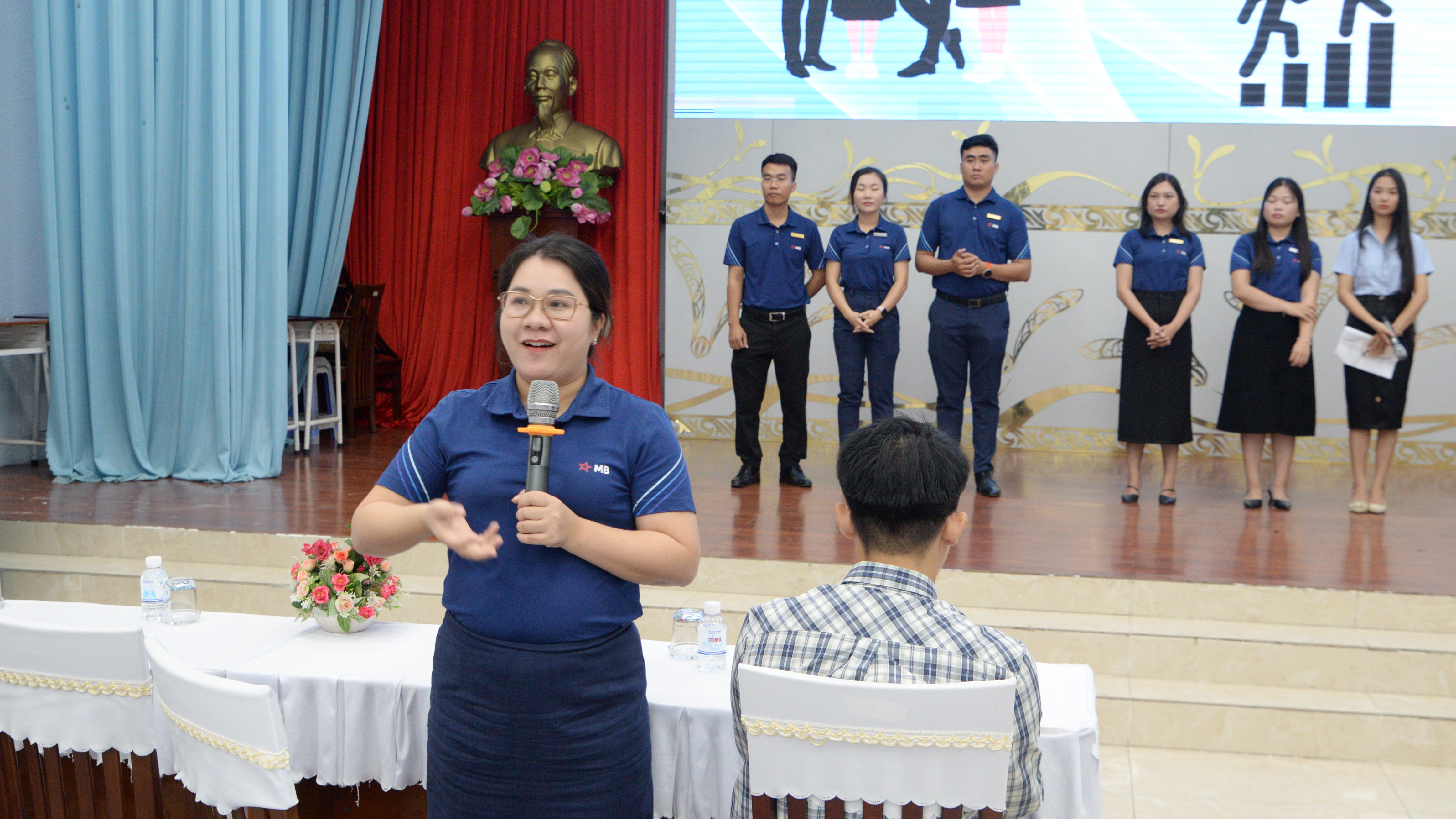 Chia sẻ về cơ hội nghề nghiệp và hành trình phát triển của bản thân, các anh chị cán bộ MB Bình Phước đã mang đến cho sinh viên nhiều góc nhìn thực tế về công việc trong lĩnh vực tài chính – ngân hàng. Từ những vị trí khởi đầu như giao dịch viên, chuyên viên khách hàng cho đến các vị trí quản lý hiện nay, mỗi anh chị đều có những trải nghiệm đáng nhớ, cho thấy môi trường làm việc tại MB luôn chuyên nghiệp, năng động và giàu cơ hội phát triển.