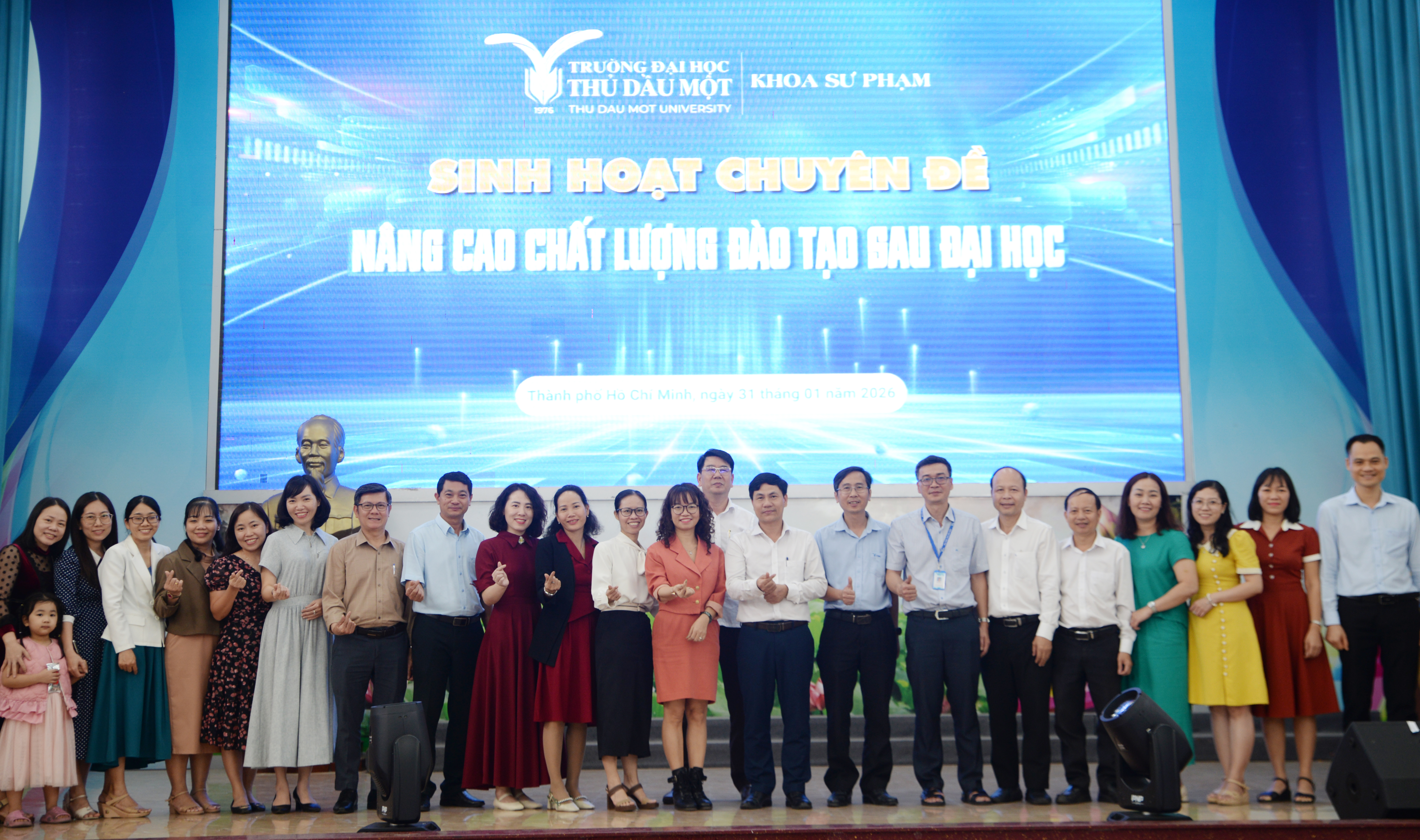 Ngày 31/01/2026, Khoa Sư phạm – Trường Đại học Thủ Dầu Một đã tổ chức chương trình sinh hoạt chuyên đề với chủ đề “Nâng cao chất lượng đào tạo sau đại học tại Trường Đại học Thủ Dầu Một”, nhằm đánh giá thực trạng và đề xuất giải pháp nâng cao hiệu quả đào tạo trình độ sau đại học thuộc khối ngành Sư phạm trong giai đoạn tới.