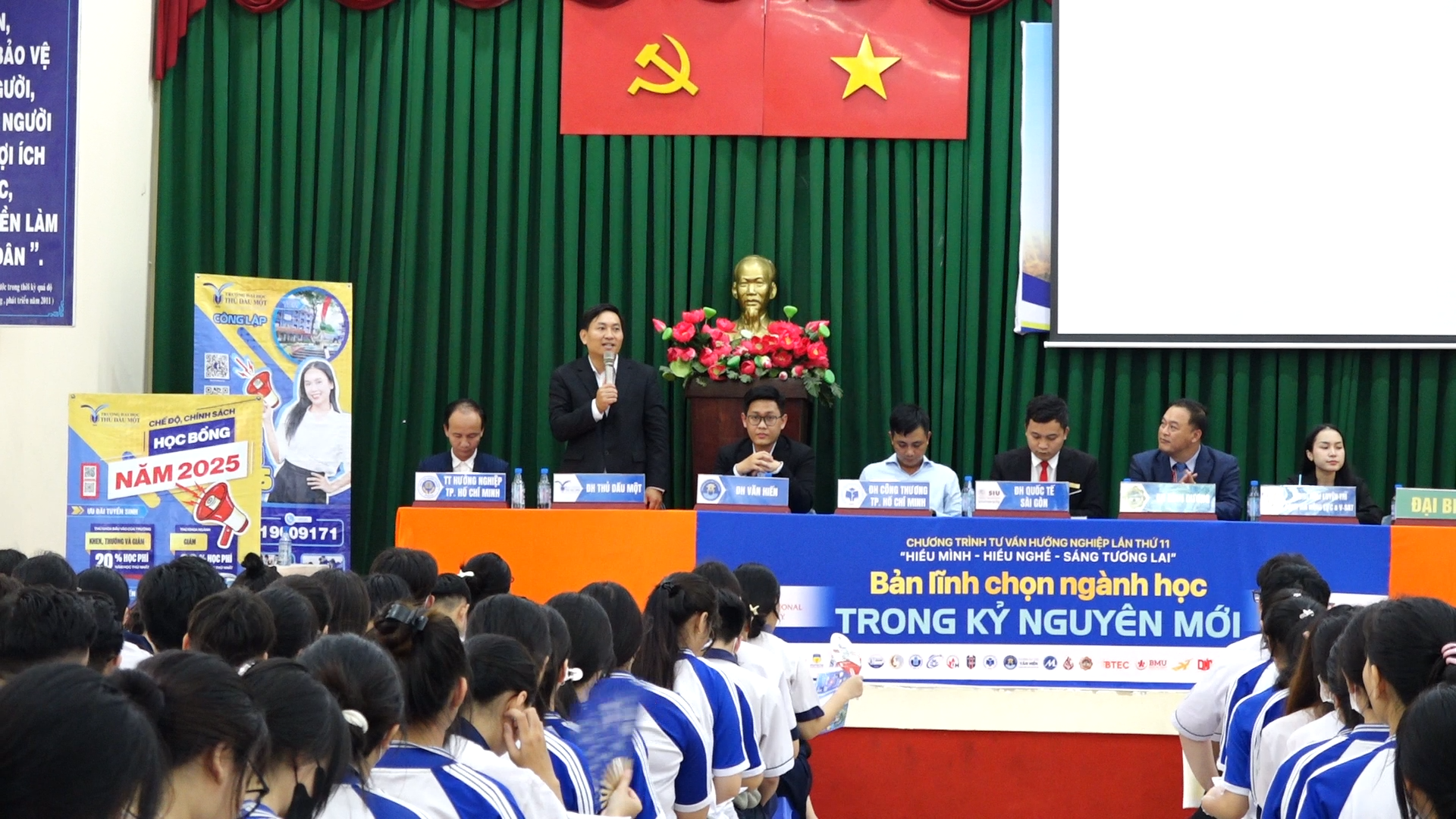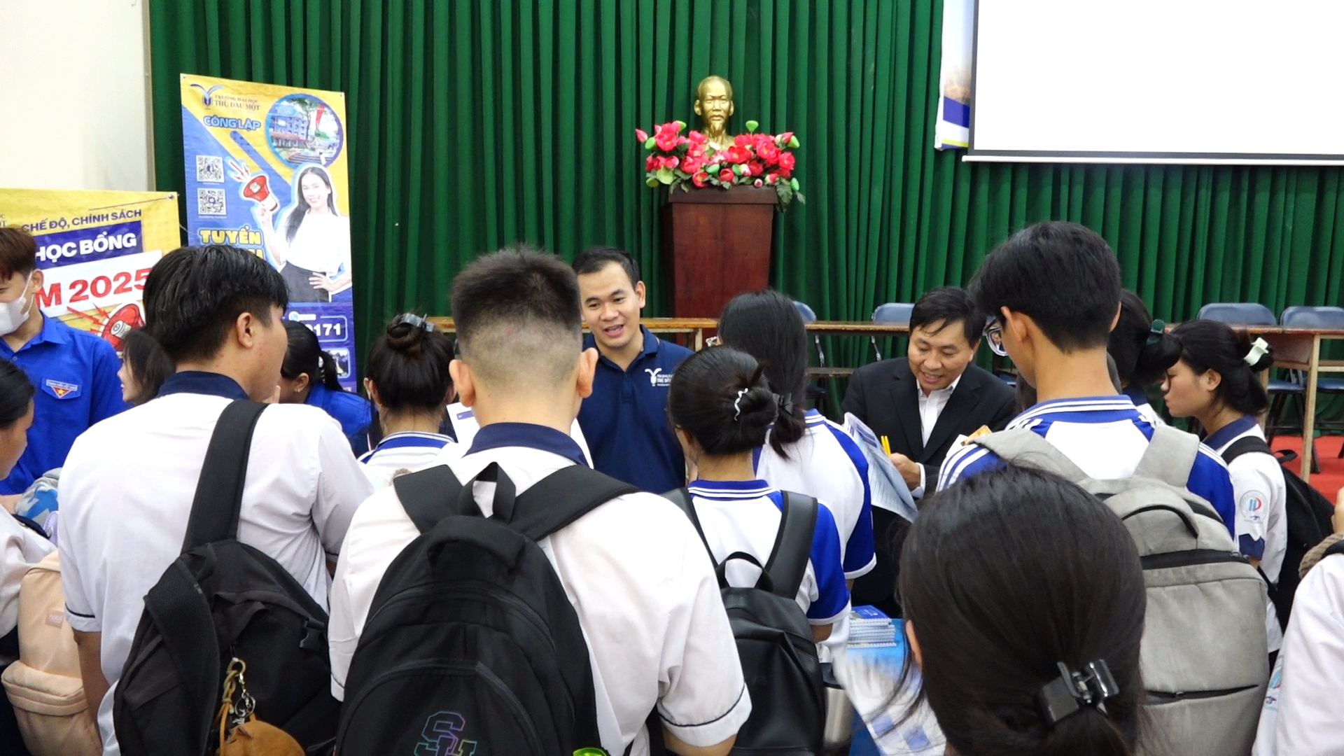 Chuỗi hoạt động tư vấn tuyển sinh tại các trường THPT là một hoạt động thường niên của Trường Đại học Thủ Dầu Một nhằm góp phần định hướng nghề nghiệp cho hàng ngàn học sinh trước ngưỡng cửa đại học. Chương trình không chỉ dừng lại ở việc cung cấp thông tin về các ngành học, phương thức xét tuyển mà còn giúp học sinh định hình rõ ràng con đường học tập và phát triển sự nghiệp trong tương lai. Đội ngũ tư vấn gồm các chuyên gia, cán bộ, giảng viên và sinh viên đã trực tiếp đến từng trường THPT, giao lưu và giải đáp thắc mắc của học sinh.