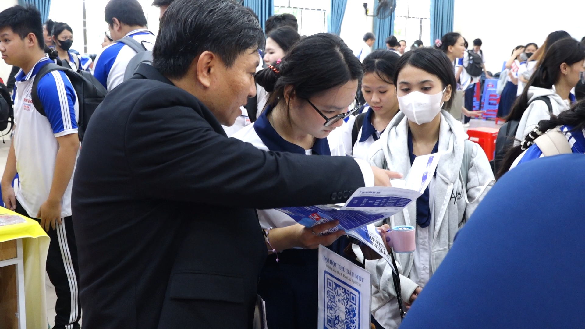 Học sinh trường THPT Phú Hòa quan tâm tìm hiểu vê các ngành học của Trường Đại học Thủ Dầu Một