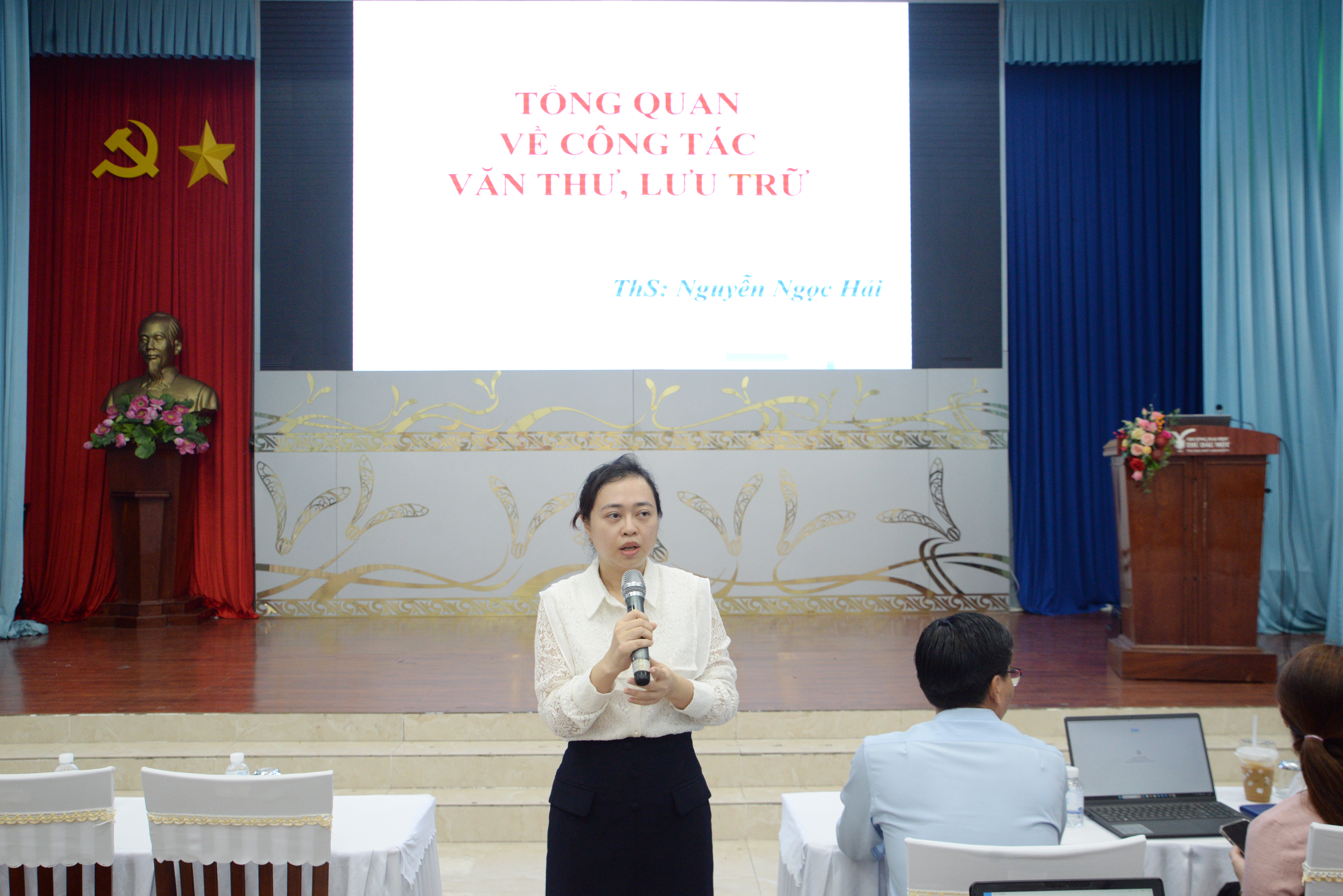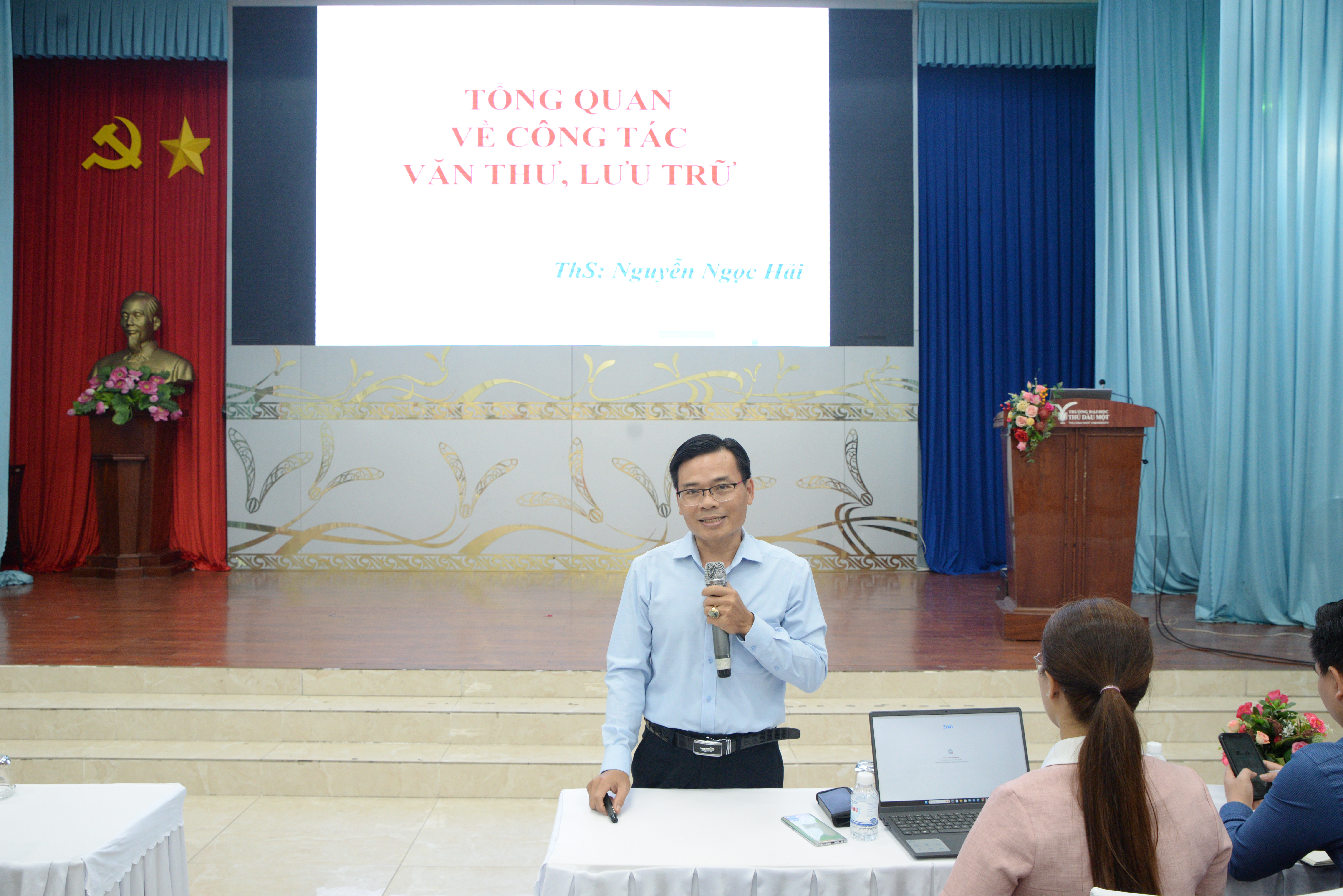 ThS. Nguyễn Ngọc Hải – Báo cáo viên Sở Nội vụ TP. Hồ Chí Minh đã trao đổi những nội dung trọng tâm về nghiệp vụ văn thư, lưu trữ trong cơ quan hành chính nhà nước, giúp học viên hiểu rõ hơn về vai trò, quy trình và các yêu cầu pháp lý trong thực hiện công tác