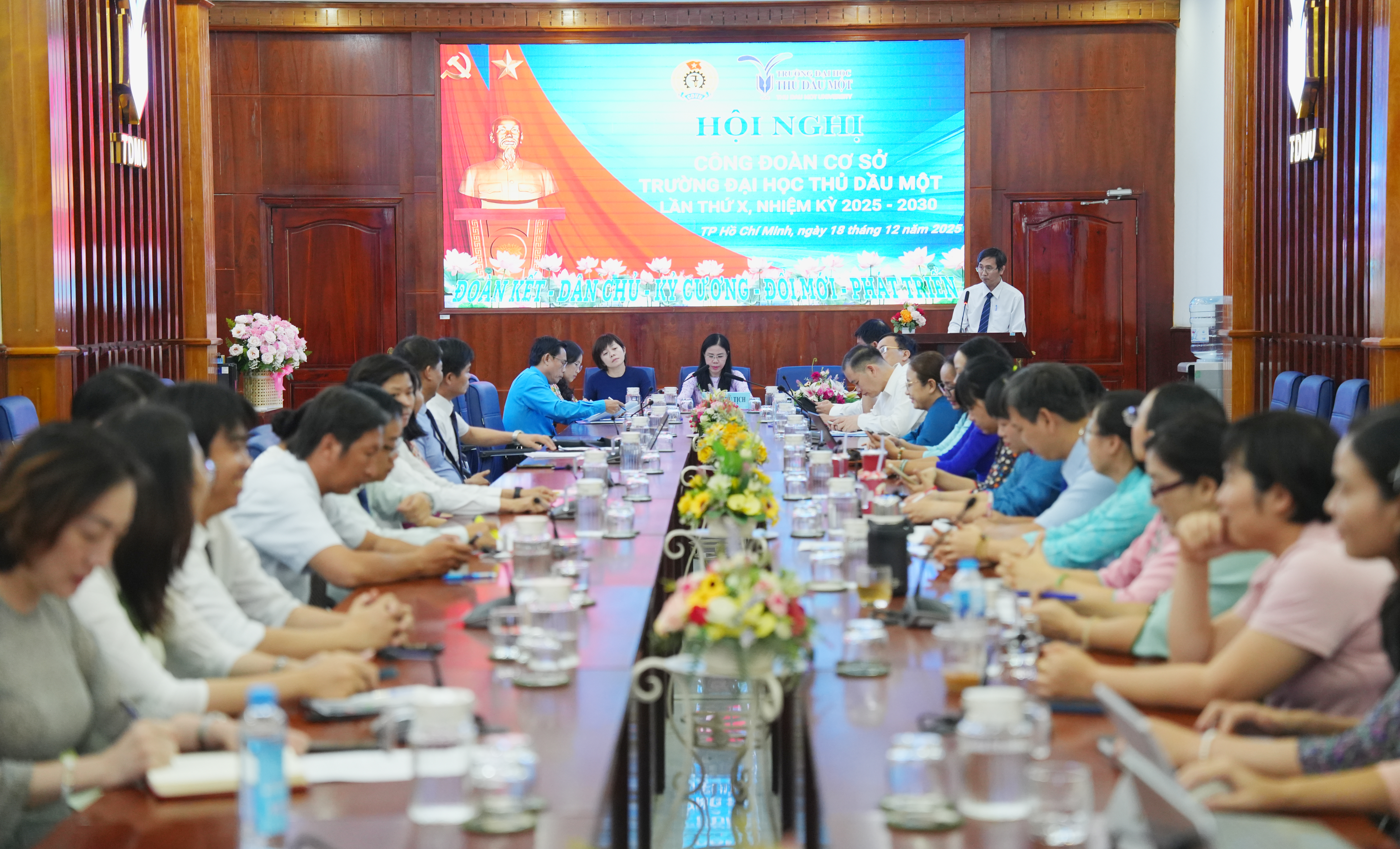 Ngày 18/12/2025, Công đoàn cơ sở Trường Đại học Thủ Dầu Một đã tổ chức Hội nghị Công đoàn cơ sở lần thứ X, nhiệm kỳ 2025 – 2030. Hội nghị nhằm tổng kết, đánh giá phong trào viên chức, người lao động và hoạt động công đoàn giai đoạn 2023 – 2025, đồng thời xác định phương hướng, nhiệm vụ và giải pháp trong nhiệm kỳ mới.