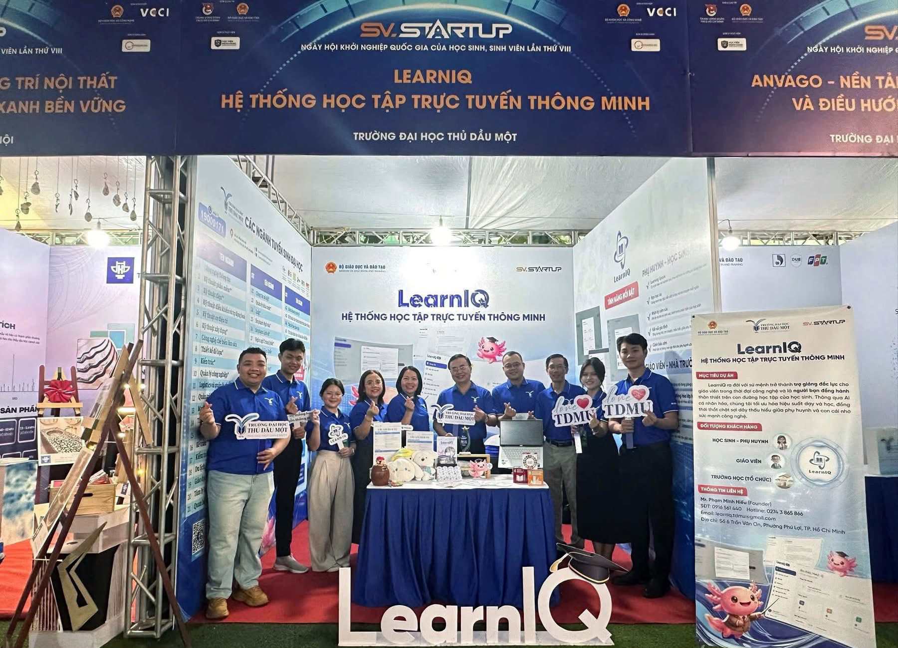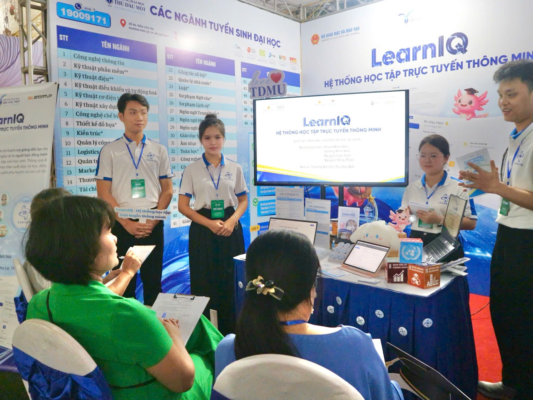 Ngày hội nhằm lan tỏa tinh thần khởi nghiệp sáng tạo trong học sinh, sinh viên; thúc đẩy hình thành văn hóa khởi nghiệp trong các cơ sở giáo dục; tăng cường kết nối giữa nhà trường, người học, chuyên gia, doanh nghiệp và các tổ chức hỗ trợ; qua đó góp phần nâng cao chất lượng công tác tư vấn nghề nghiệp, việc làm và hỗ trợ khởi nghiệp trong toàn ngành giáo dục. Tham gia Ngày hội, nhóm sinh viên Trường Đại học Thủ Dầu Một gồm Phạm Minh Hiếu, Nguyễn Hồng Thắm, Dương Minh Anh, Nguyễn Cao Toàn đã phát triển dự án LearnIQ – Hệ thống học tập trực tuyến thông minh dưới sự hướng dẫn của TS. Huỳnh Nguyễn Thành Luân và ThS. Nguyễn Trung Kiệt.