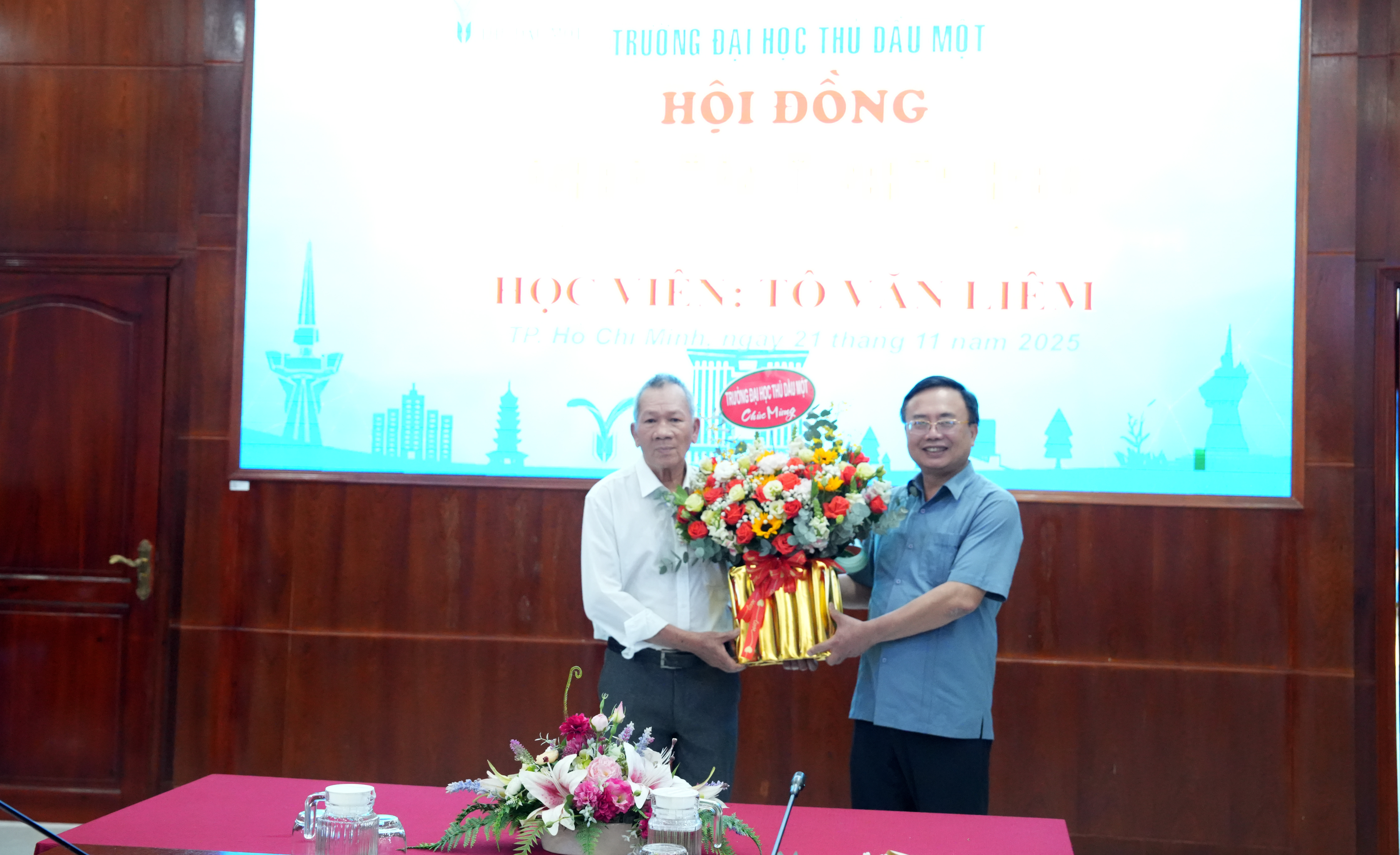 Sáng 21/11/2025, tại Trường Đại học Thủ Dầu Một, học viên Tô Văn Liêm, 70 tuổi, chính thức bảo vệ thành công luận văn thạc sĩ ngành Quản trị kinh doanh, hoàn tất hành trình học tập bền bỉ suốt hơn hai năm qua.